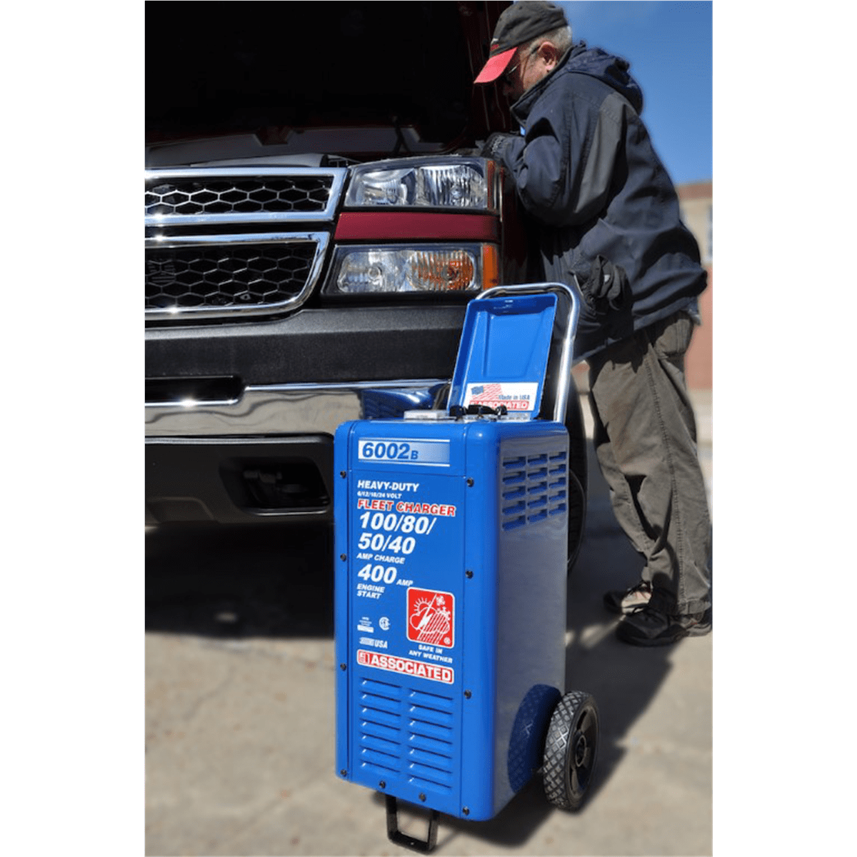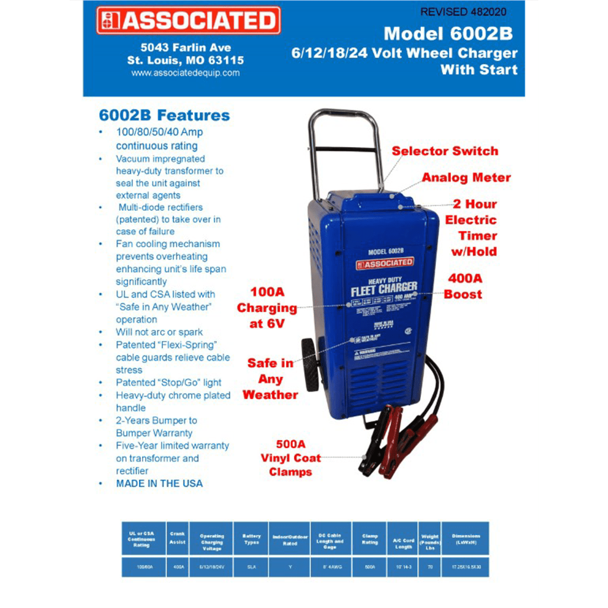 Associated 6002B - Charger, 6/12/18/24V 100/80/50/40A, 400 Amp Cranking Assist, Wheels