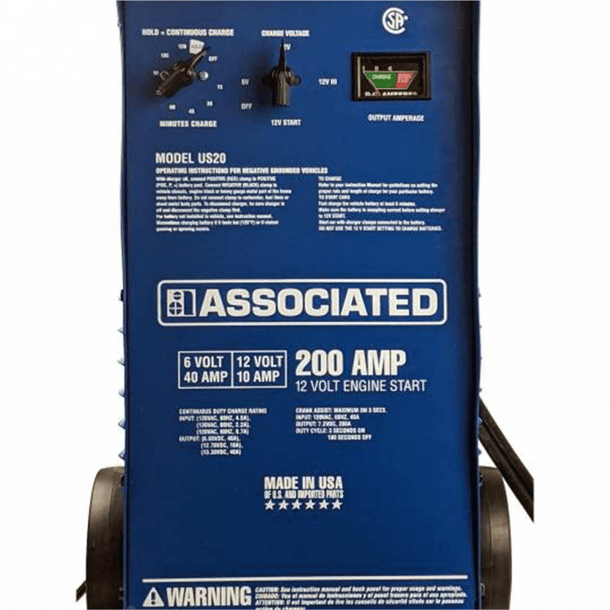 Associated US20 – Charger, 6/12V 40/40/10A, 200 Amp Cranking Assist, Wheels (With Timer)