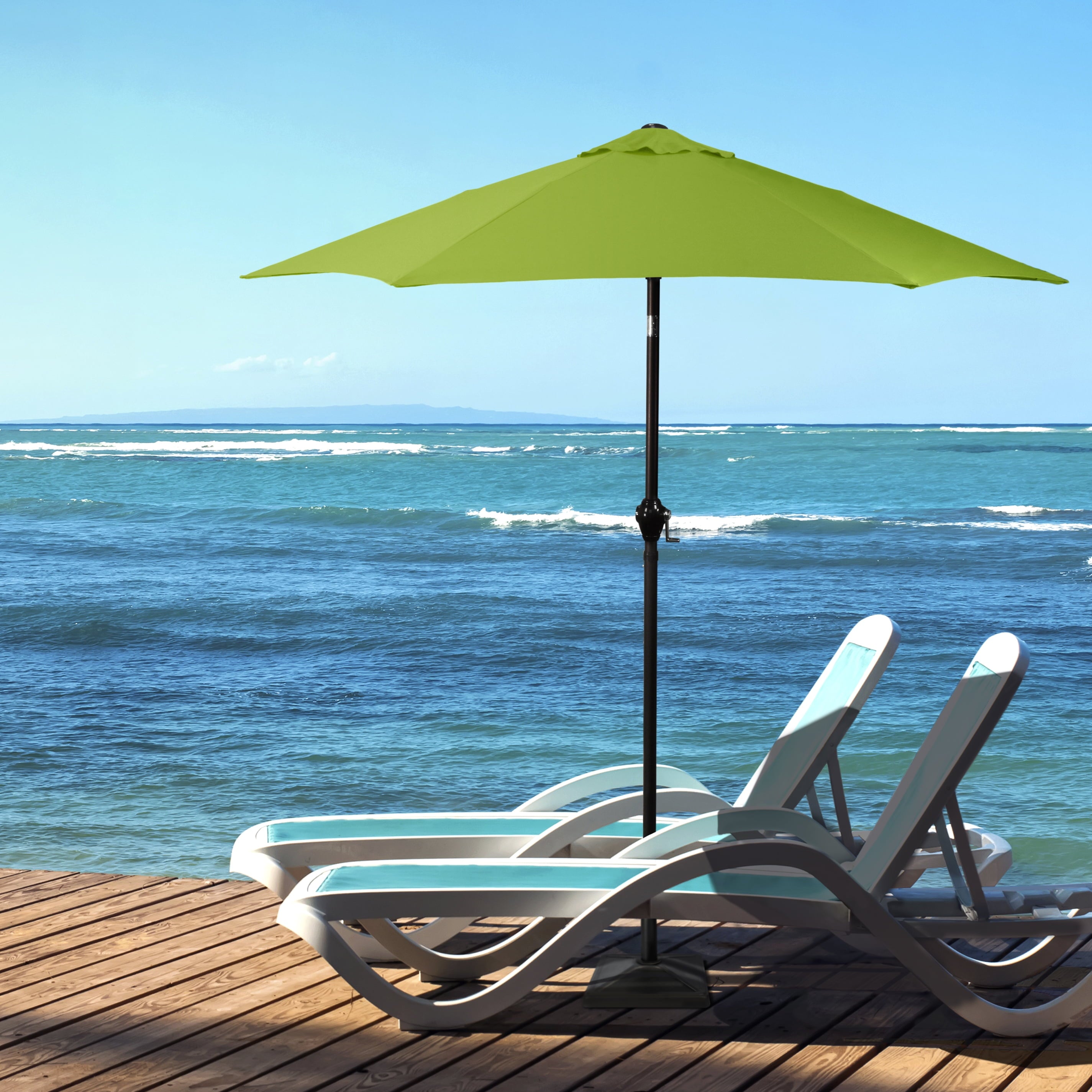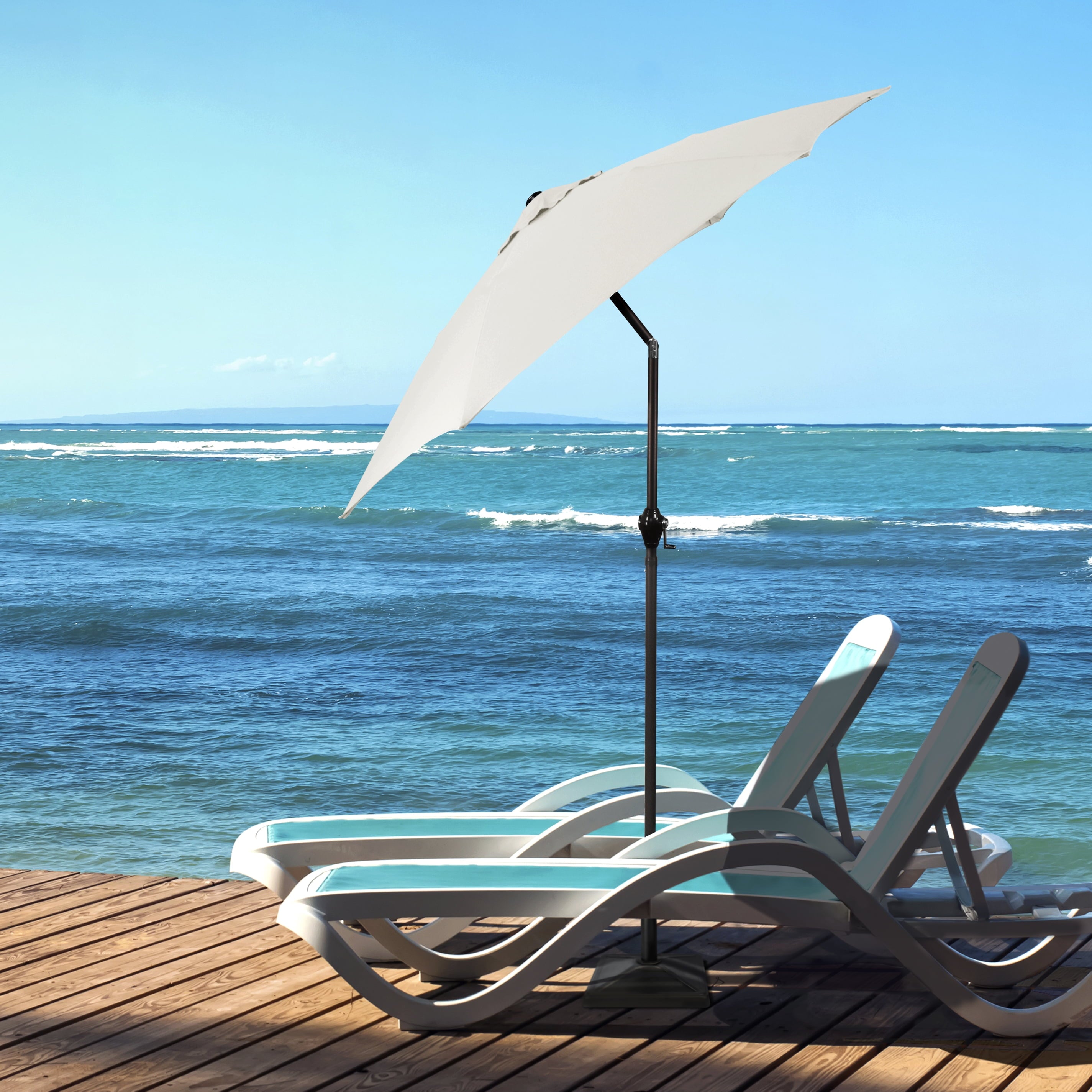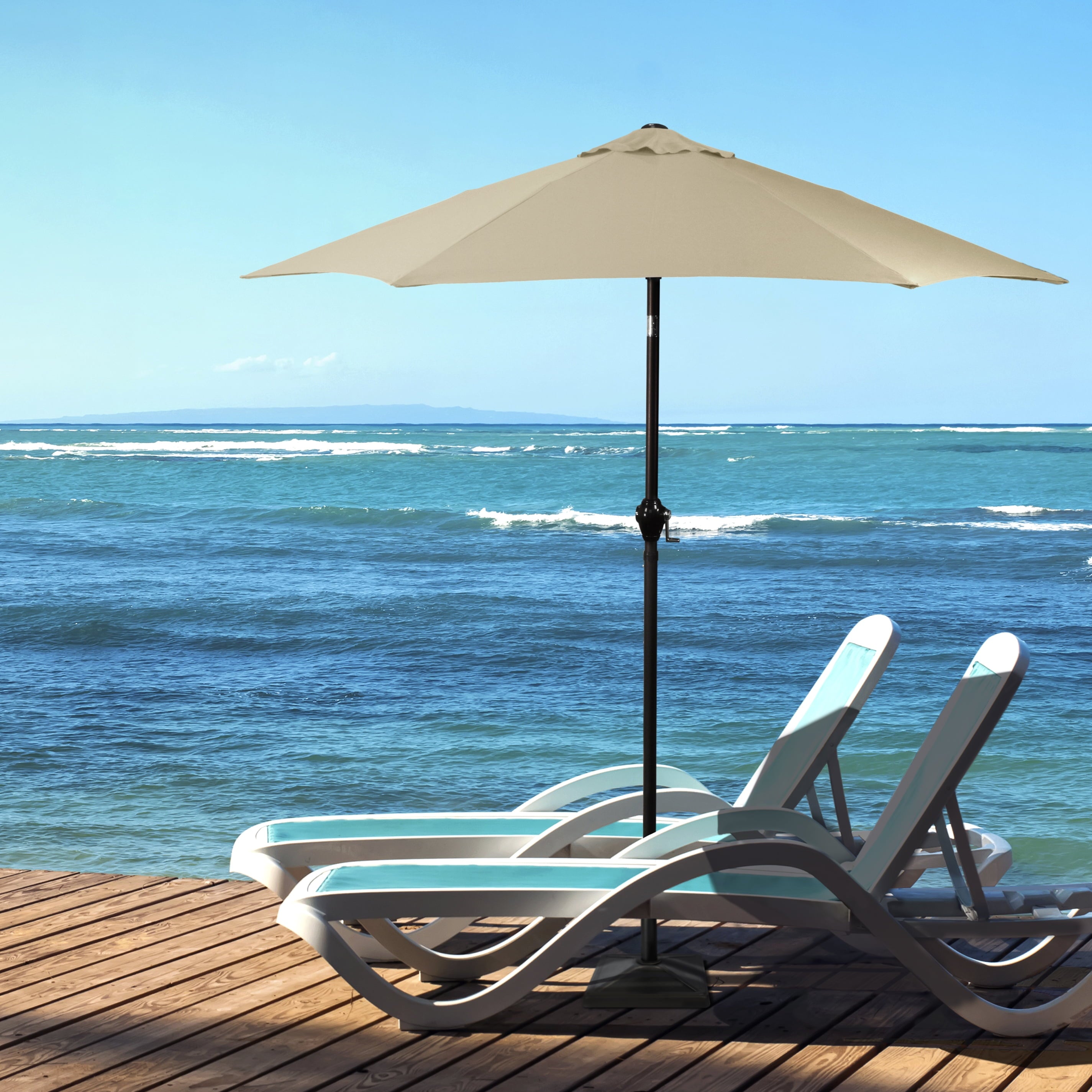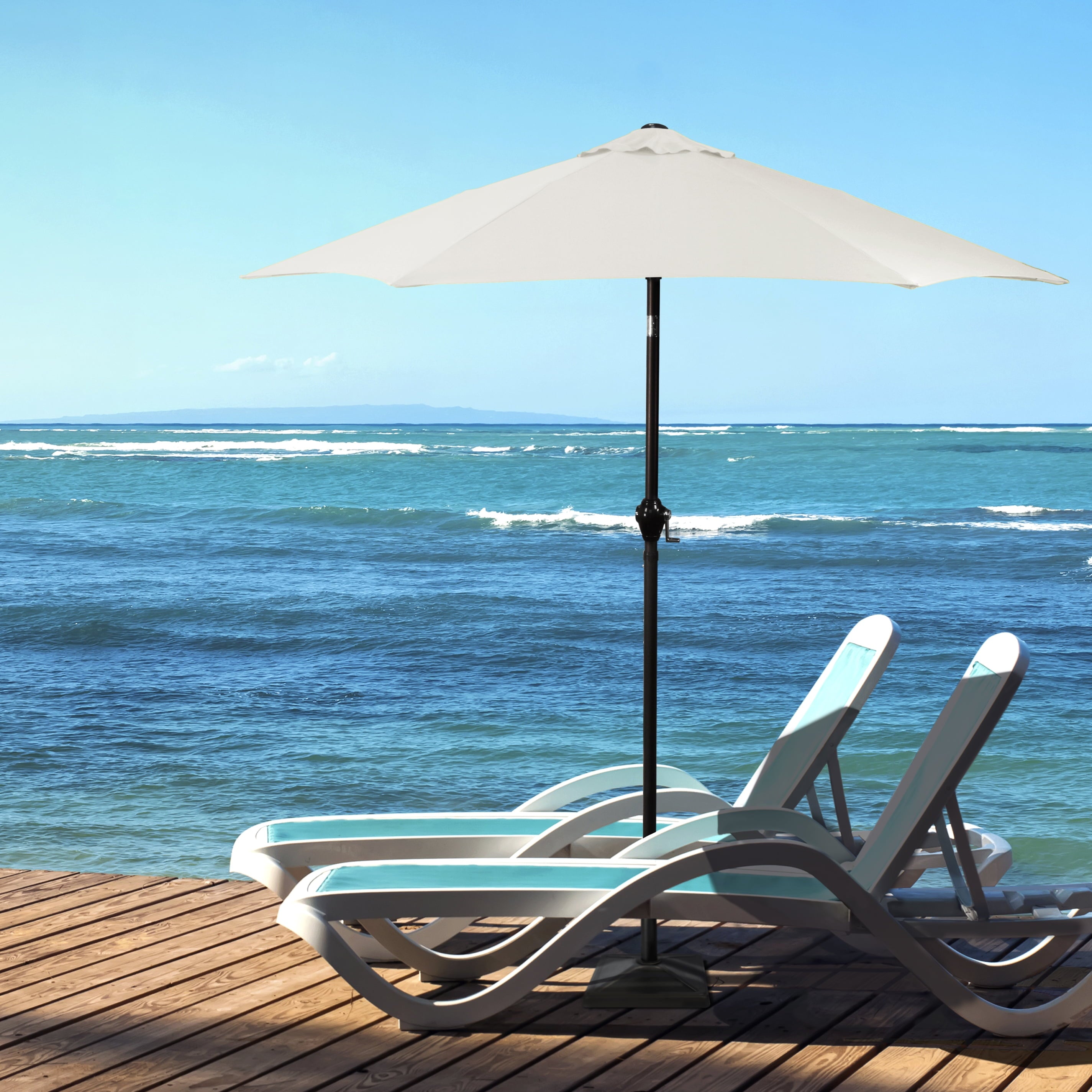 • Sleek 7.5-foot polyester canopy provides protection from UV rays, convenient crank allows for easy opening and closing of the umbrella.