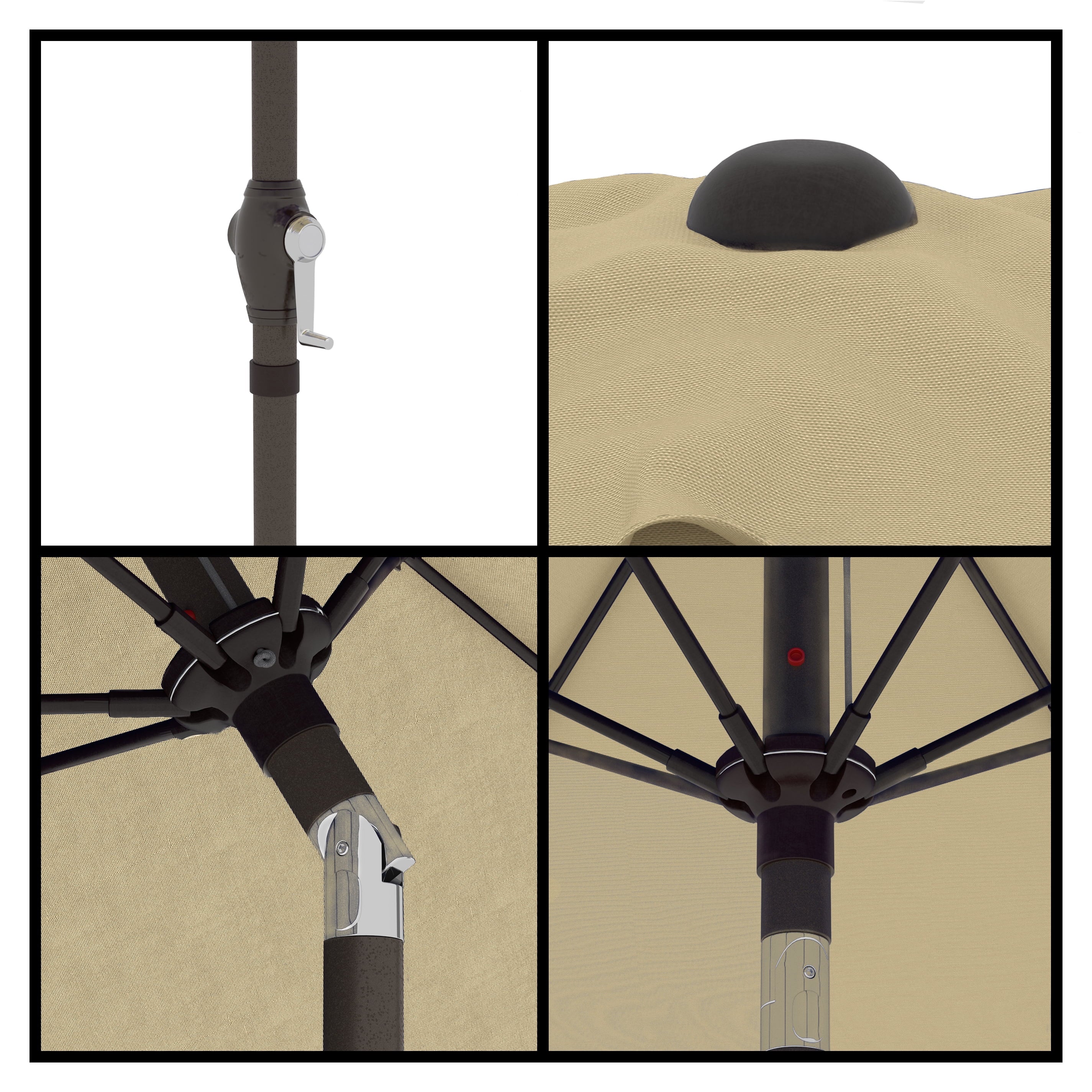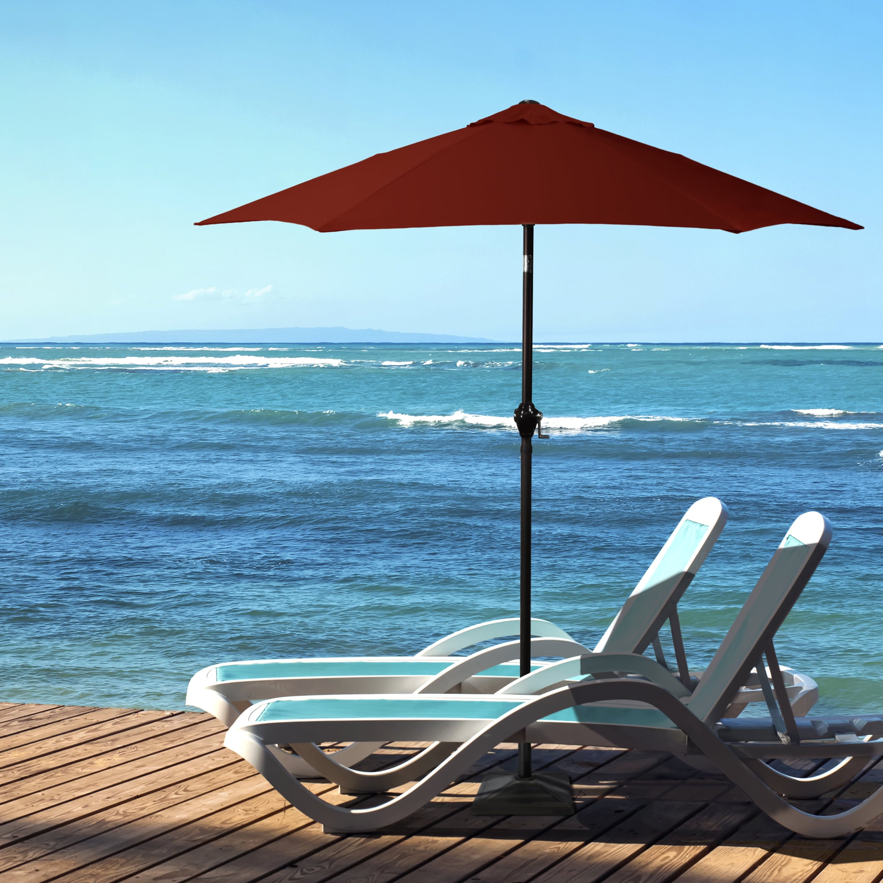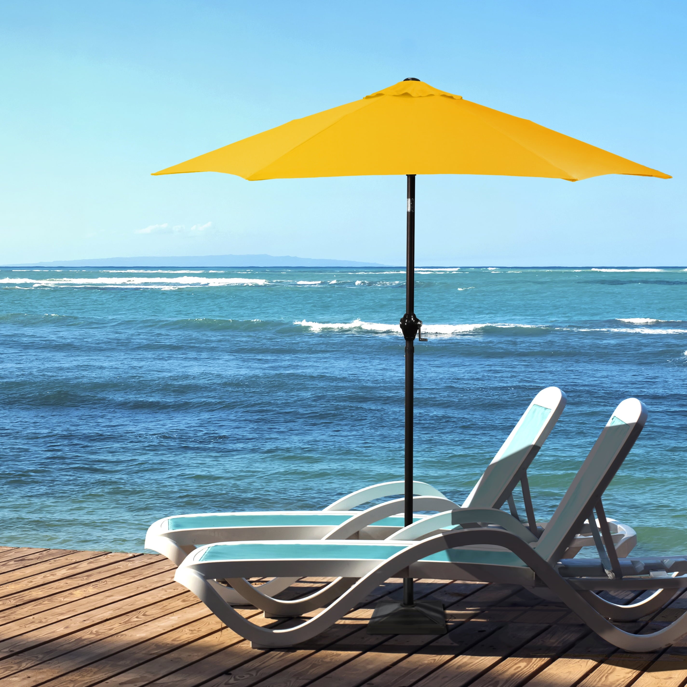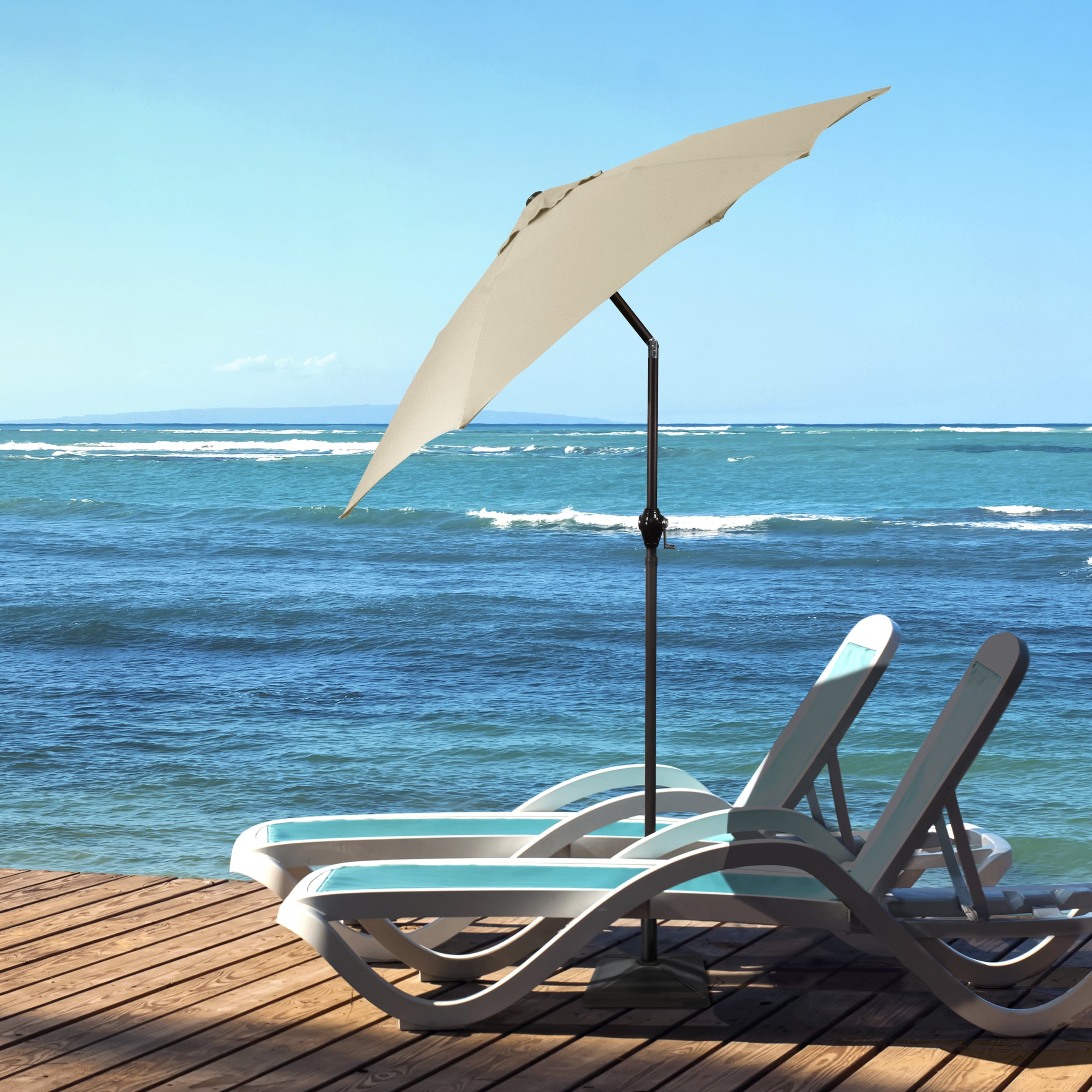 • Sleek 7.5-foot polyester canopy provides protection from UV rays, convenient crank allows for easy opening and closing of the umbrella.