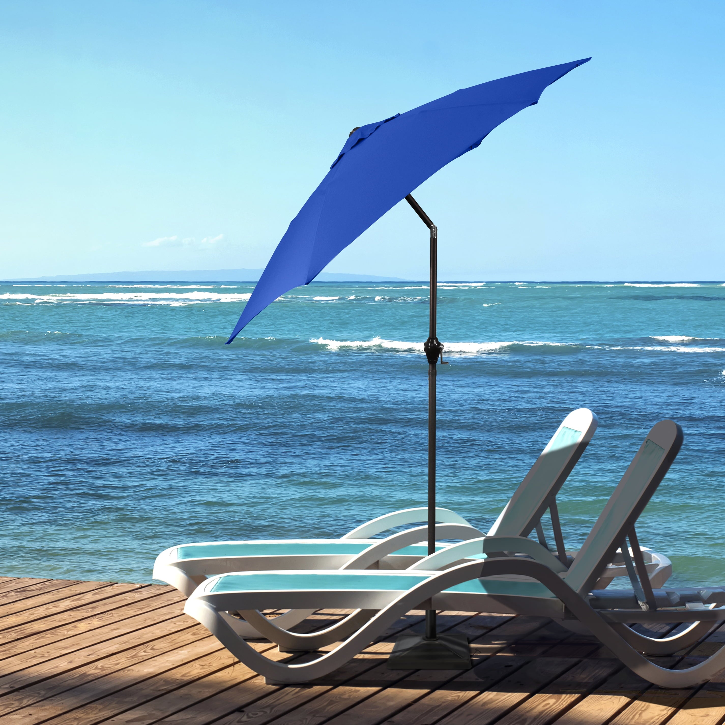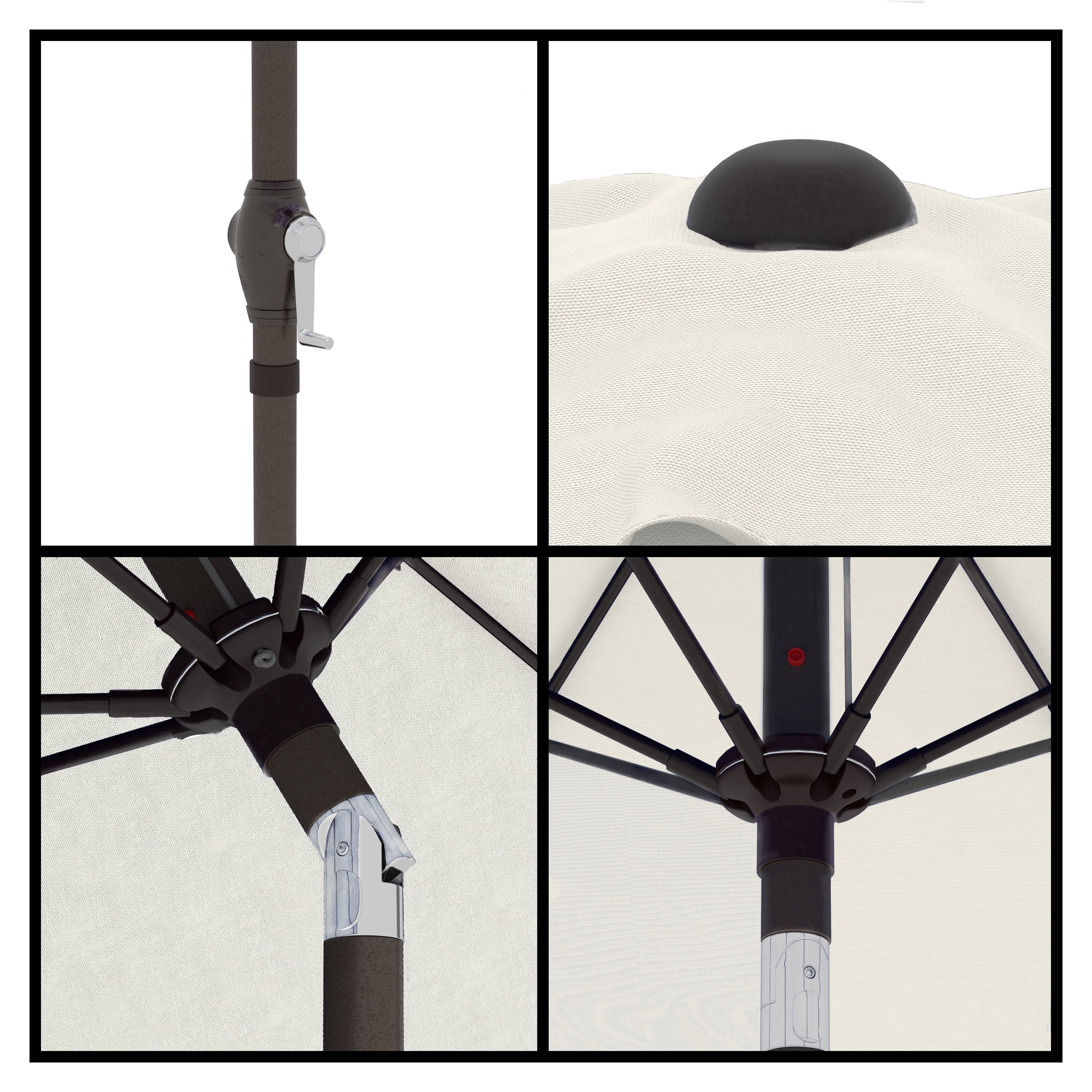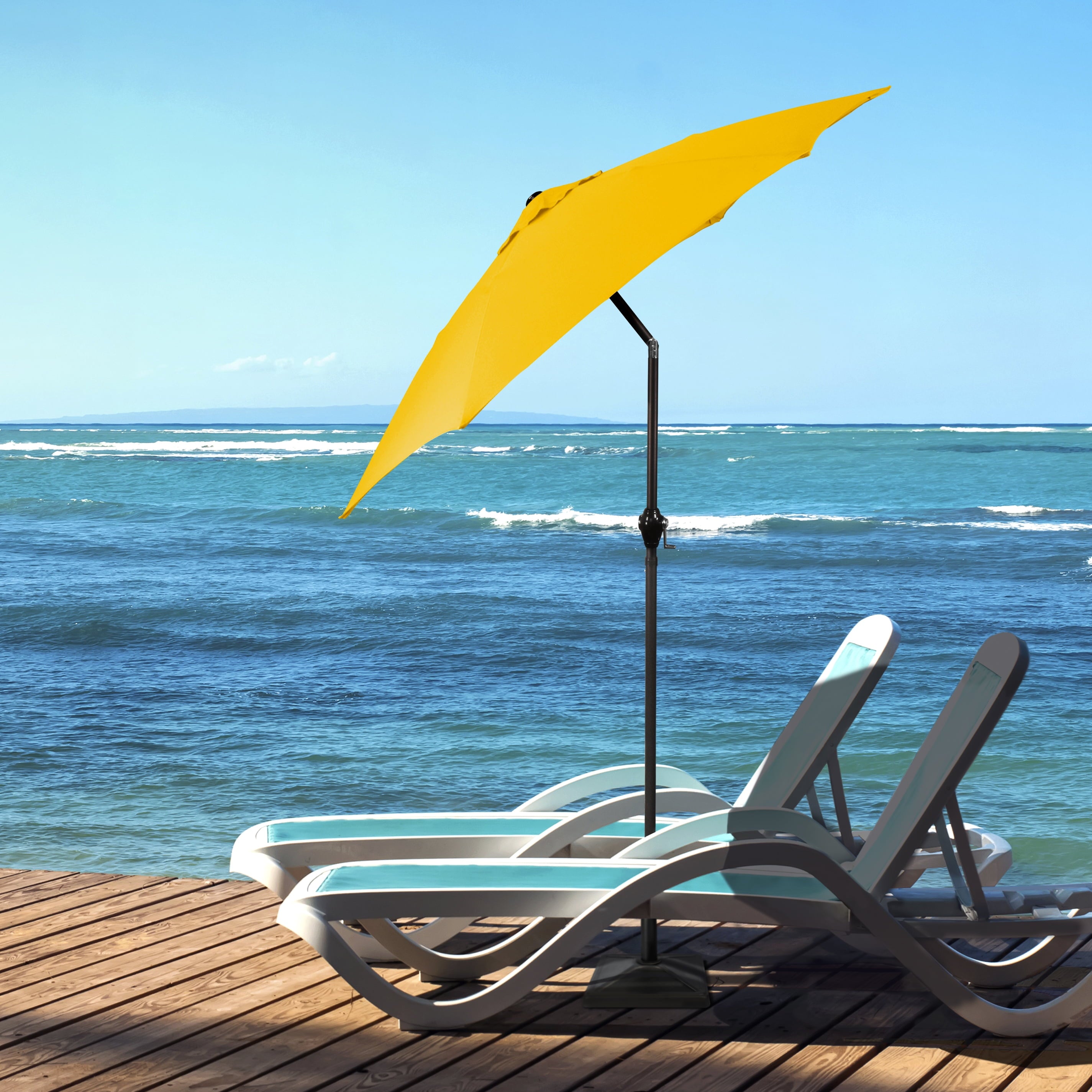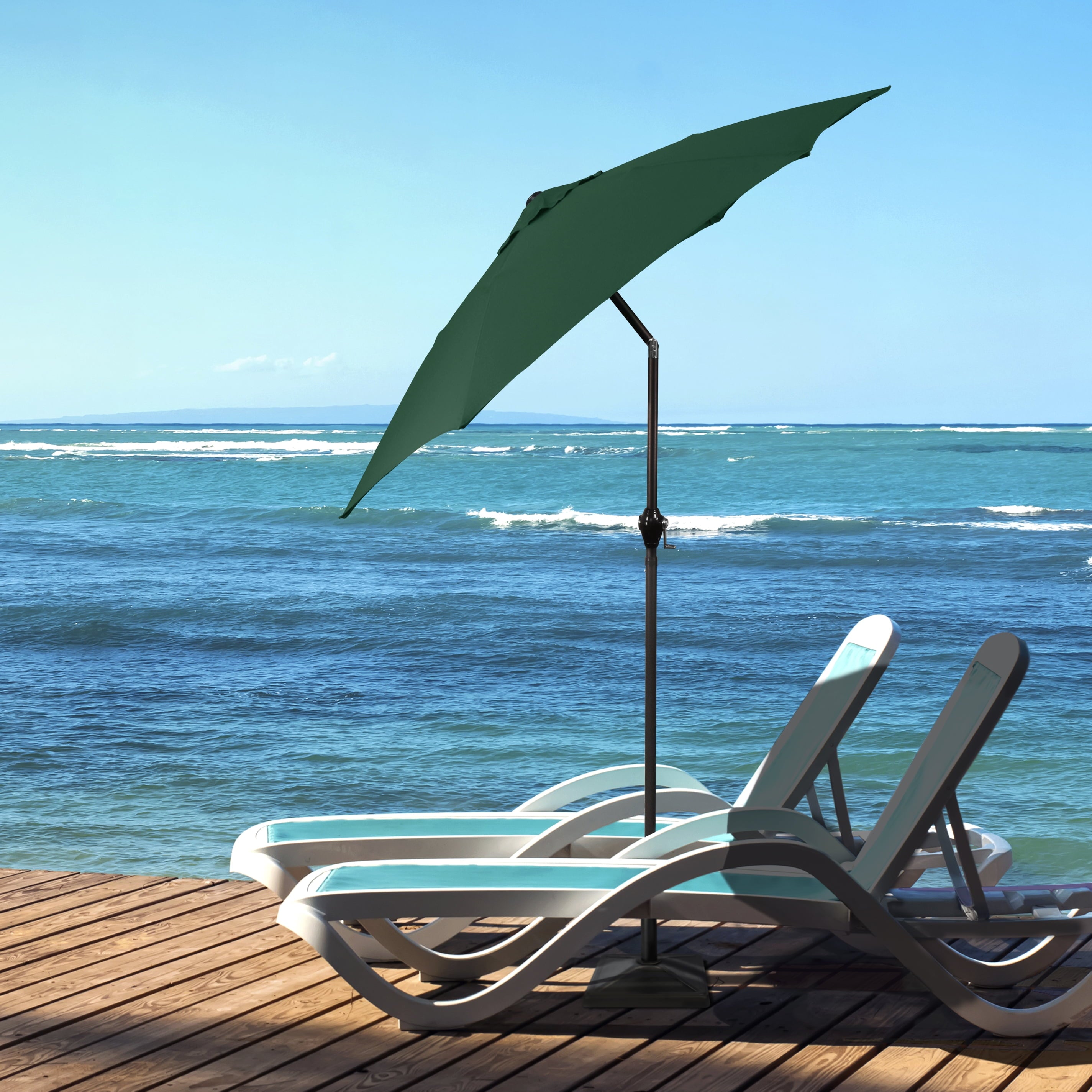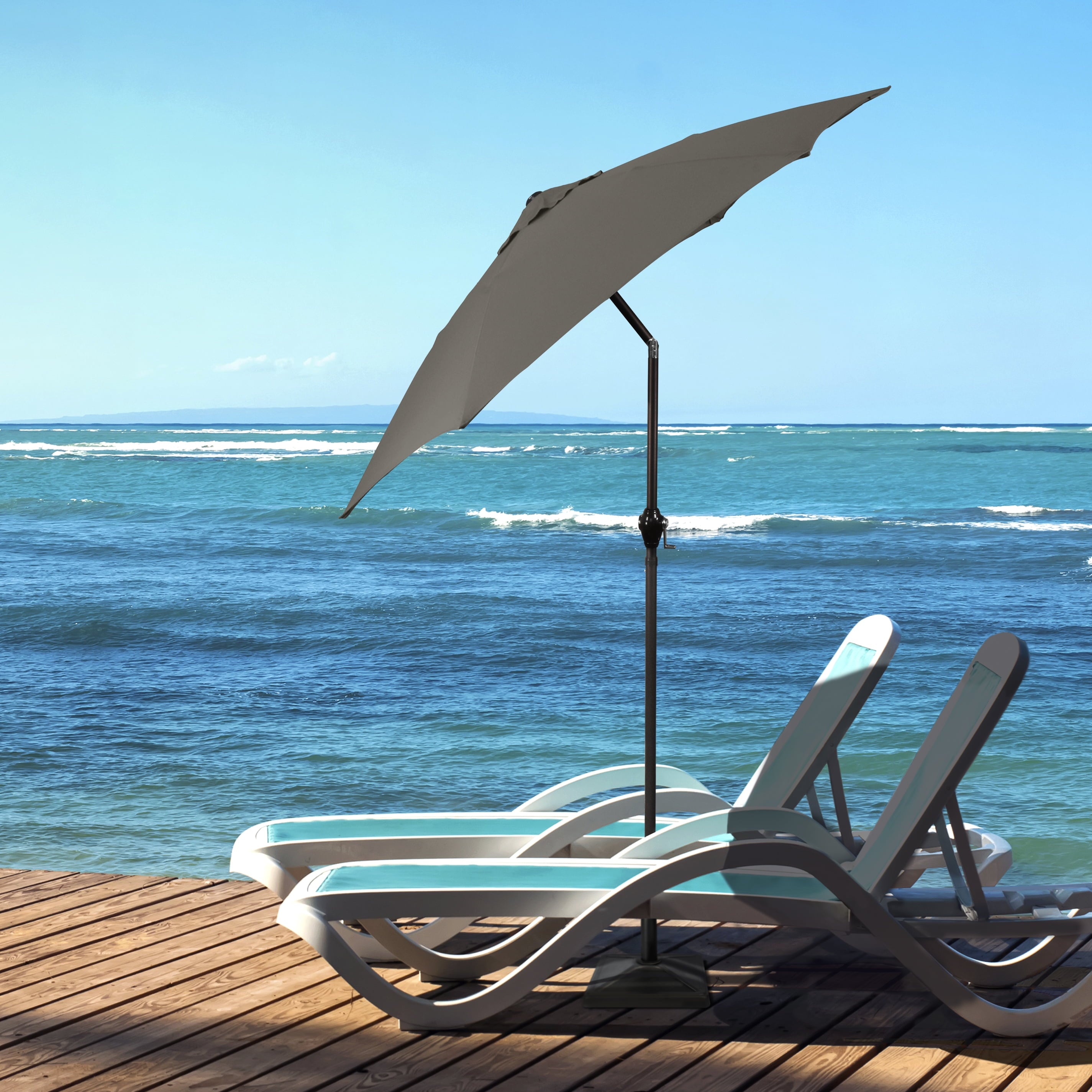 • Sleek 7.5-foot polyester canopy provides protection from UV rays, convenient crank allows for easy opening and closing of the umbrella.
