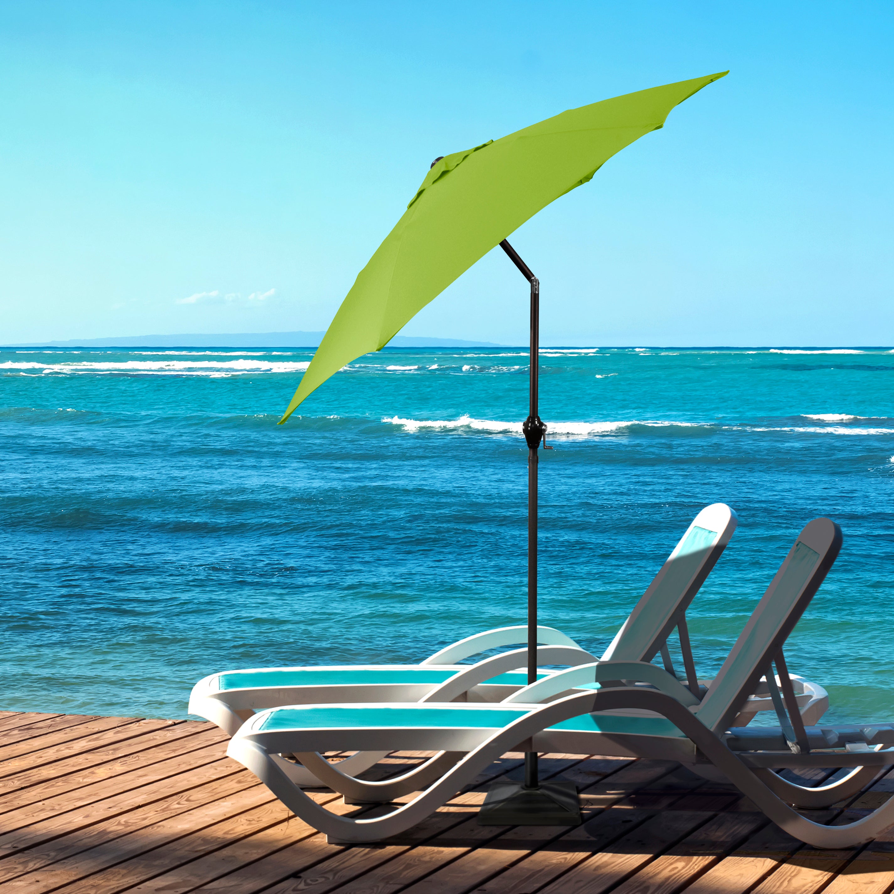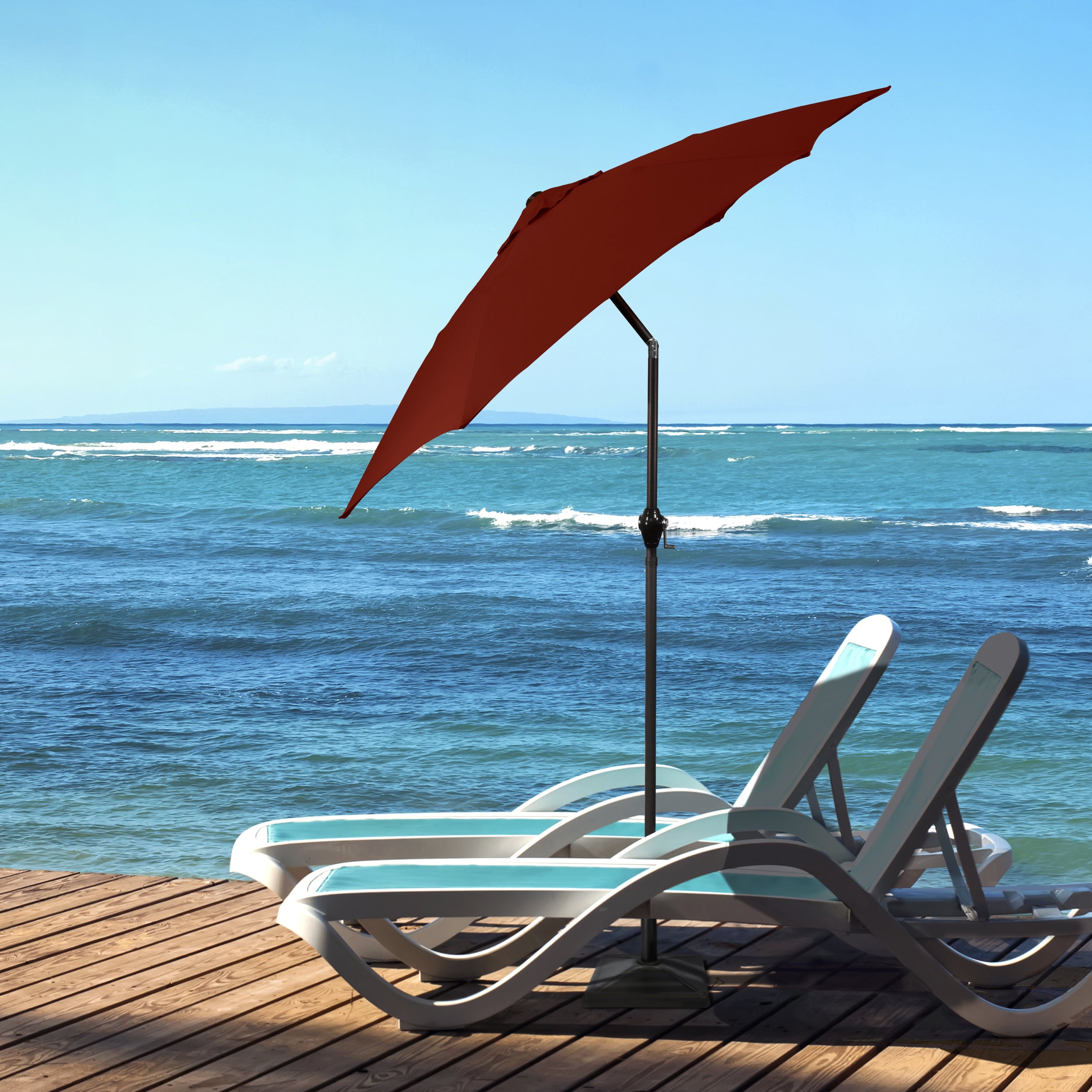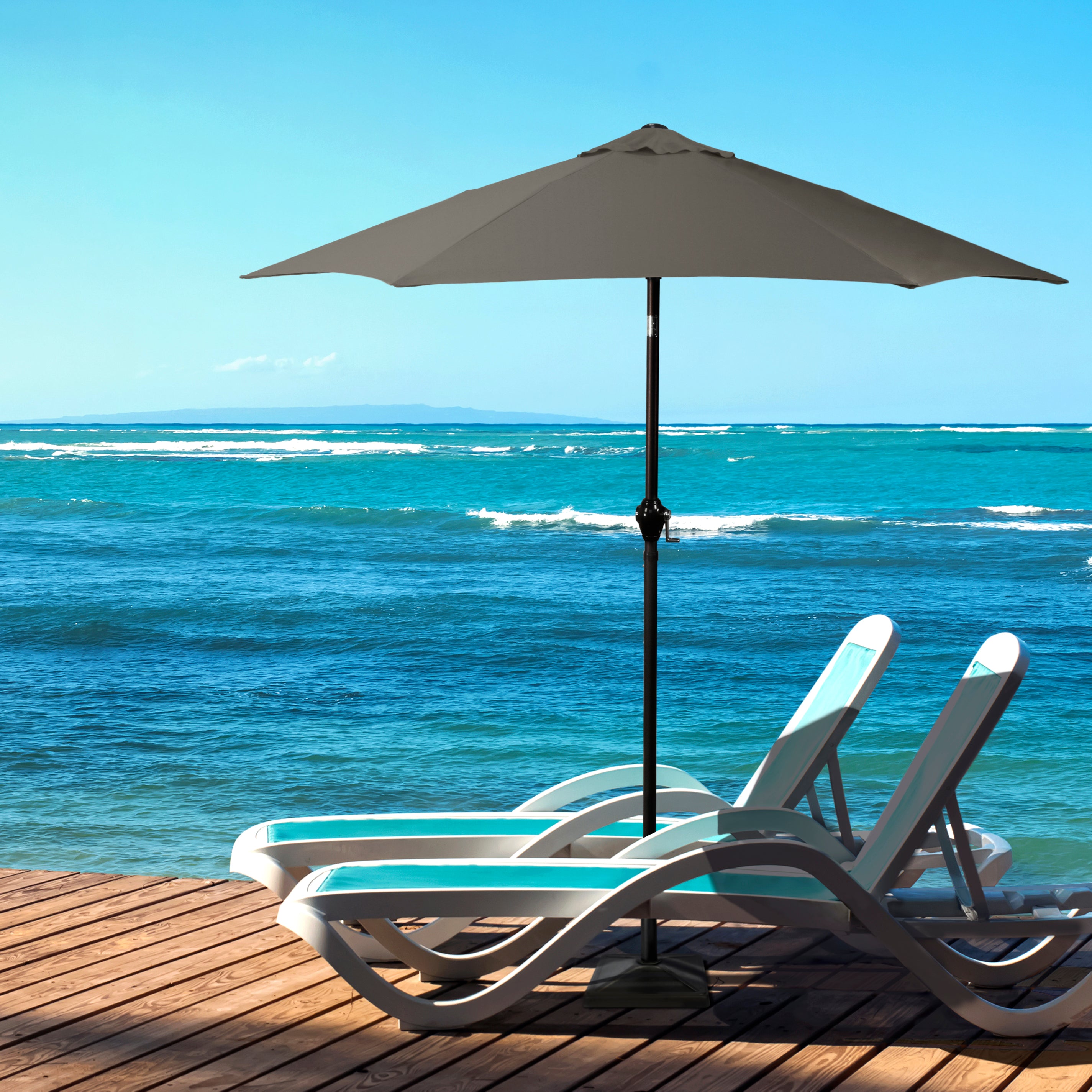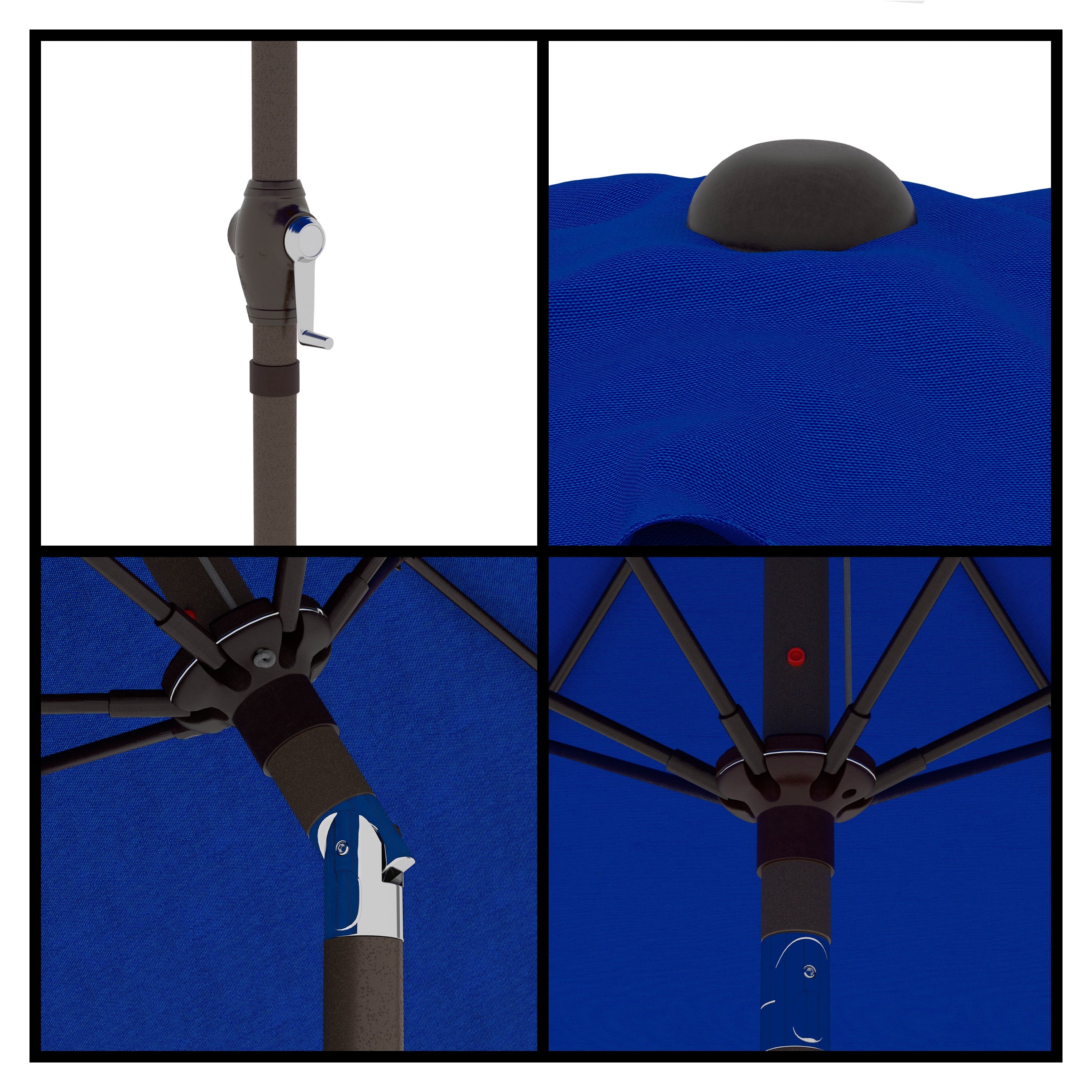 • Sleek 7.5-foot polyester canopy provides protection from UV rays, convenient crank allows for easy opening and closing of the umbrella.