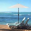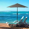 Summer afternoon” may be two of the most beautiful words ever paired, but when increased dangers from intense sunlight abound it may be hard to get in the outdoor spirit. Before fears of damaging UV rays darken your noontime relaxation, make sure to bring quality protection to your patio space with the Aluminum and Fiberglass Market Umbrella. The spacious 7.5-foot polyester canopy adds a protective shield to your patio so that you can enjoy your time outside worry-free. As the hours pass and the sun climbs higher in the sky, the simple push-button tilt mechanism allows for an easy adjustment to the canopy’s angle to extend your time in the fresh air. When the day comes to a close, the convenient crank mechanism allows for easy closing of the umbrella until the next day. As temperatures rise throughout the year, there will be no shortage of summer days needing this patio umbrella’s shade.
