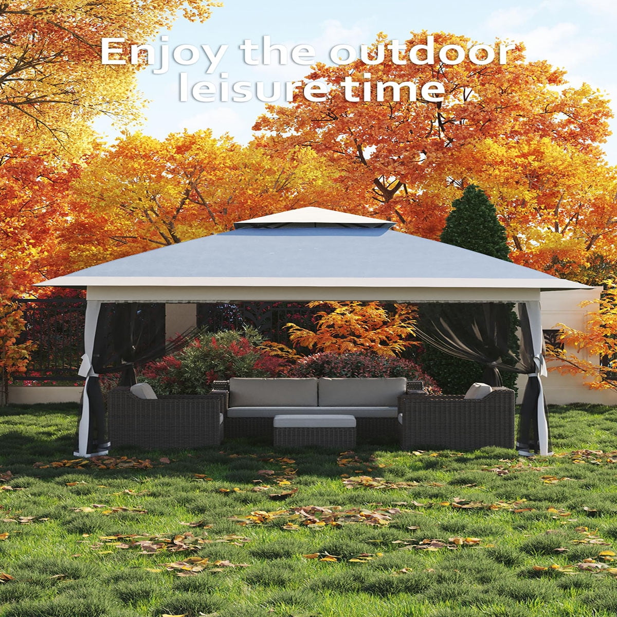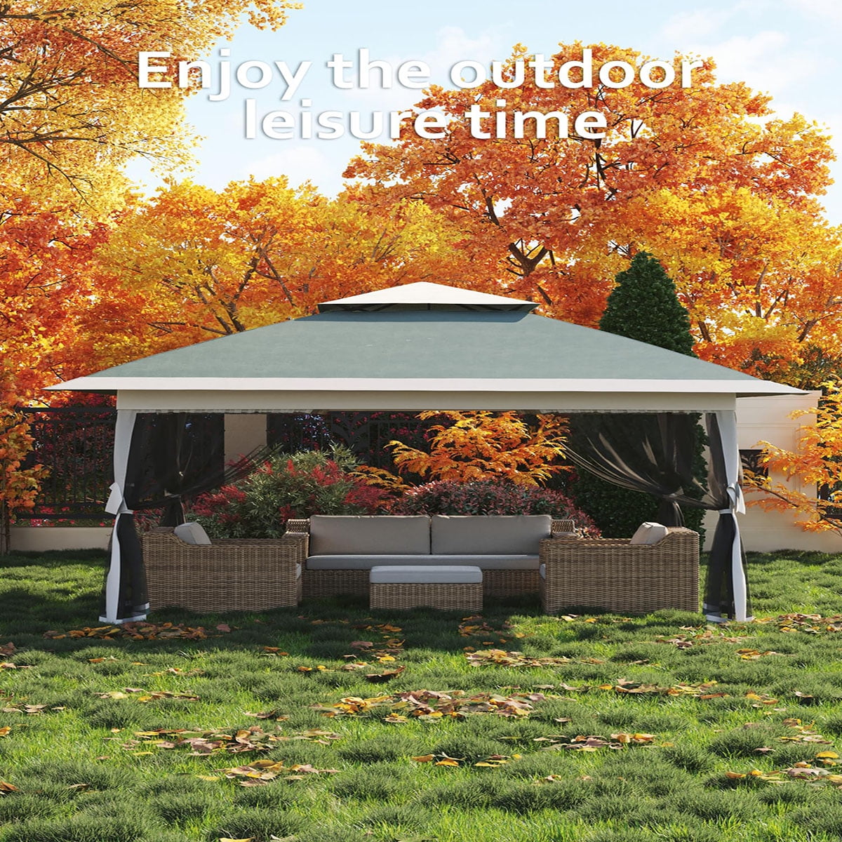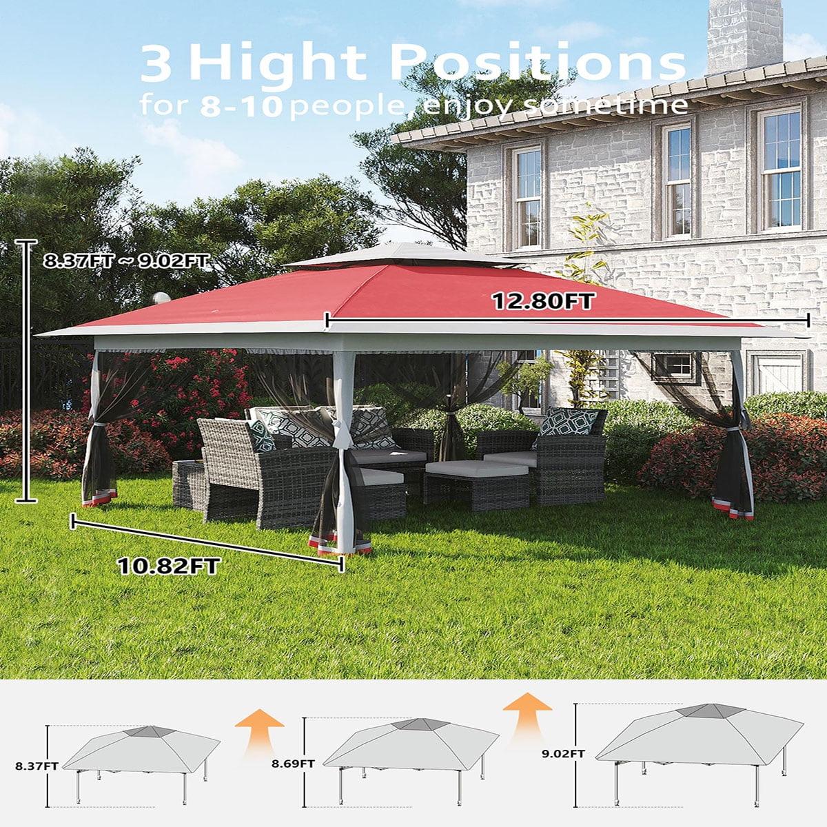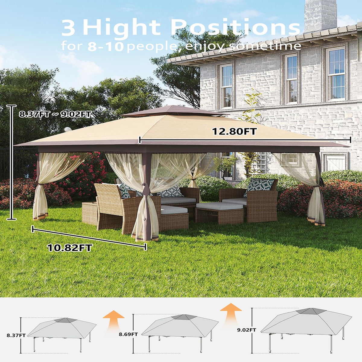 Ataucjin 13x13  Gazebo, Outdoor Canopy Tent with Mosquito Net, Height Adjustable Canopy Gazebo, Large Shade Tent for Camping, Lawn, Backyard, Garden, Patio