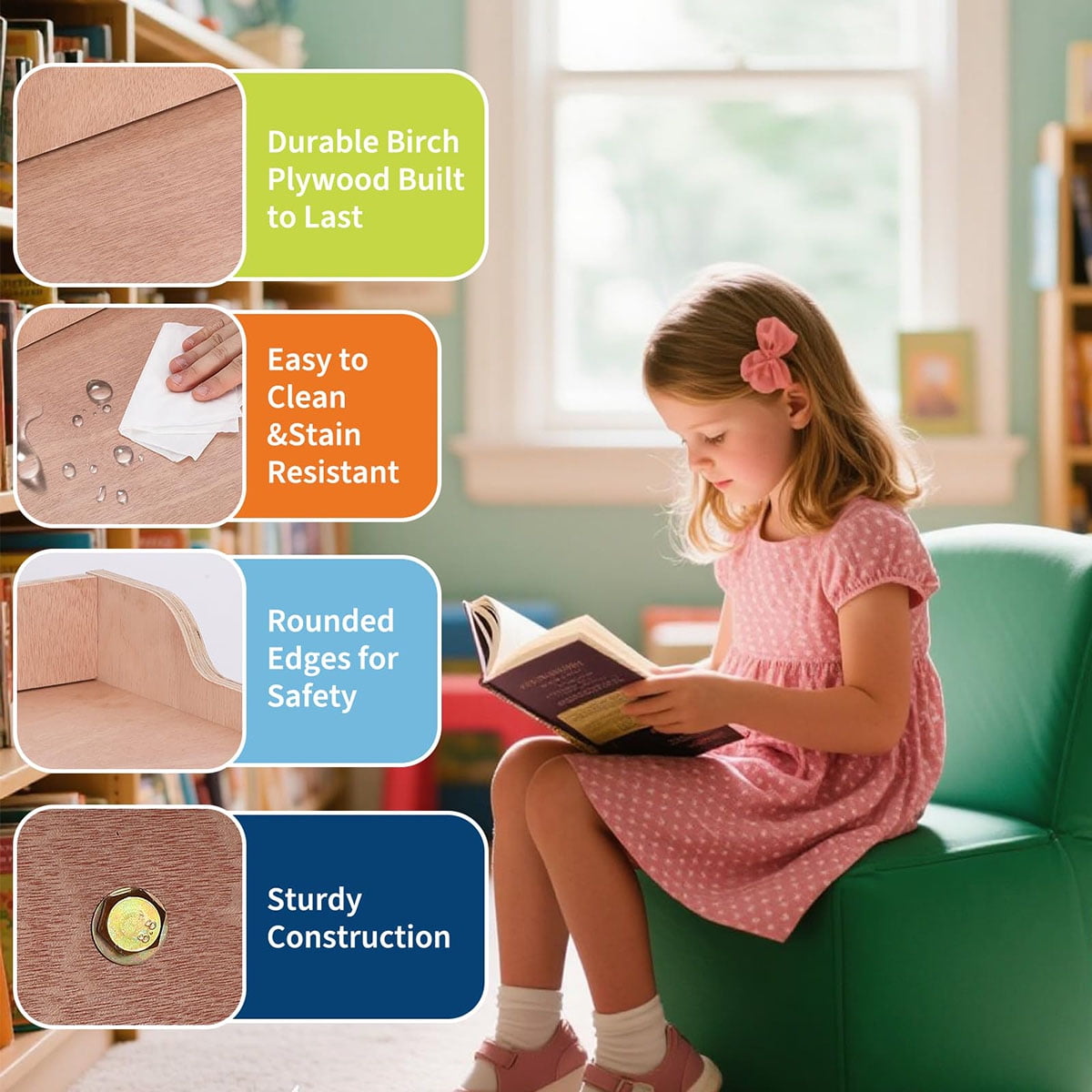 - Dimensions and Assembly: This kids’ furniture measures 54″ W x 13″ D x 48″ H, offering a spacious storage solution suitable for various settings. Adult assembly is required, but clear instructions are provided to make the process as straightforward as possible.