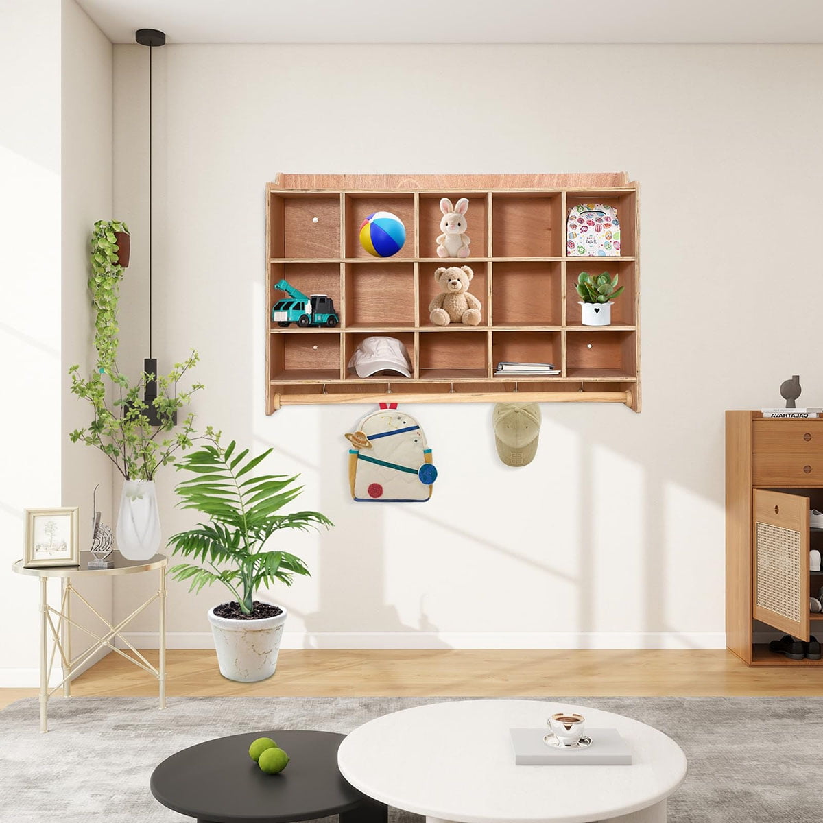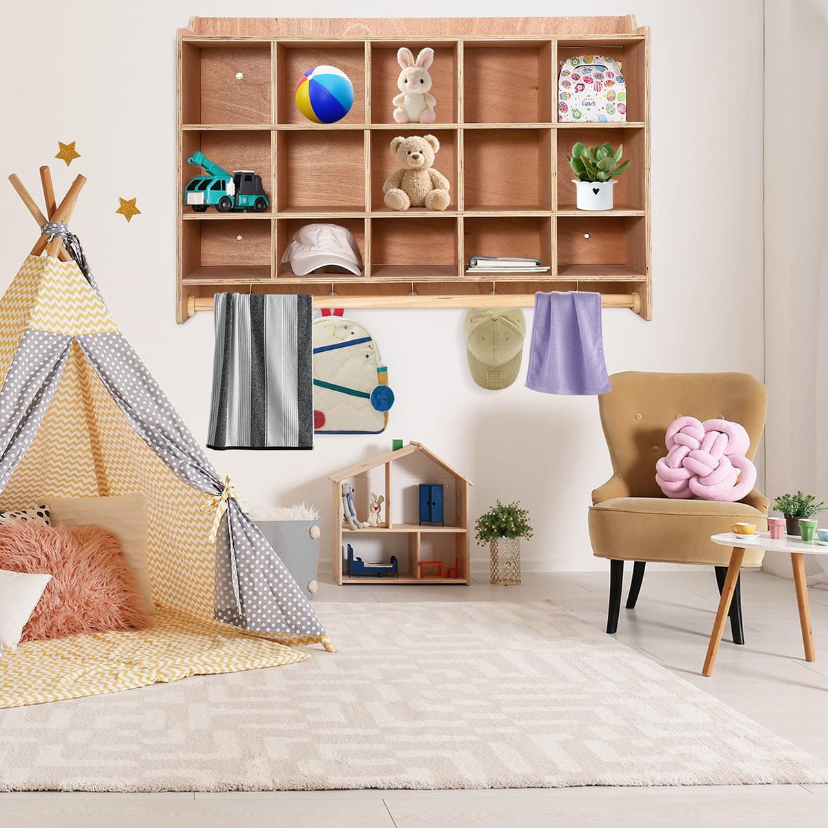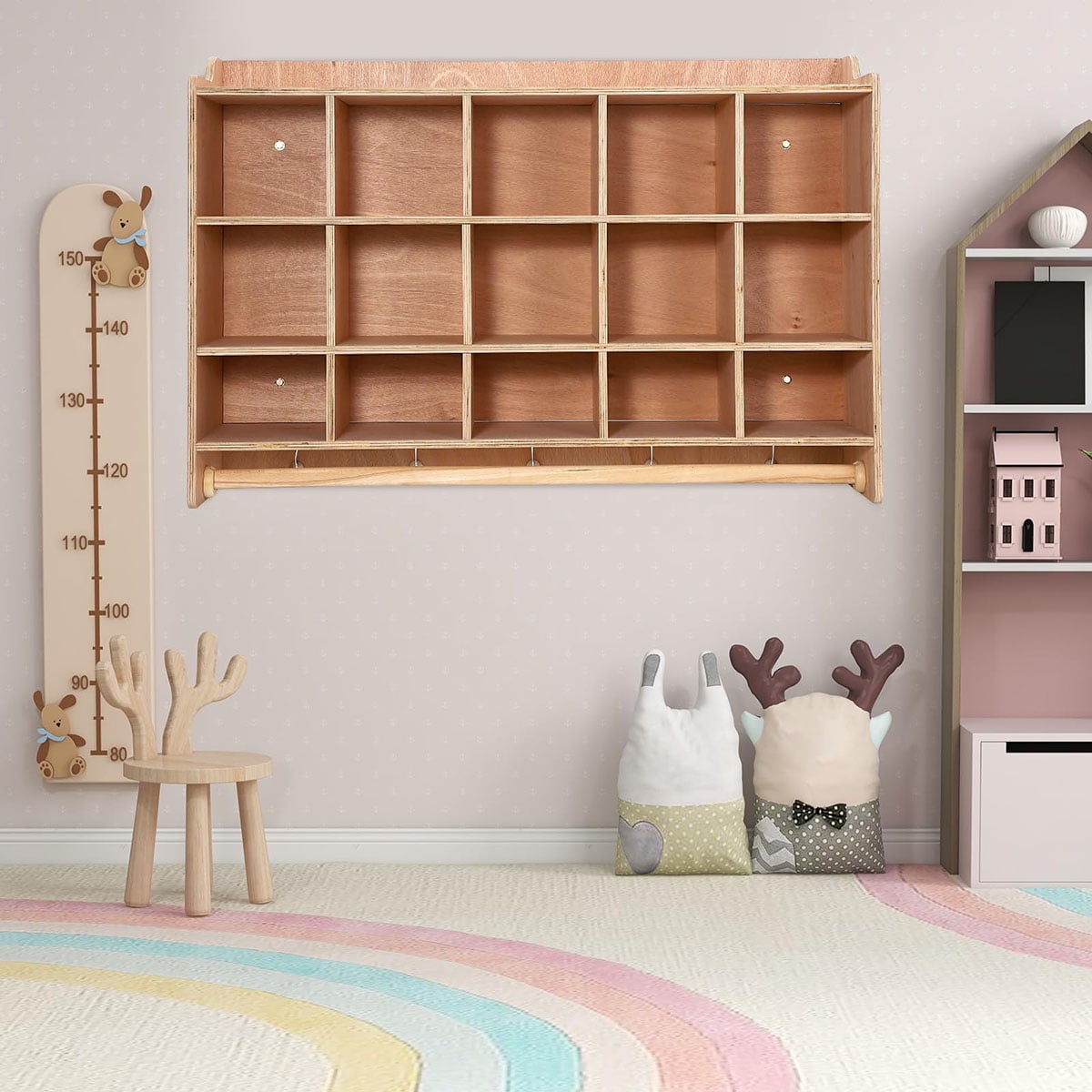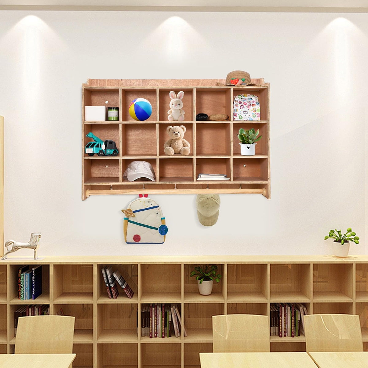 - Ample Storage Space: Our versatile shelving unit features five open storage areas, 5 double-side coat hooks, and 20 cubbies, providing plenty of room to organize jackets, lunchboxes, school supplies, and more in playrooms, or classrooms.