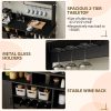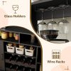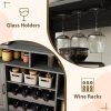 - Wine & Coffee Bar Cabinet: This farmhouse storage cabinet features a wine glass holder, hanging rod for utensils, and wine racks for your favorite bottles. The spacious tabletop and open shelves keep appliances and everyday items organized