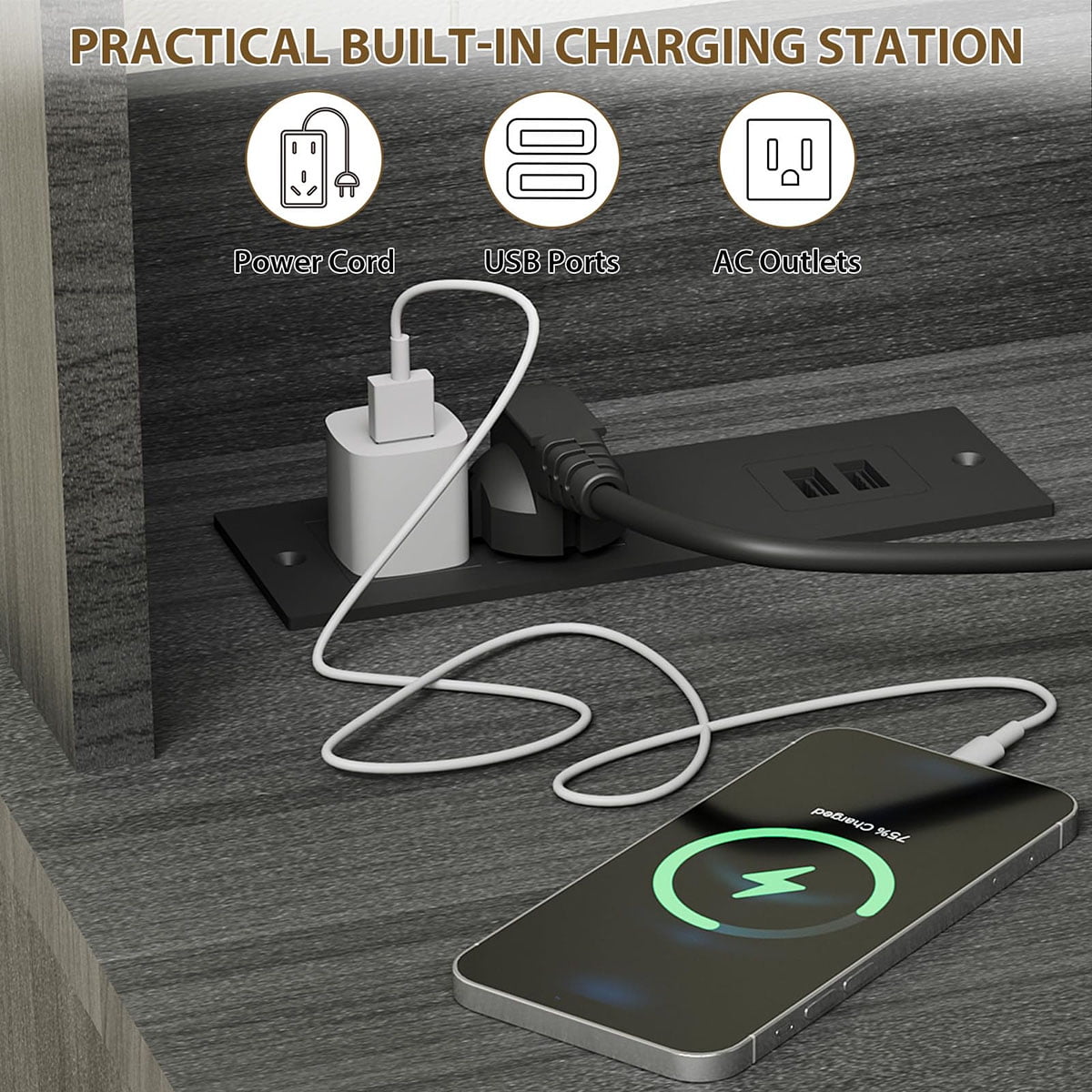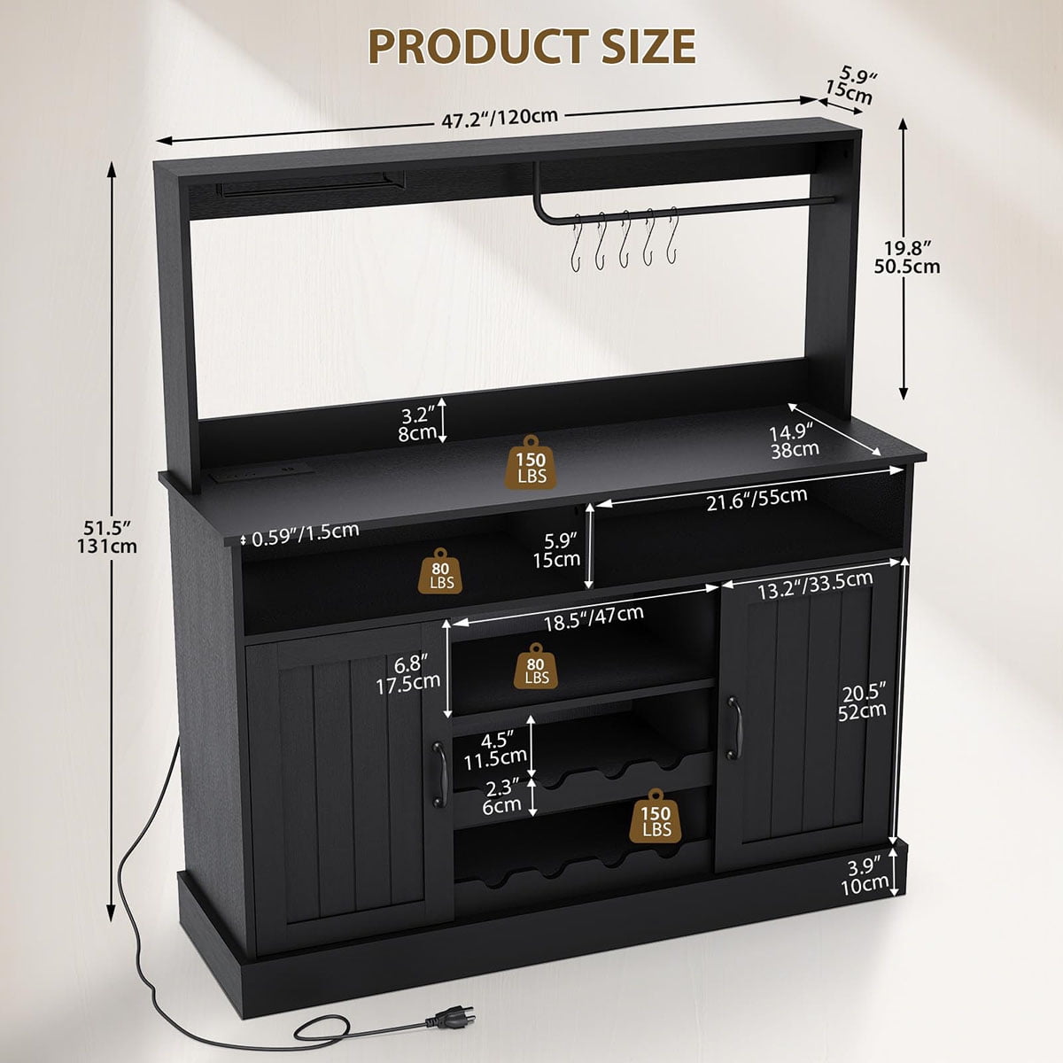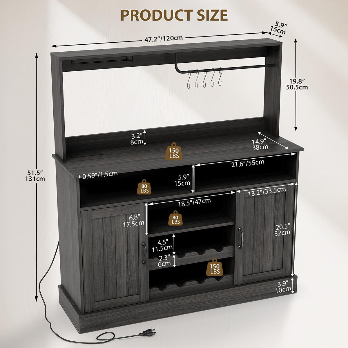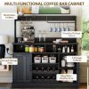 - Built-In Charging Ports: Equipped with 2 AC outlets, 1 Type-C, and 1 USB port, this wine bar cabinet lets you easily power a microwave, coffee maker, or charge your phone while enjoying drinks. Ideal for modern kitchens and lively home gatherings