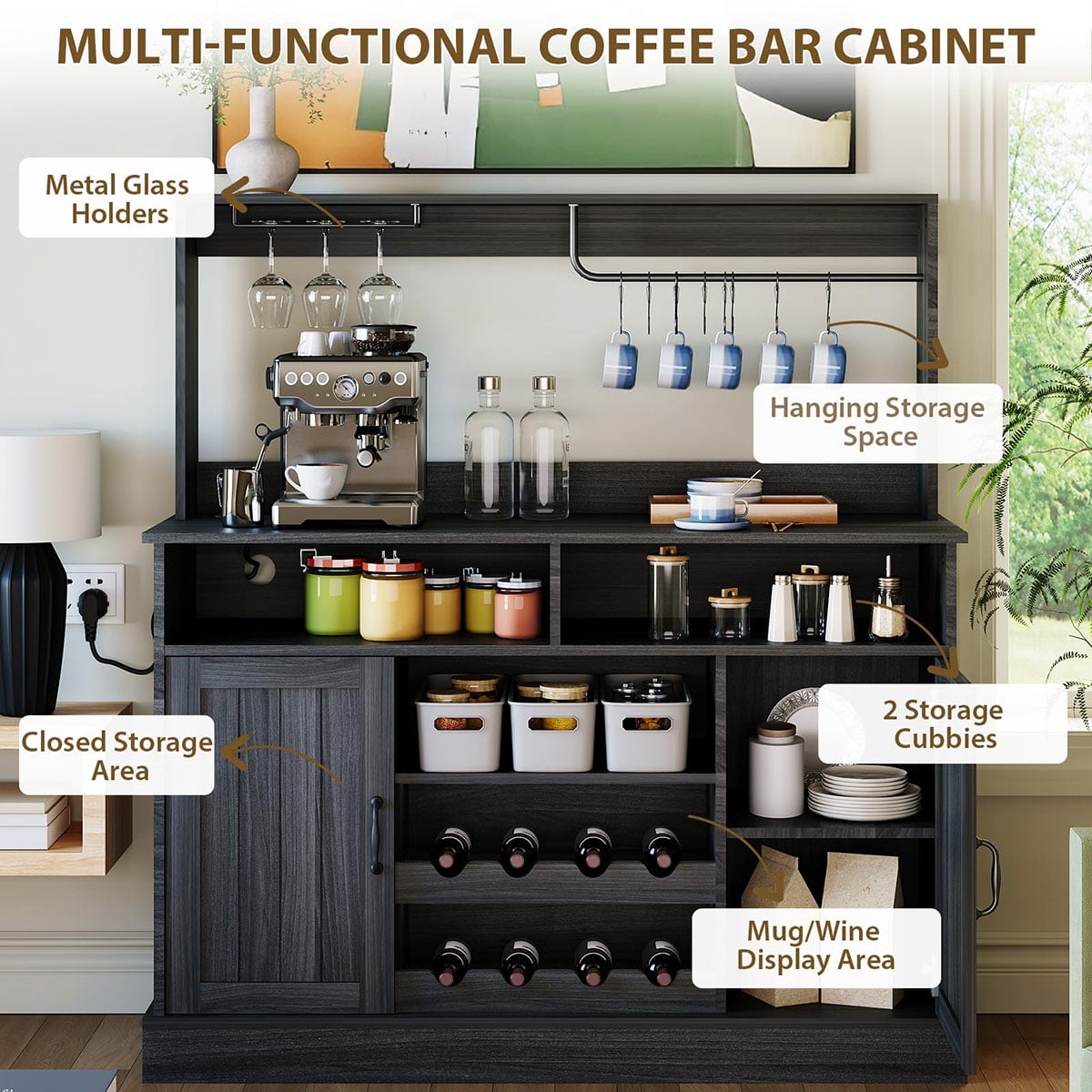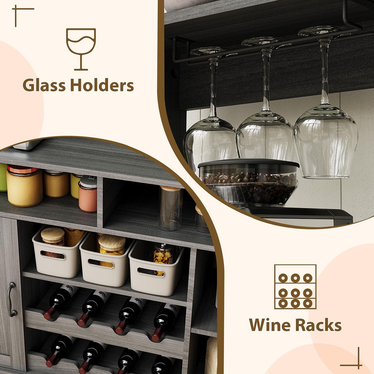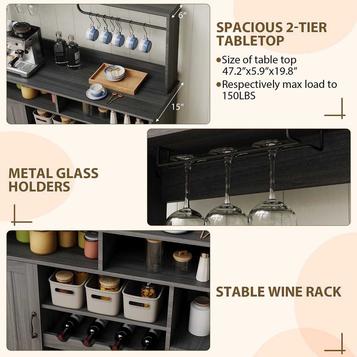 - Easy Assembly, Hassle-Free Setup: Your new kitchen coffee bar cabinet with storage arrives with clear instructions and all necessary parts. Set up is quick and convenient—enjoy a clutter-free, welcoming coffee hutch or wine bar in no time