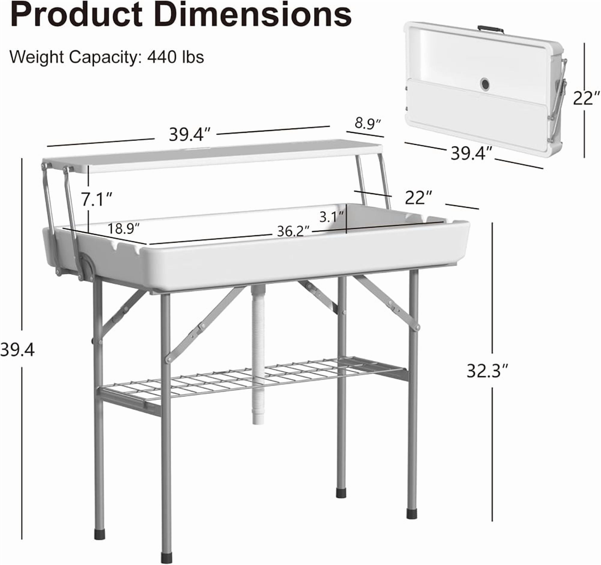 • 【Versatile Usage】–The size of the portable cooler table is 40.5″ x 22″ x 39.4″, folded size is 40.5″ x 22″ x 5″, perfect for various events such as weddings, parties, picnics, tailgates, fishing and family gatherings, it can be used to keep drinks cold, display food, or serve as an additional prep area. This folding table will keep everything chilled and refreshing!