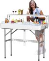 • 【Removable Table Skirt & Folding Design】–Our ice cooler table comes with a removable, washable table skirt that is aesthetically pleasing. The folding ice table is easily foldable, the carry handle making it convenient for storage and transport, greatly helping you to save your storage space.