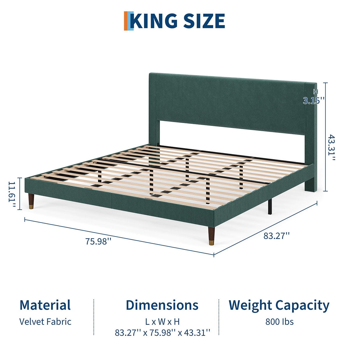 - Robust and Reliable Support: Designed with a metal slat system for optimal mattress support, this upholstered platform bed frame boasts multiple heavy-duty support feet and solid metal slats; enjoy peace of mind with a high load-bearing capacity of up to 800 pounds