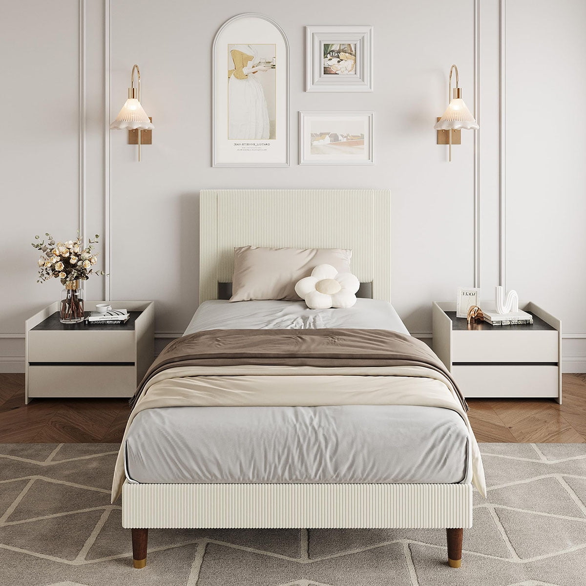 - Stylish and Cozy Design: This platform bed frame features a contemporary headboard wrapped in smooth corduroy and soft sponge, adding elegance and comfort to your bedroom; its breathable and skin-friendly surface enhances your sleeping experience