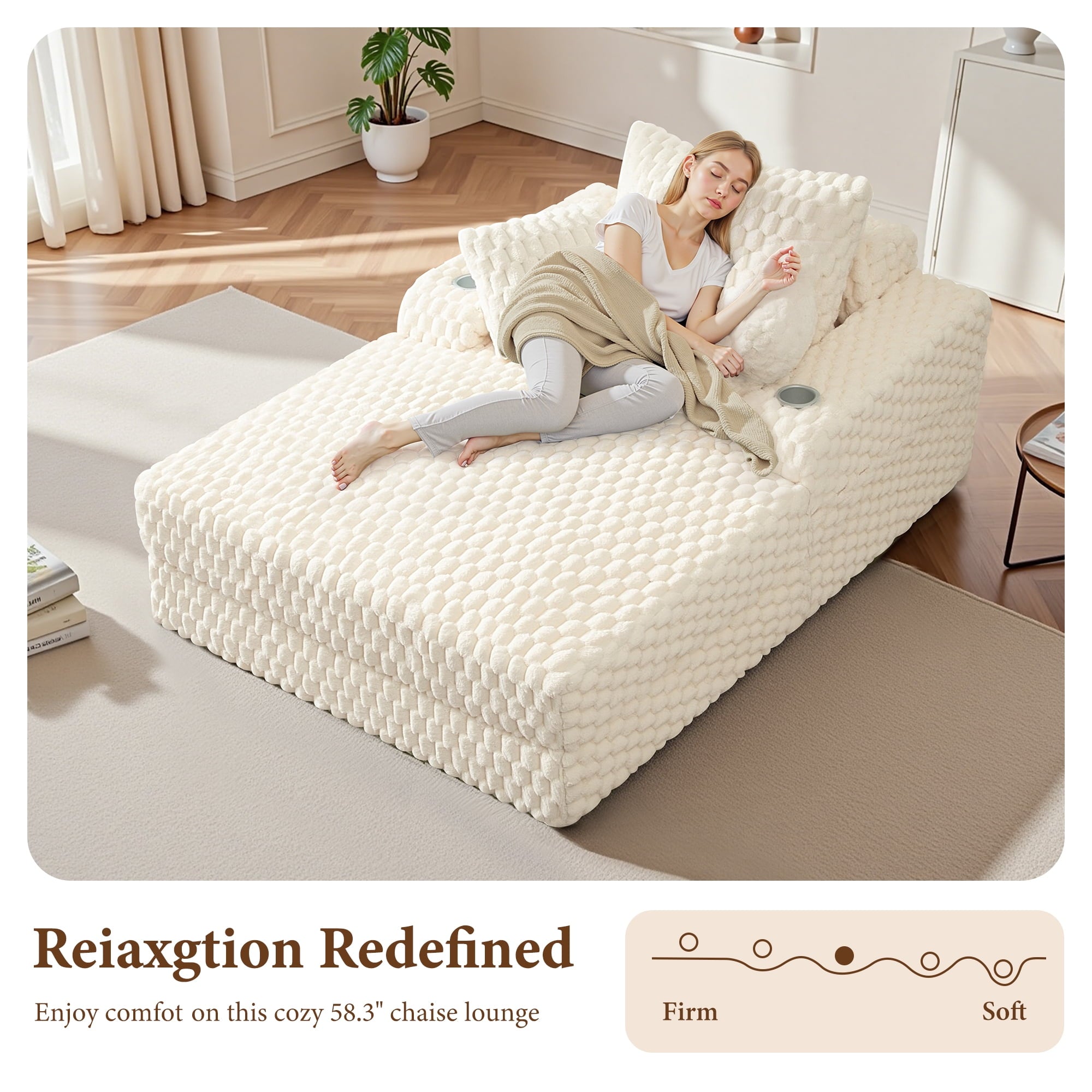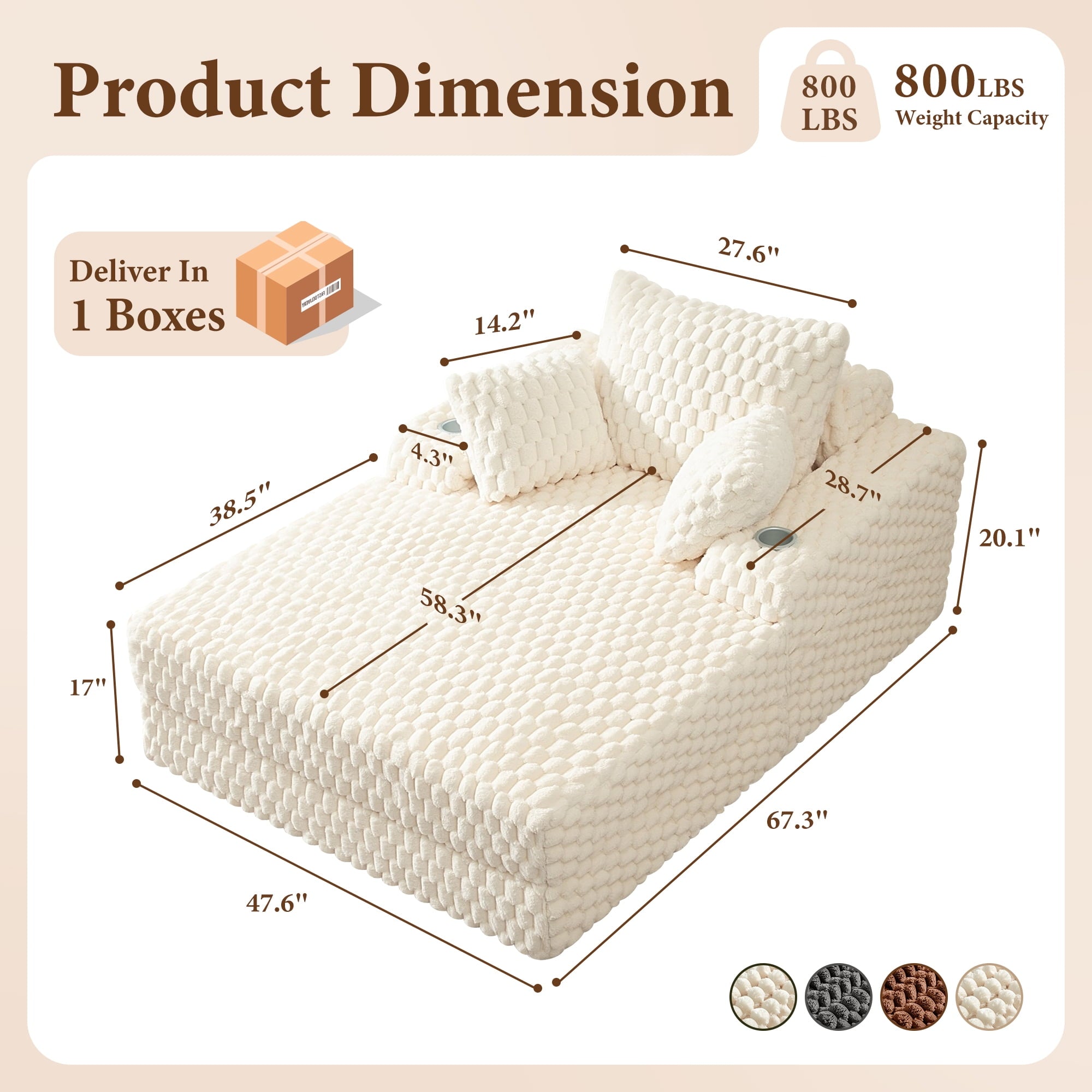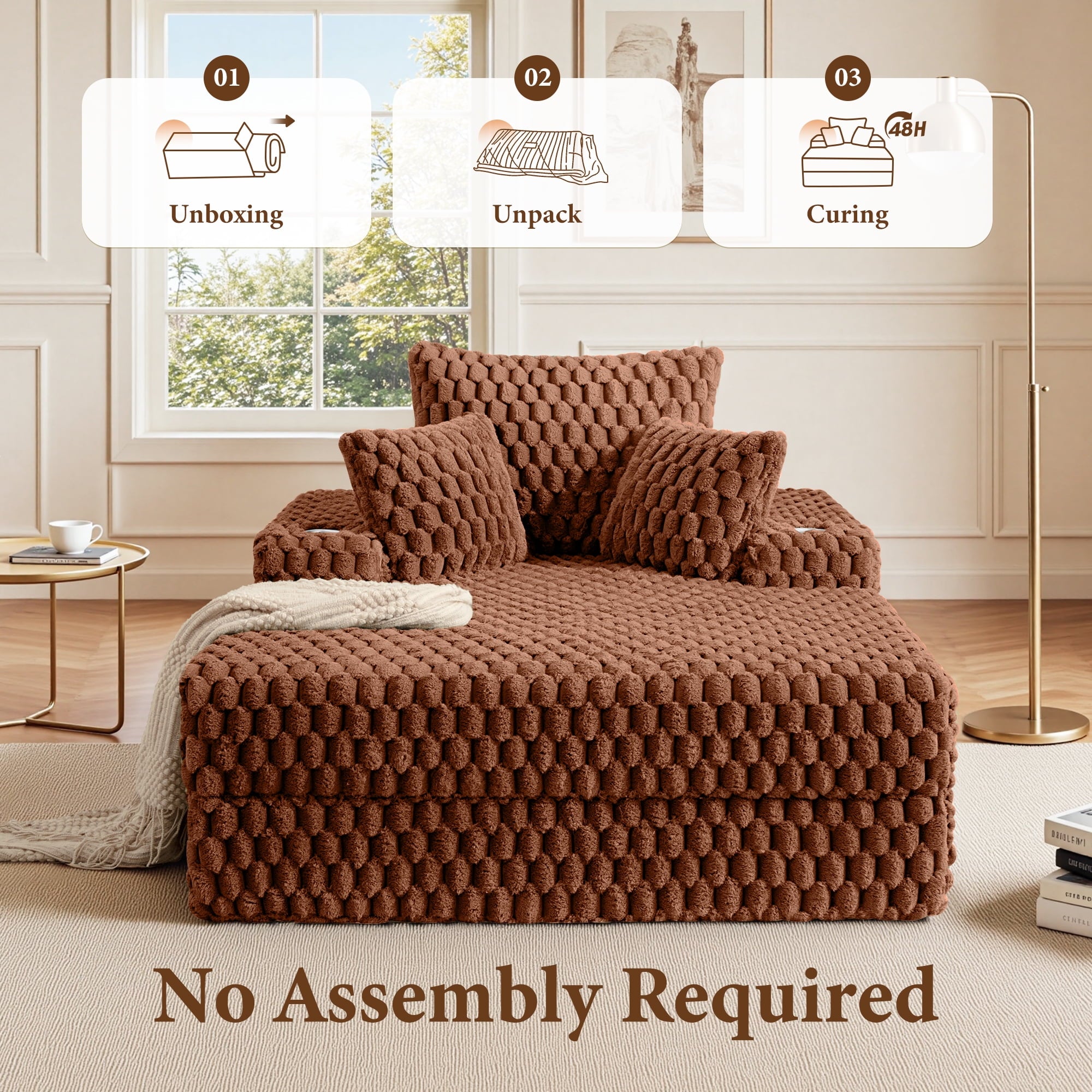 This oversized chaise lounge chair is designed for ultimate relaxation and modern convenience. With its generous 53-inch width and deep 47-inch seating area, it provides exceptional space for reading, napping, or enjoying movie nights with loved ones. Upholstered in premium breathable corduroy fabric and filled with high-density foam and pocket springs, it maintains perfect shape while delivering plush support. The ergonomic design ensures full-body comfort, ideal for extended periods of relaxation or meditation. Practical built-in features include removable cup holders and integrated charging ports to keep your devices powered. With its sleek modern aesthetic and simple, quick assembly process, this chaise lounge effortlessly combines style, comfort and functionality for any living space.