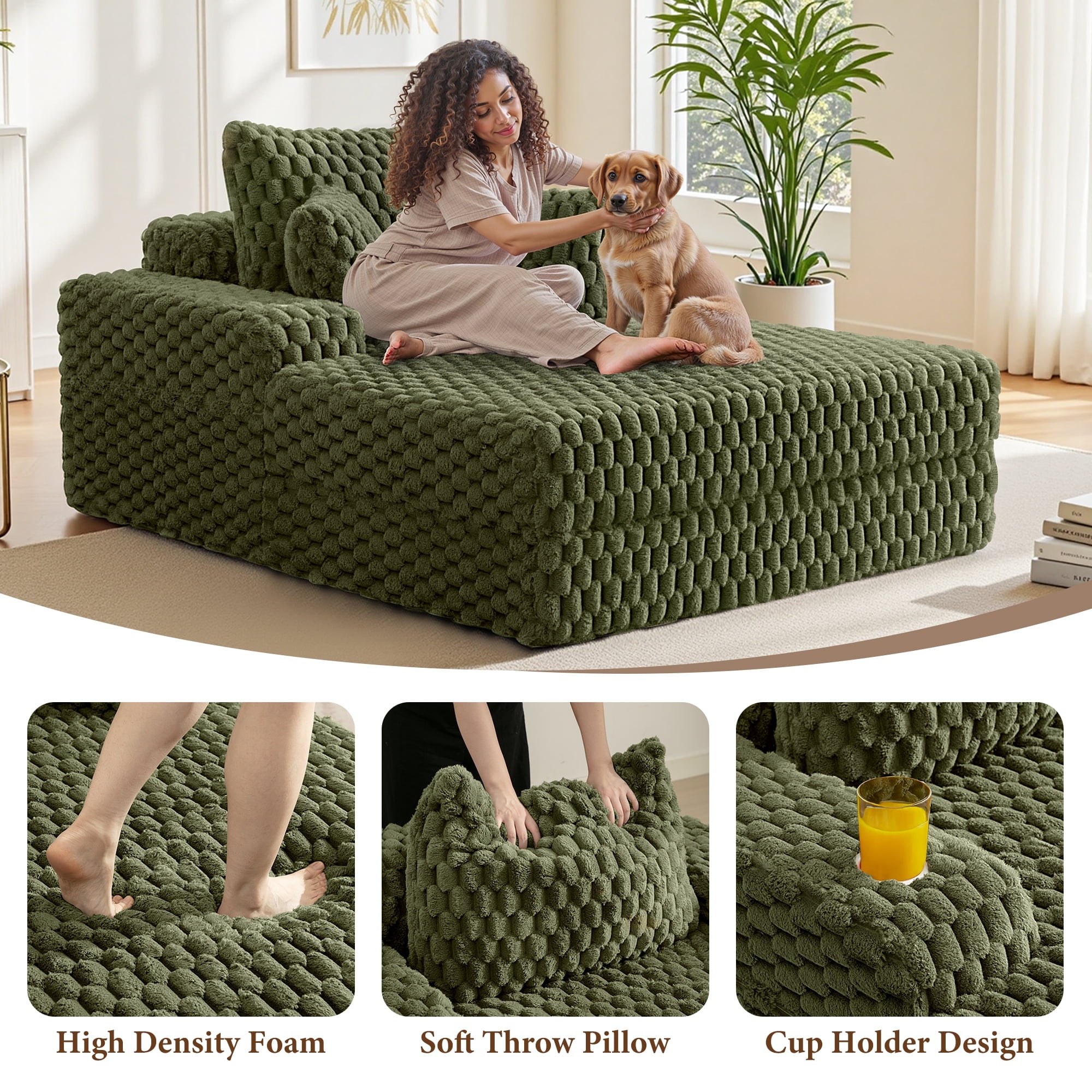 Main Material: Corduroy - ATHOPE 53″W Oversized Chaise Lounge Chair Indoor, Corduroy Couch Chair with Pillows, Comfy Reading Chairs with Wide Arms, Upholstered Sleeper Sofa for Living Room, No Assembly Required