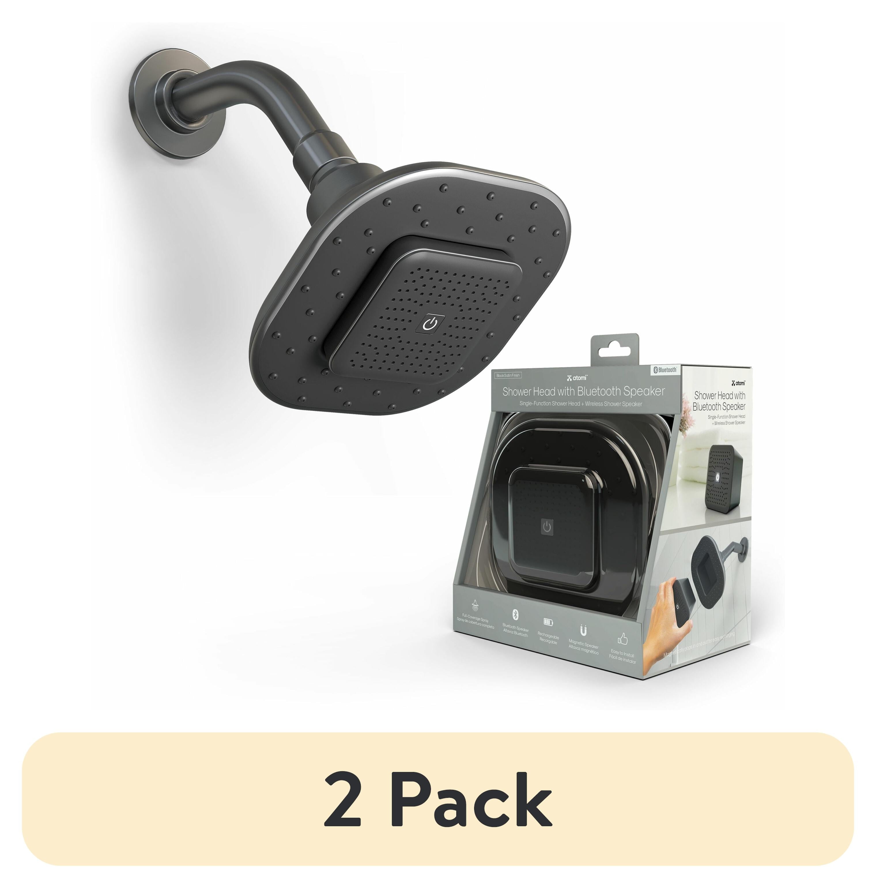 Never miss a beat while in the shower with the Atomi Showerhead with Bluetooth Speaker. With the magnetic removable speaker, showering and listening to your favorite tune is a breeze. Enjoy up to 6 hours of playtime while relaxing in the shower and easily remove the speaker and place anywhere to enjoy music while you finish getting ready for any occasion. IPX4 waterproofing protects against accidental splashes on all sides. Never miss another call while showering; the Atomi Bluetooth Shower Head is equipped with a built-in microphone for hands-free calls. Start and end calls effortlessly with the touch of a button; perfect for anyone with a smart phone. The atomi showerhead with bluetooth speaker is easy to install. With the universal showerhead replacement, easily twist-on to replace a standard, filtered or angled showerhead. The atomi showerhead works with almost any existing showering plumbing setup, so anyone can be showering in minutes with no professional help needed.