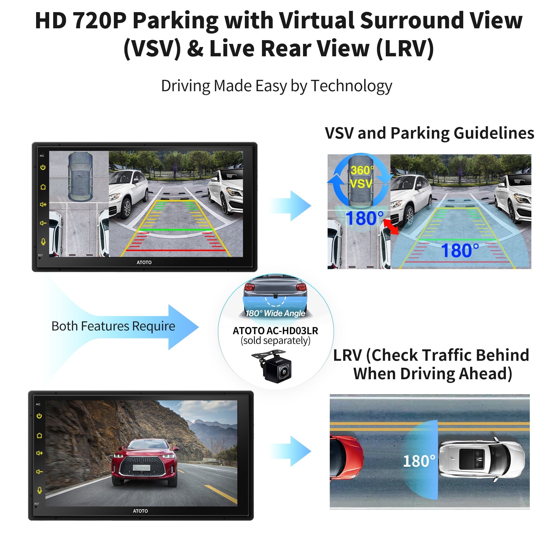 6. ATOTO ACWHD02LRM or ACWHD03LRM (with Virtual Surround View) HD Rear-view Camera;