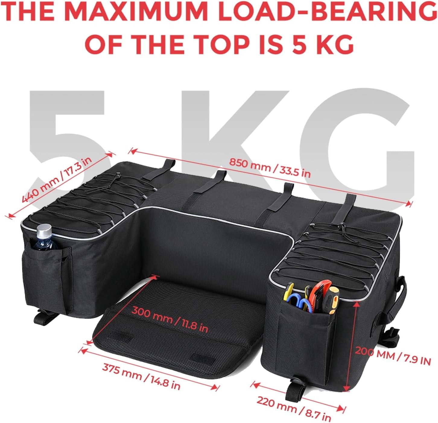 Shaped and Convenien: The three internal shelves not only support the ATV cargo bag but also can be detachable and portable when you don’t need to use this bag. Two grab handles on the left and right sides of the bag help in the loading and unloading of the bag from your ATVs. The top of the ATV back seat bag for passengers can carry a maximum weight of 5kg