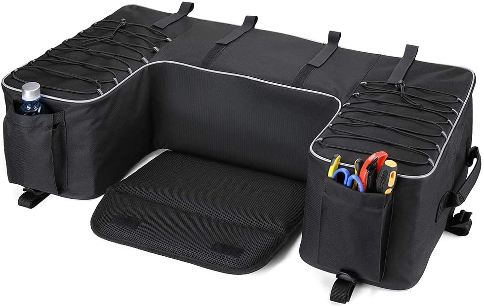 Comfortable and Stable: The Comfortable and breathable cushion of ATV seat bag makes your partner more enjoyable during the trips and you can pack it up in the bag by using self-fastening straps. The Reflective strips on seams are great at night for the people following. Seven adjustable attachment straps of the ATV pack make a universal fit and they will be securely fastened to the saddle once installed. Universally compatible with Polaris Sportsman Rancher Foreman Grizzly and so on, fits for ATVs with racks or panels with grooves