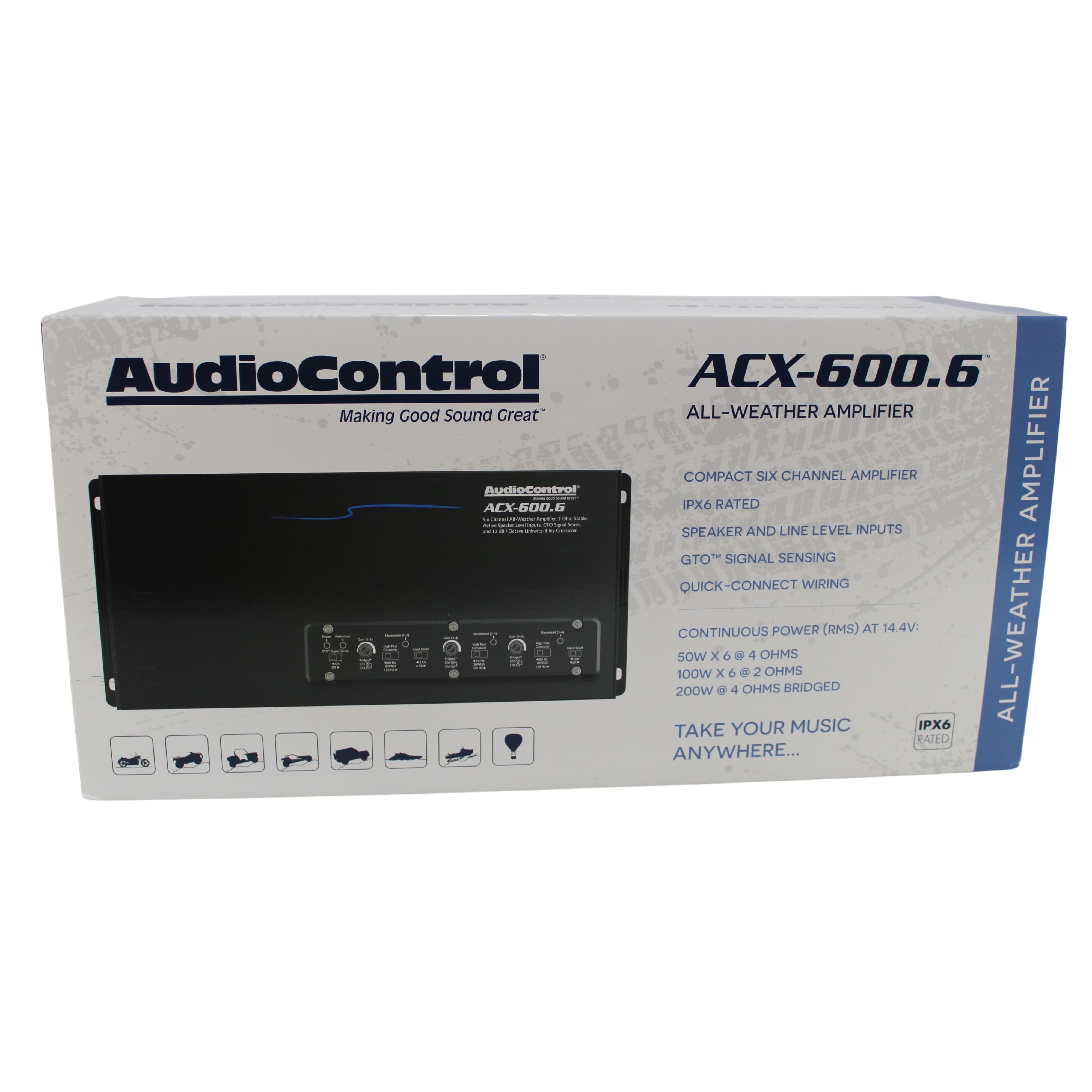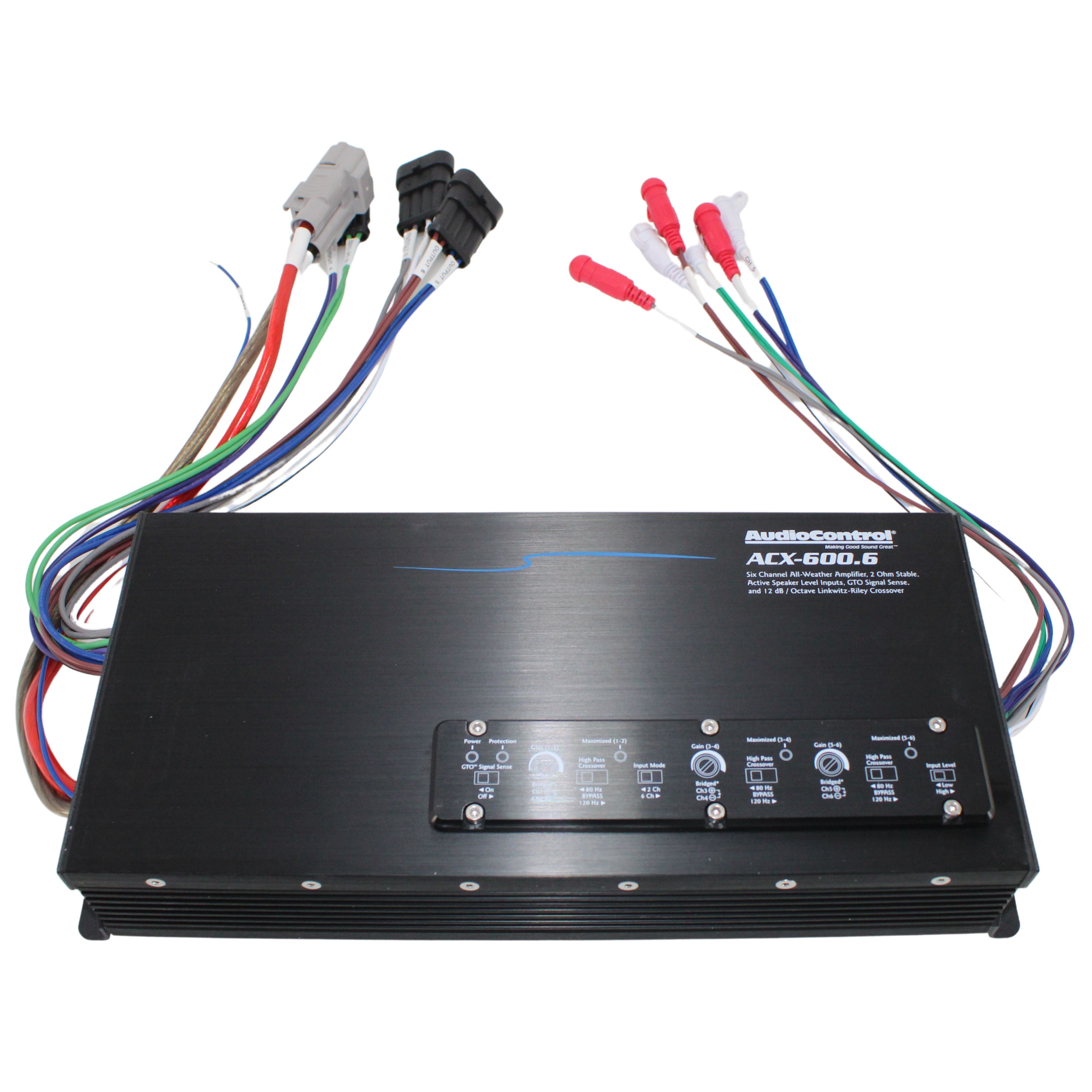 AudioControl’s ACX-600.6 all-weather amplifier delivers honest power levels to the sound system in your boat, utv, motorcycle, and more. The ACX-600.6 will ensure your open-air speakers and subwoofers deliver plenty of punch and clarity, all day long. Installer-friendly, heavy gauge quick-connect wiring makes installation quick and painless, making the ACX-600.6 all-weather amplifier the perfect solution for your next adventure.