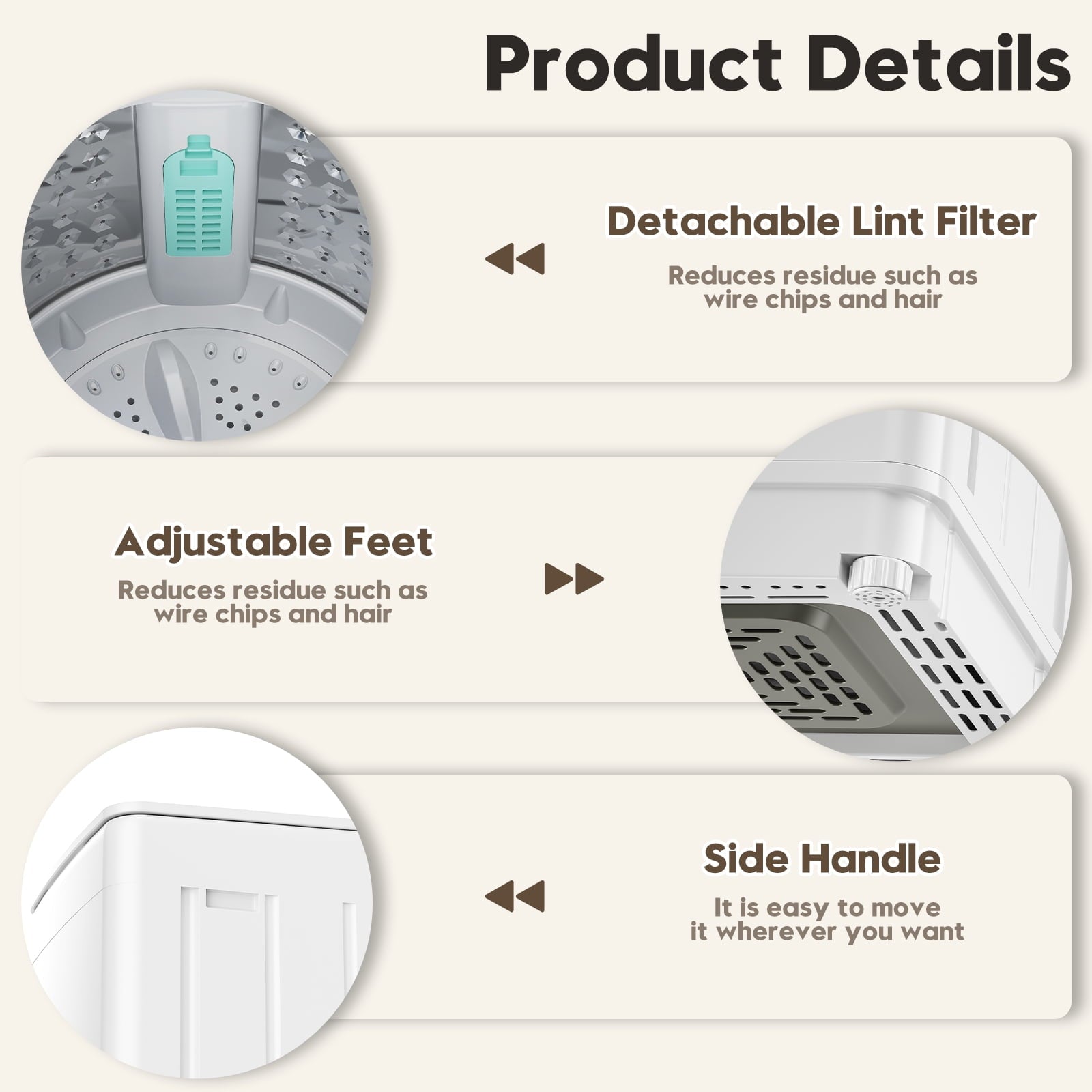 💡Features: Protective Rat Mesh, Child Lock, Drum Clean, Adjustable Leveling Legs