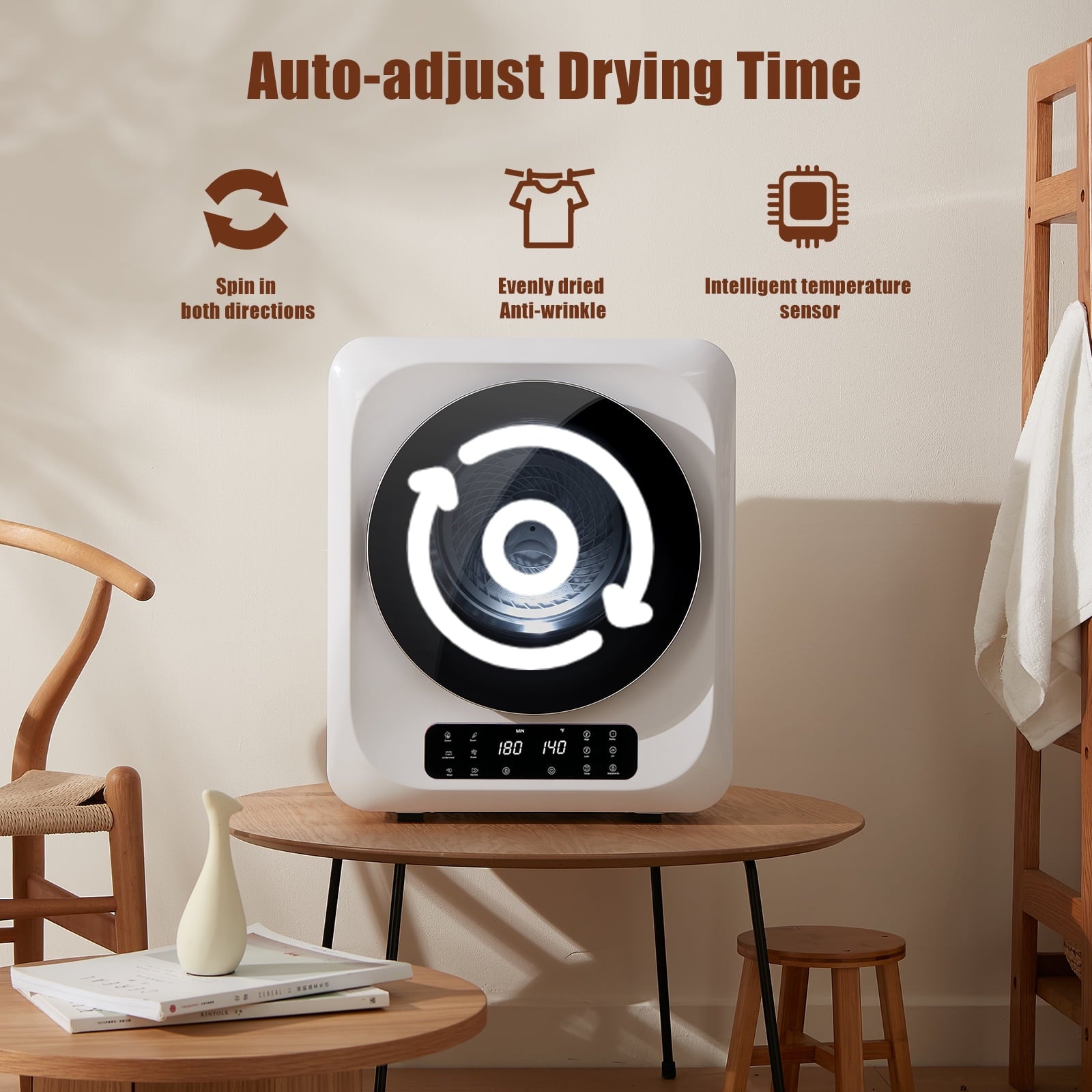 - [ Portable and Space-Saving ] Our portable clothes dryer is the ideal solution for small spaces like apartments, dorm rooms, RVs, and laundry areas. Its compact design saves space while providing efficient drying, ensuring your clothes are fresh and ready in no time. Lightweight and easy to move, it fits seamlessly into any environment. With a user-friendly interface and modern technology, drying your clothes has never been easier, allowing you to enjoy a more convenient lifestyle.