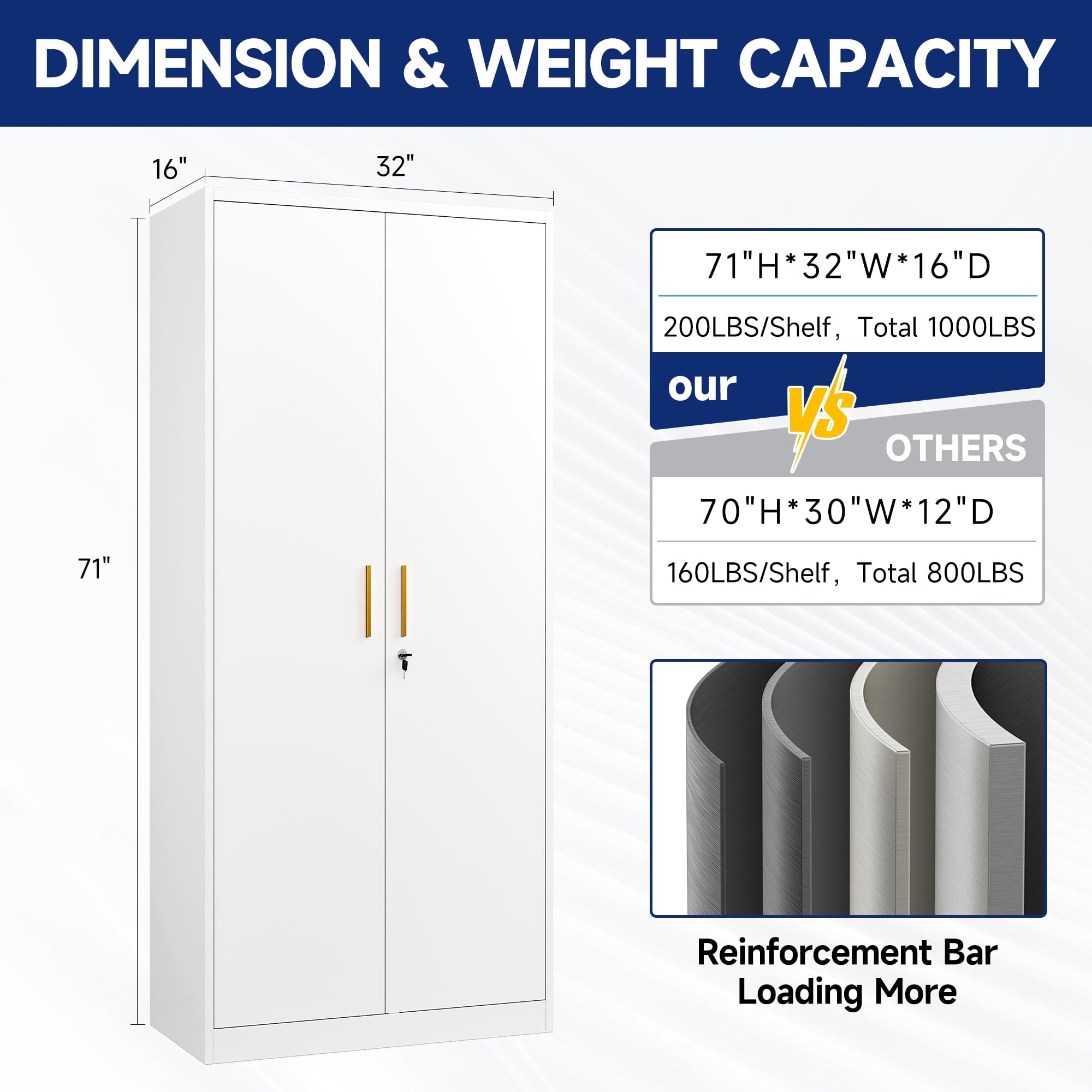 • 【High Space Utilization Rate】The height of the locker is 71 inches, which can meet the storage needs of a large number of items. Its vertical design makes full use of the space height and is particularly suitable for use in places with limited space. Whether placed in a corner, corridor or office corner, it can effectively improve space utilization.