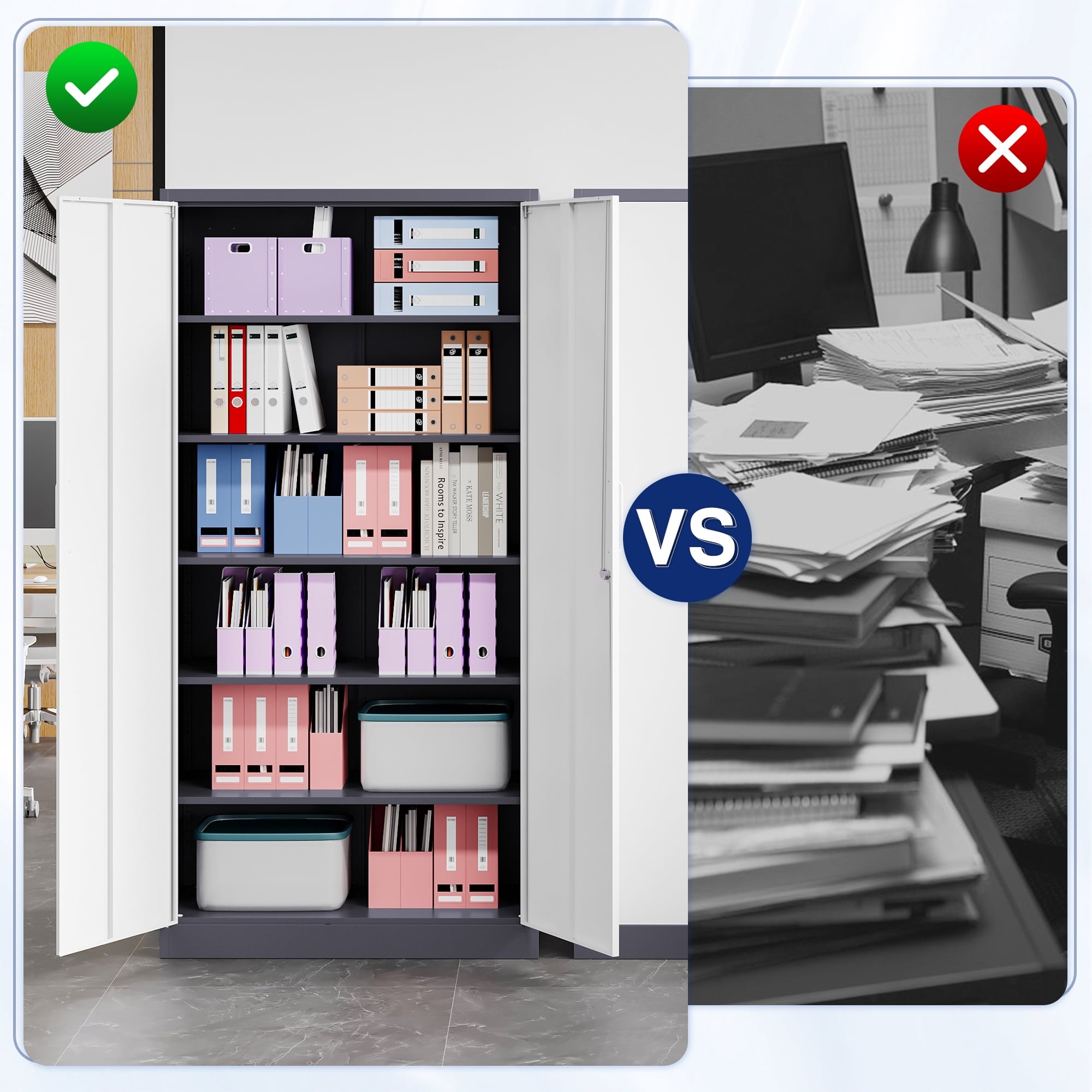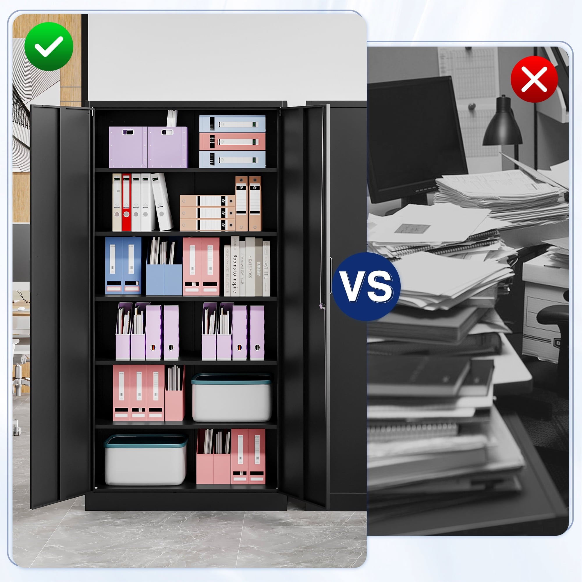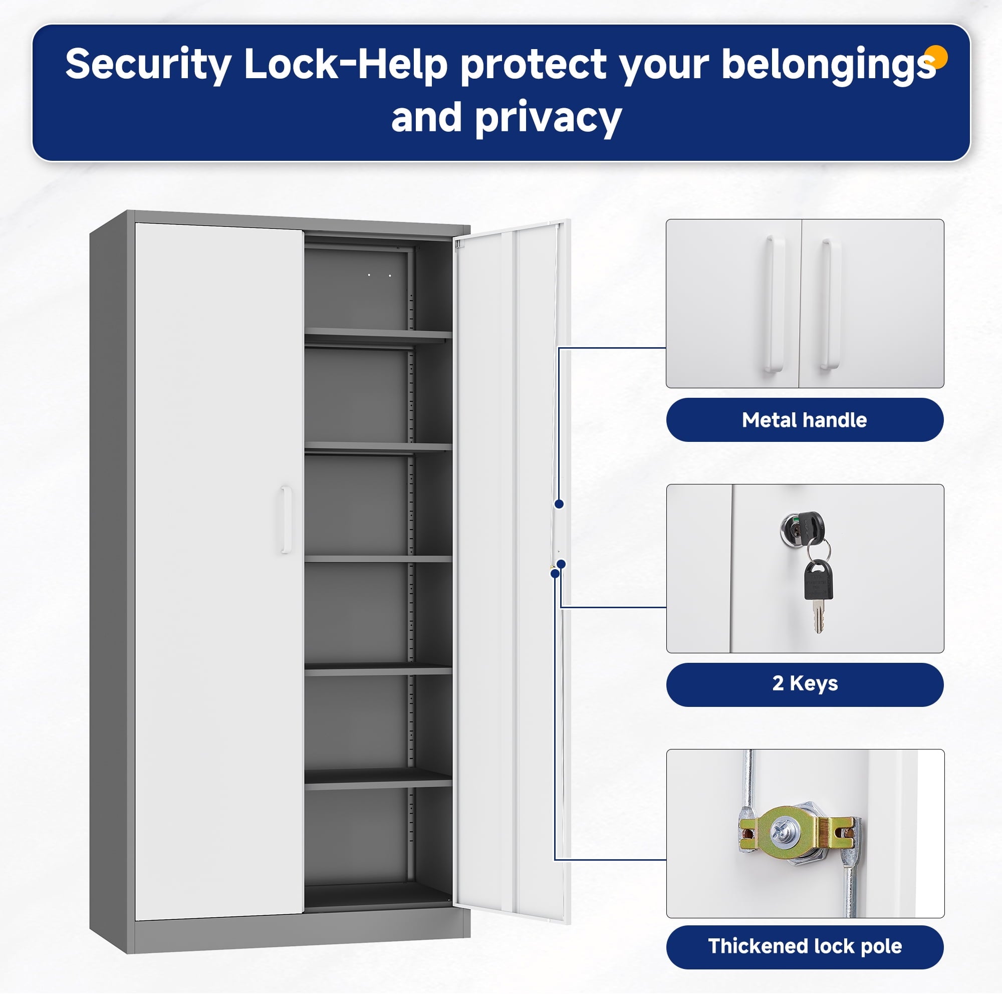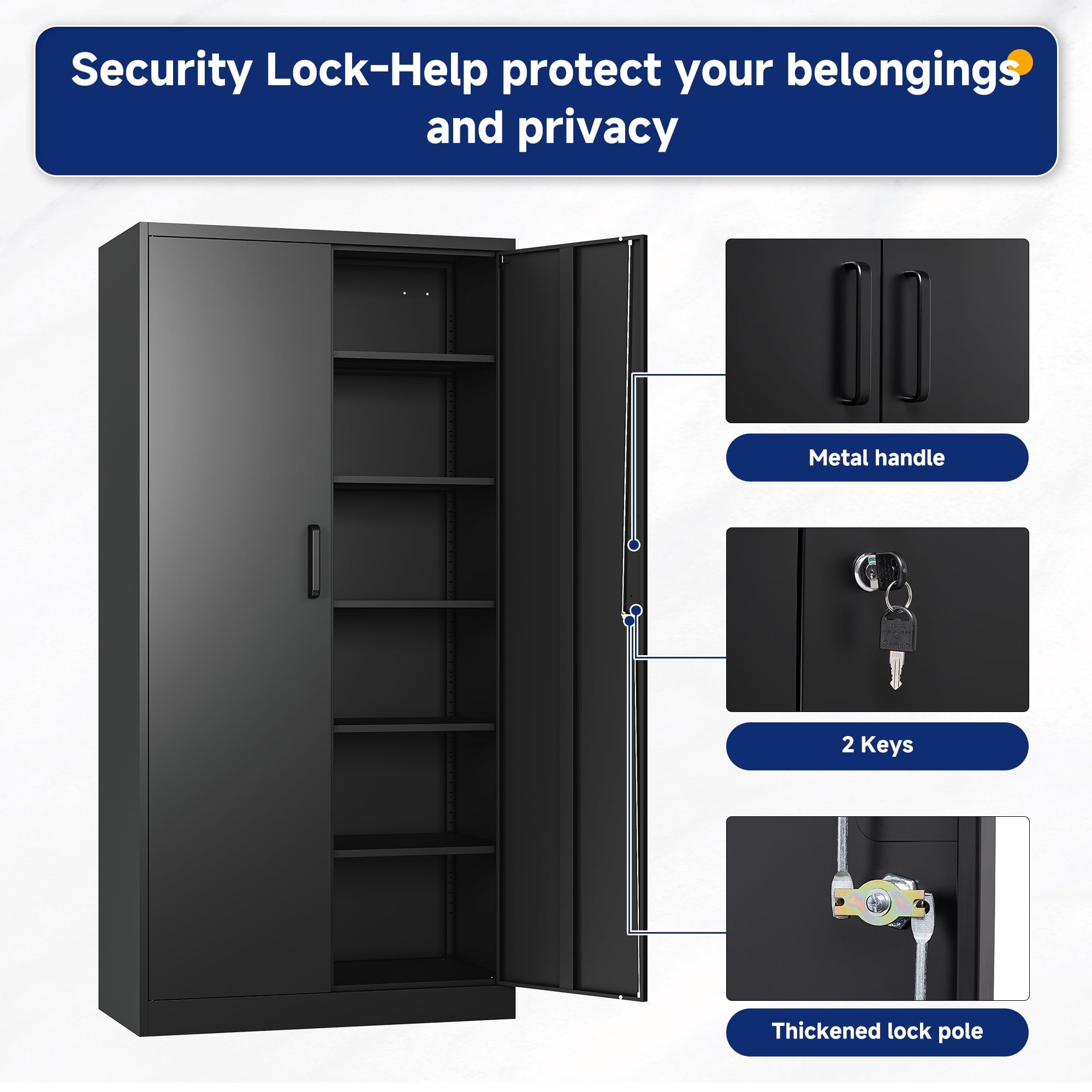 • 【Security Locks Ensure Privacy】The cabinet door is equipped with a reliable locking system to ensure the safe storage of your items. 2 keys are included with the cabinet. Whether used for home storage or office document storage, this storage cabinet can provide you with reliable privacy protection.