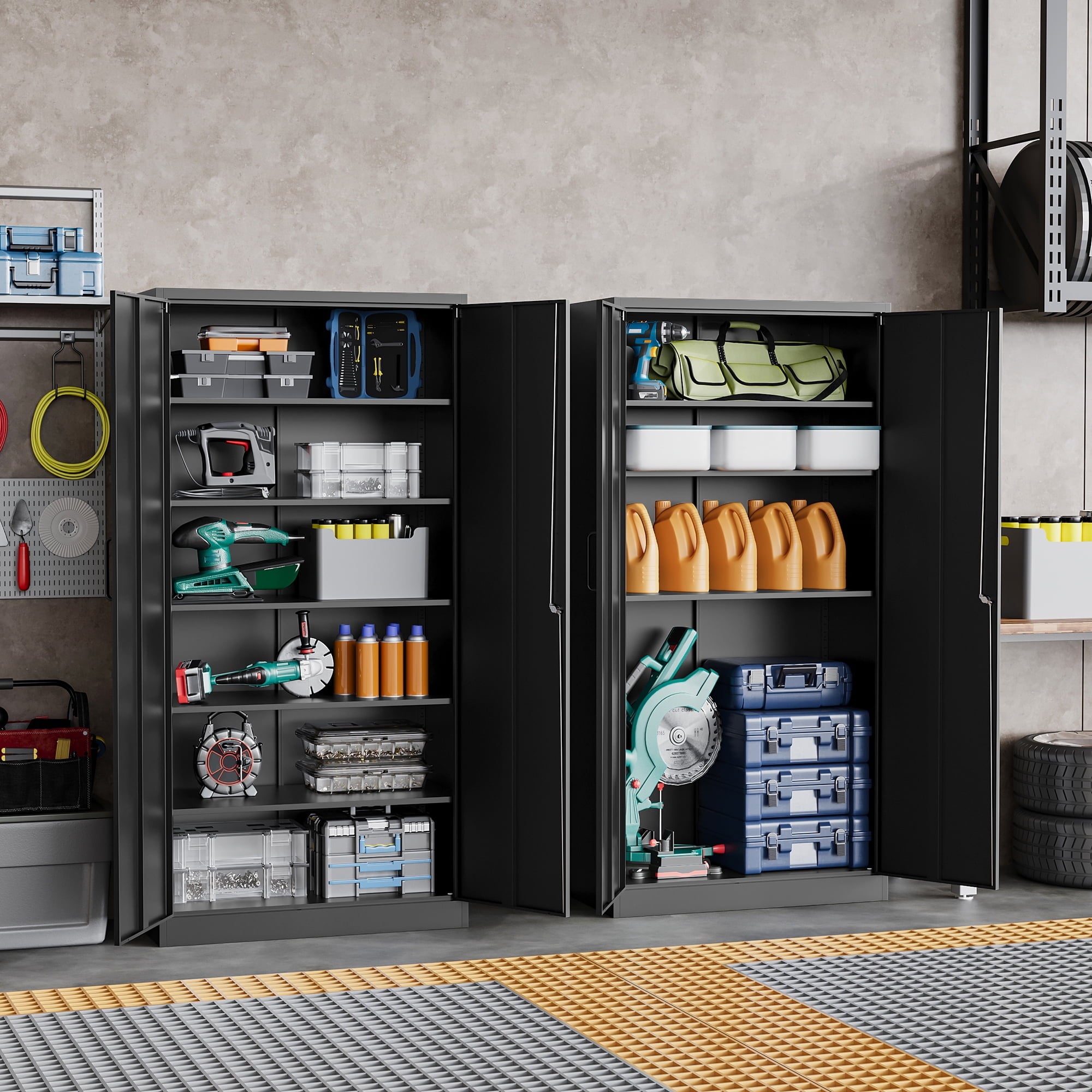 Home Garage Cabinets AUHUP 71″ Metal Cabinet with Locking Doors and 5 Adjustable Shelves, Black Garage Storage Cabinet for Warehouse, Basement, Home Office, Tool File Storage Utility Cabinets
