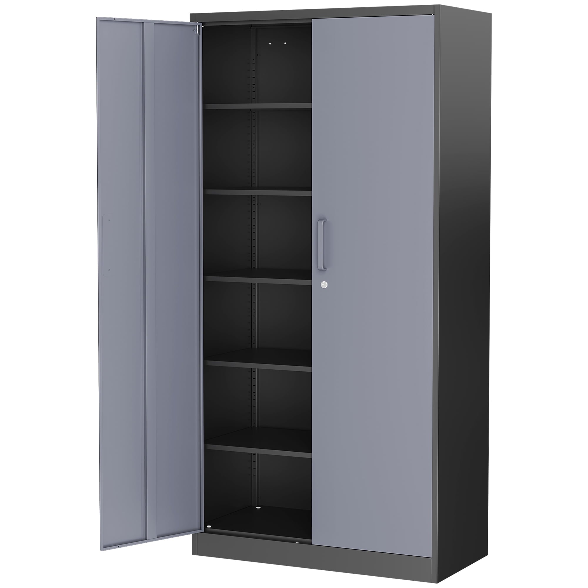 AUHUP 71" Metal Cabinet with Locking Doors and 5 Adjustable Shelves, Black Garage Storage Cabinet for Warehouse, Basement, Home Office, Tool File Storage Utility Cabinets