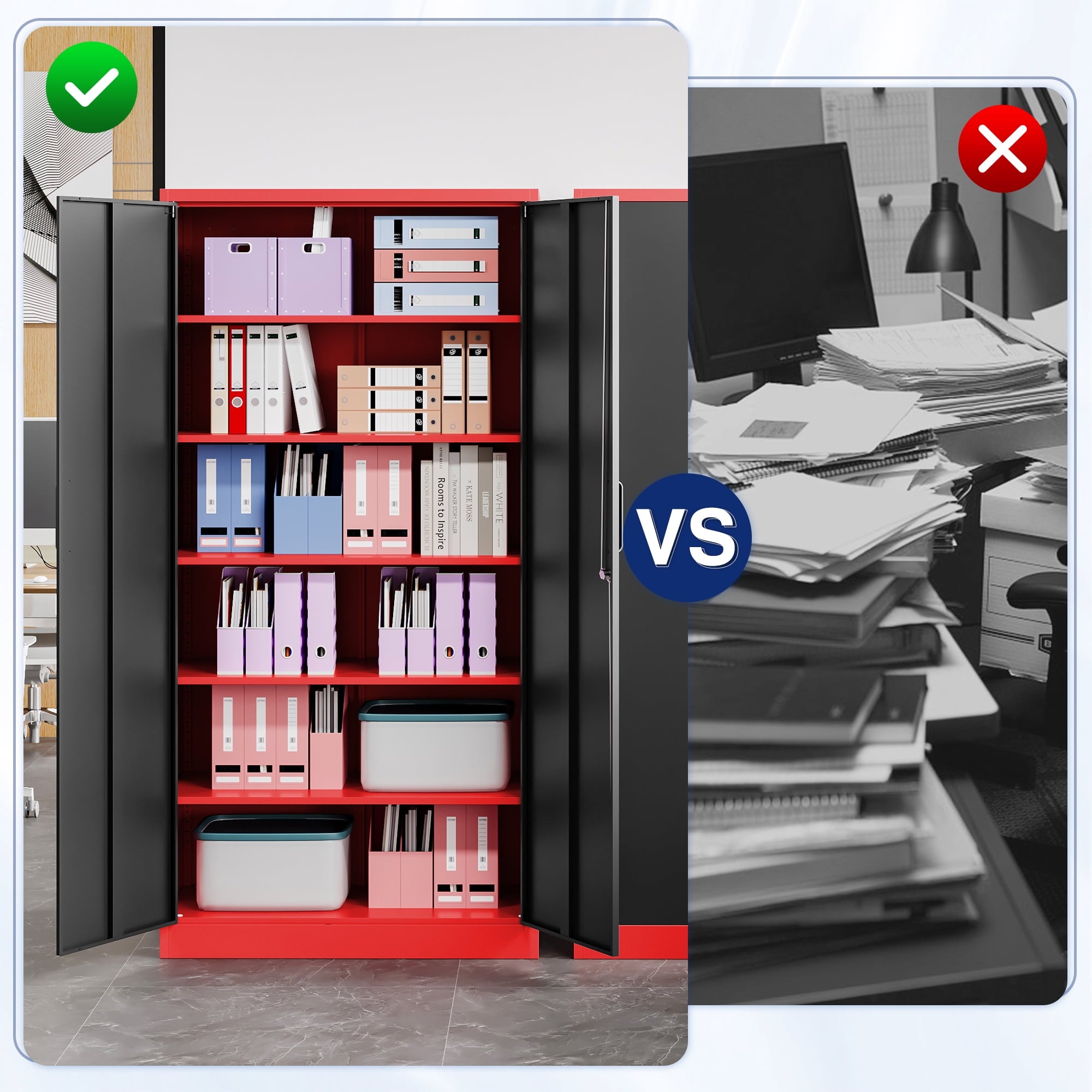 • 【Security Locks Ensure Privacy】The cabinet door is equipped with a reliable locking system to ensure the safe storage of your items. 2 keys are included with the cabinet. Whether used for home storage or office document storage, this storage cabinet can provide you with reliable privacy protection.