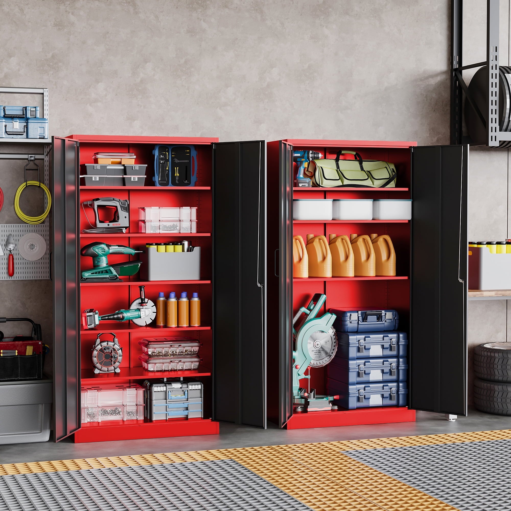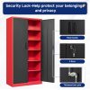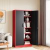 Home Garage Cabinets AUHUP 71″ Metal Cabinet with Locking Doors and 5 Adjustable Shelves, Red Black Garage Storage Cabinet for Warehouse, Basement, Home Office, Tool File Storage Utility Cabinets
