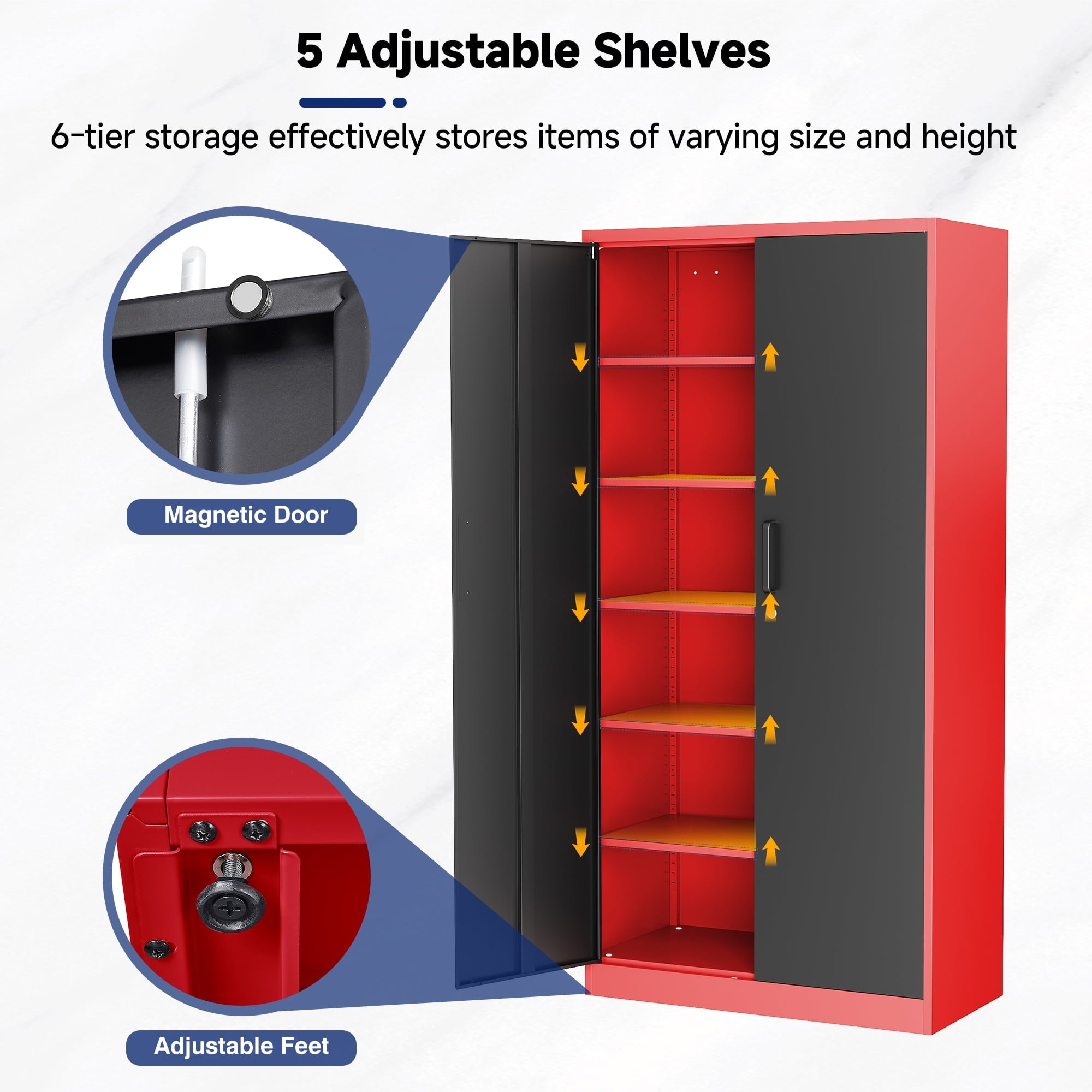 AUHUP 71" Metal Cabinet with Locking Doors and 5 Adjustable Shelves, Red Black Garage Storage Cabinet for Warehouse, Basement, Home Office, Tool File Storage Utility Cabinets