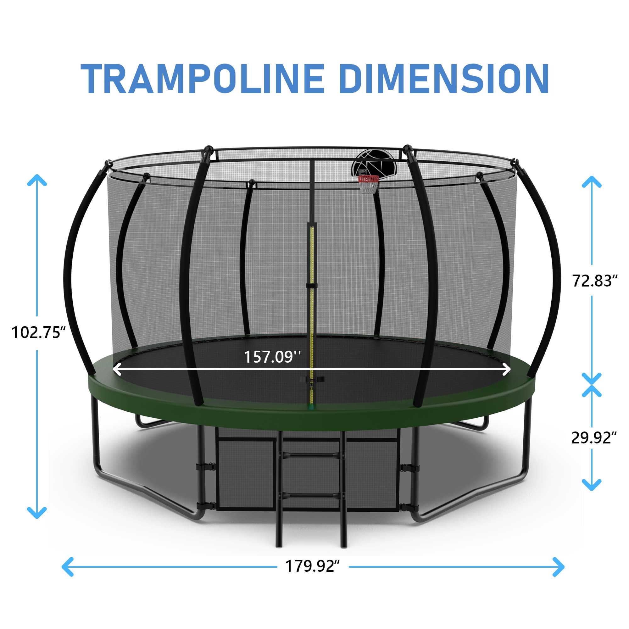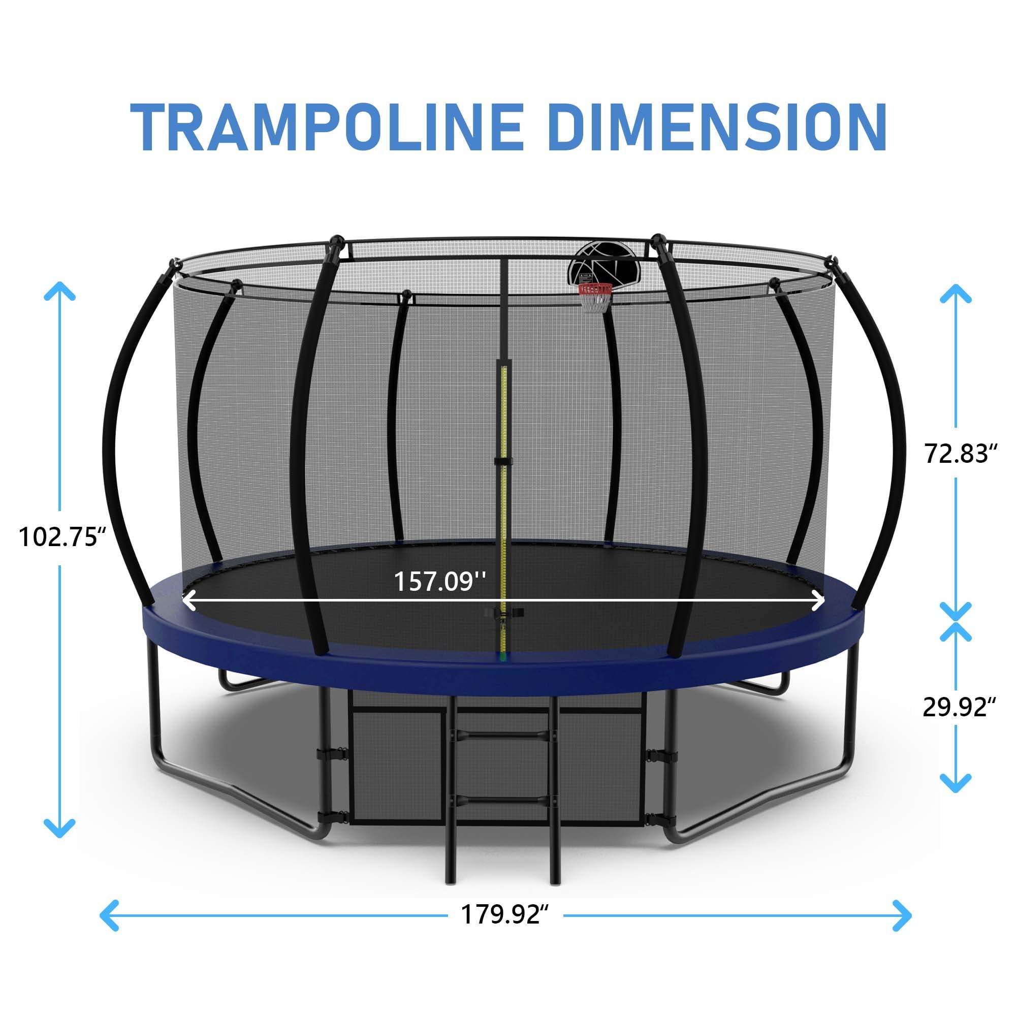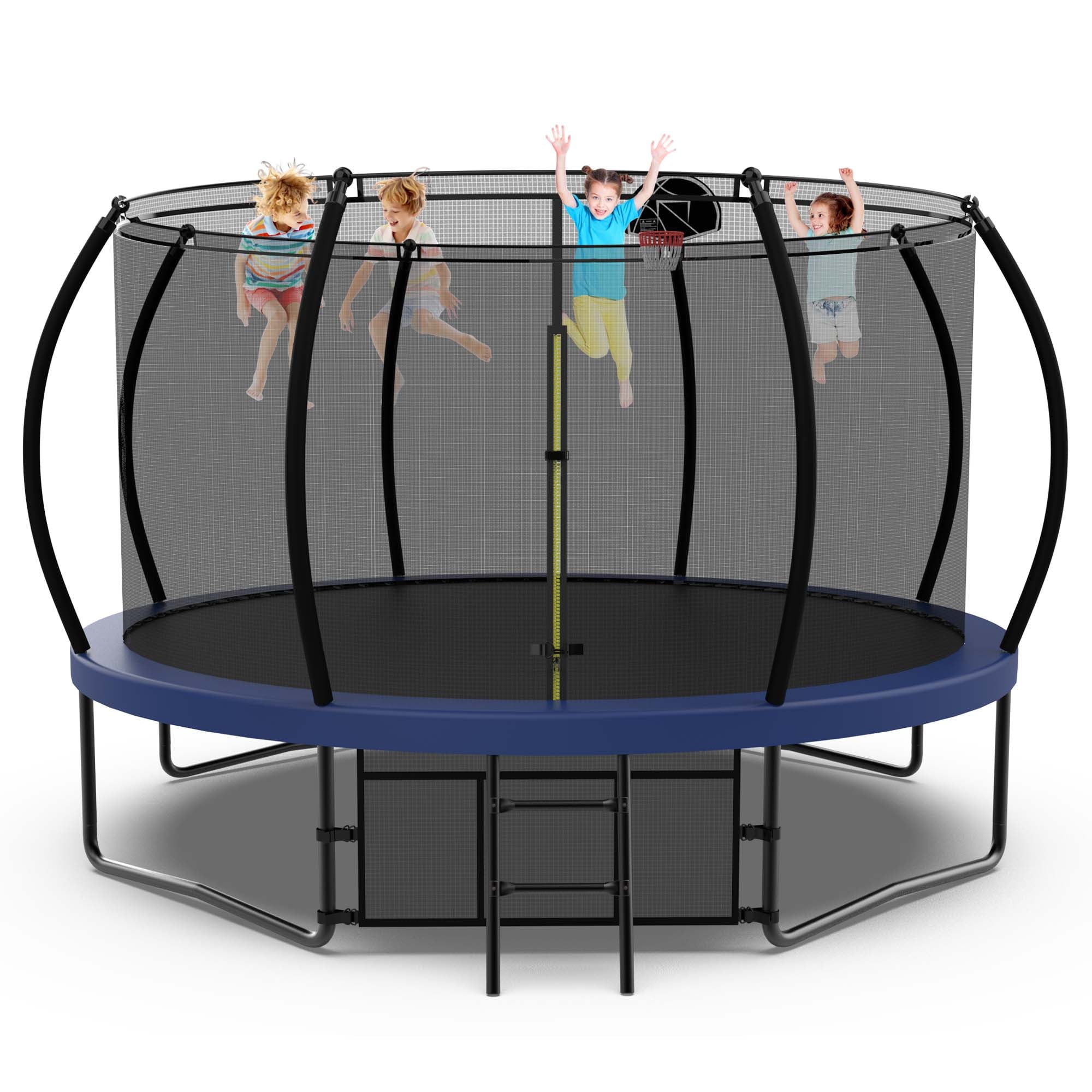 TRAMPOLINES WITH BASKETBALL HOOP – Jumping becomes even more entertaining with an included basketball hoop, keeping your kids busy and active all day long. With our trampoline, it’s not just about jumping—it’s also about scoring!