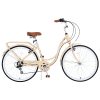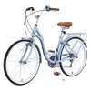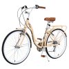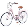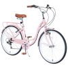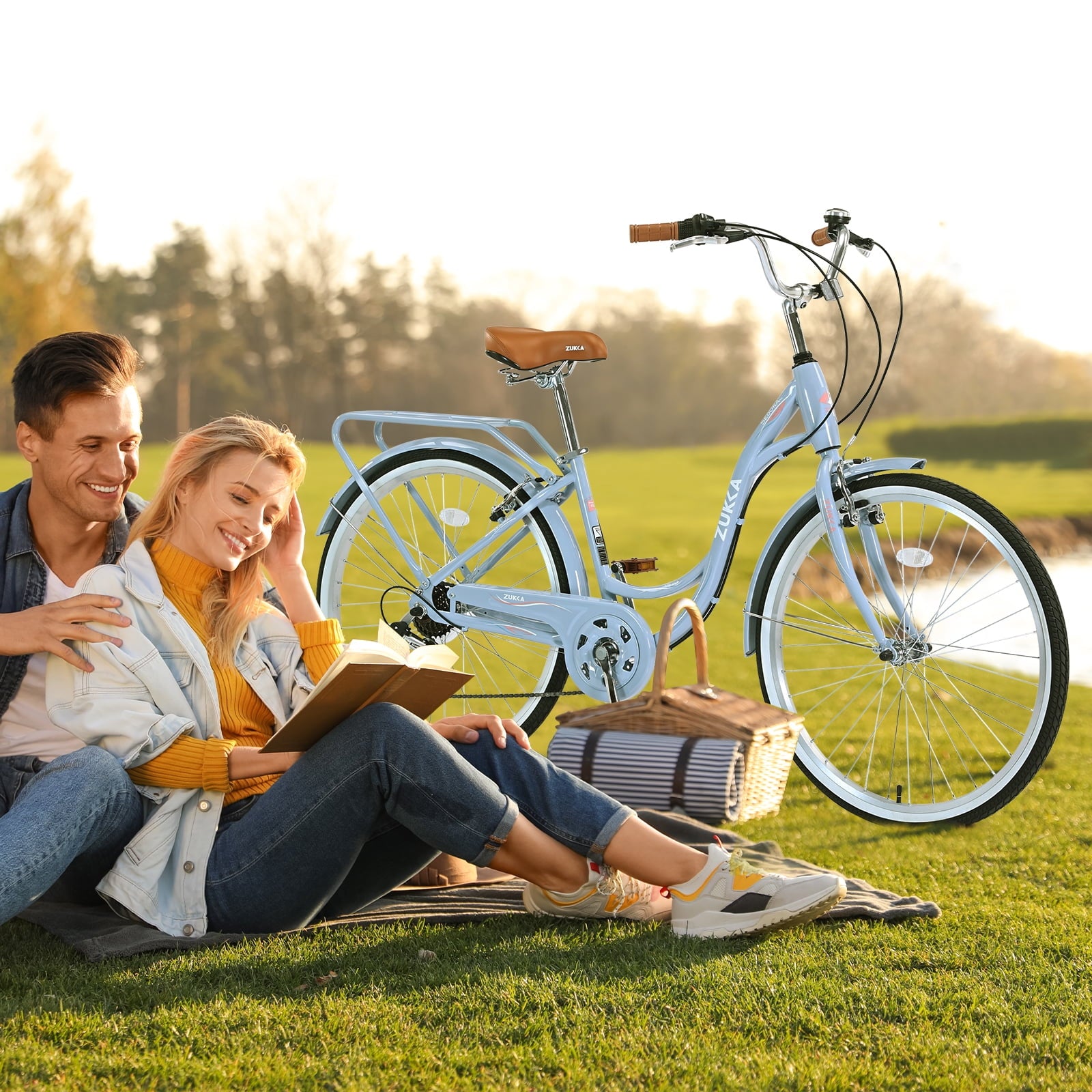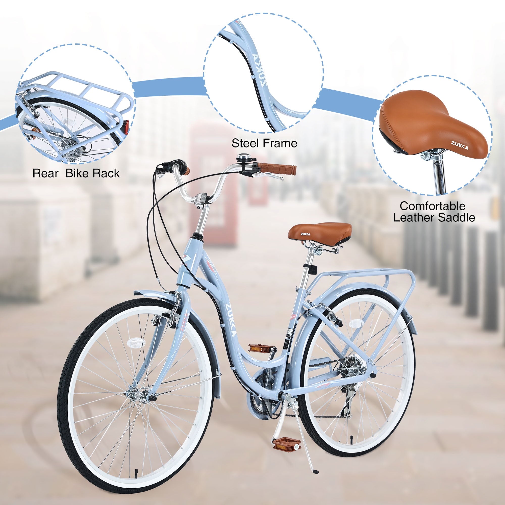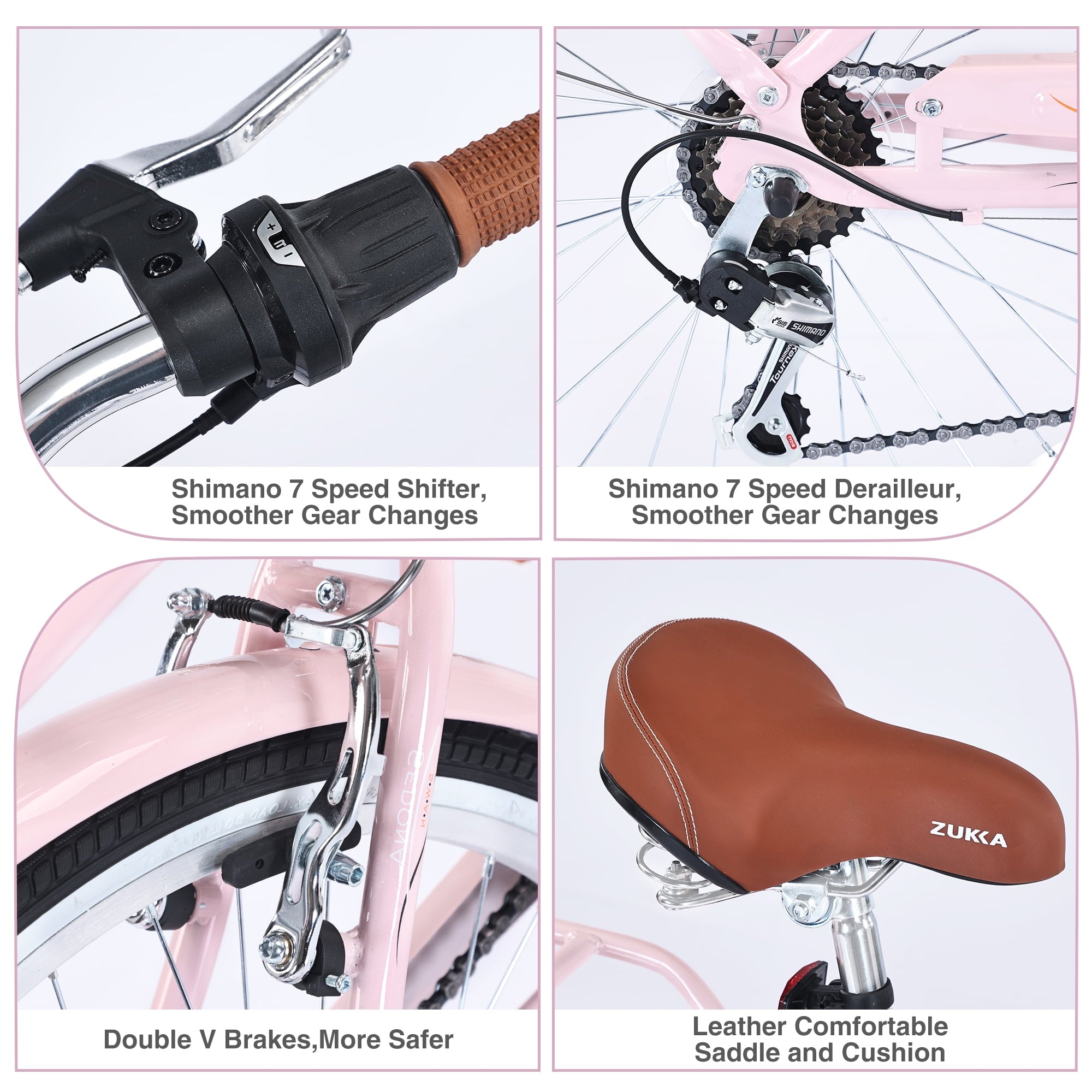 Experience the best of both worlds with our Aukfa 26″ Cruiser Bike, 7 Speed Bicycle Hybrid Bikes for Women Girls Ladies. Combining comfort and functionality, this bike is designed for female riders seeking a versatile and enjoyable cycling experience. With features from comfort and commuter bikes, it’s perfect for various terrains.Arriving 85% assembled, setup is a breeze. The Aukfa 7-speed shifter and derailleur offer options for leisurely rides or longer commutes. The 26-inch wheel size and low swooping frame provide easy entry and exit.Enjoy the city-style design, brown leather saddle, and comfortable grips. High-quality tires ensure a smooth ride. V brakes offer responsive, secure braking.Empower your cycling journey with our Bicycle Hybrid Bike for Women. Ideal for commuting, leisure, and exploration, it’s the perfect blend of style and performance for women, girls, and ladies.