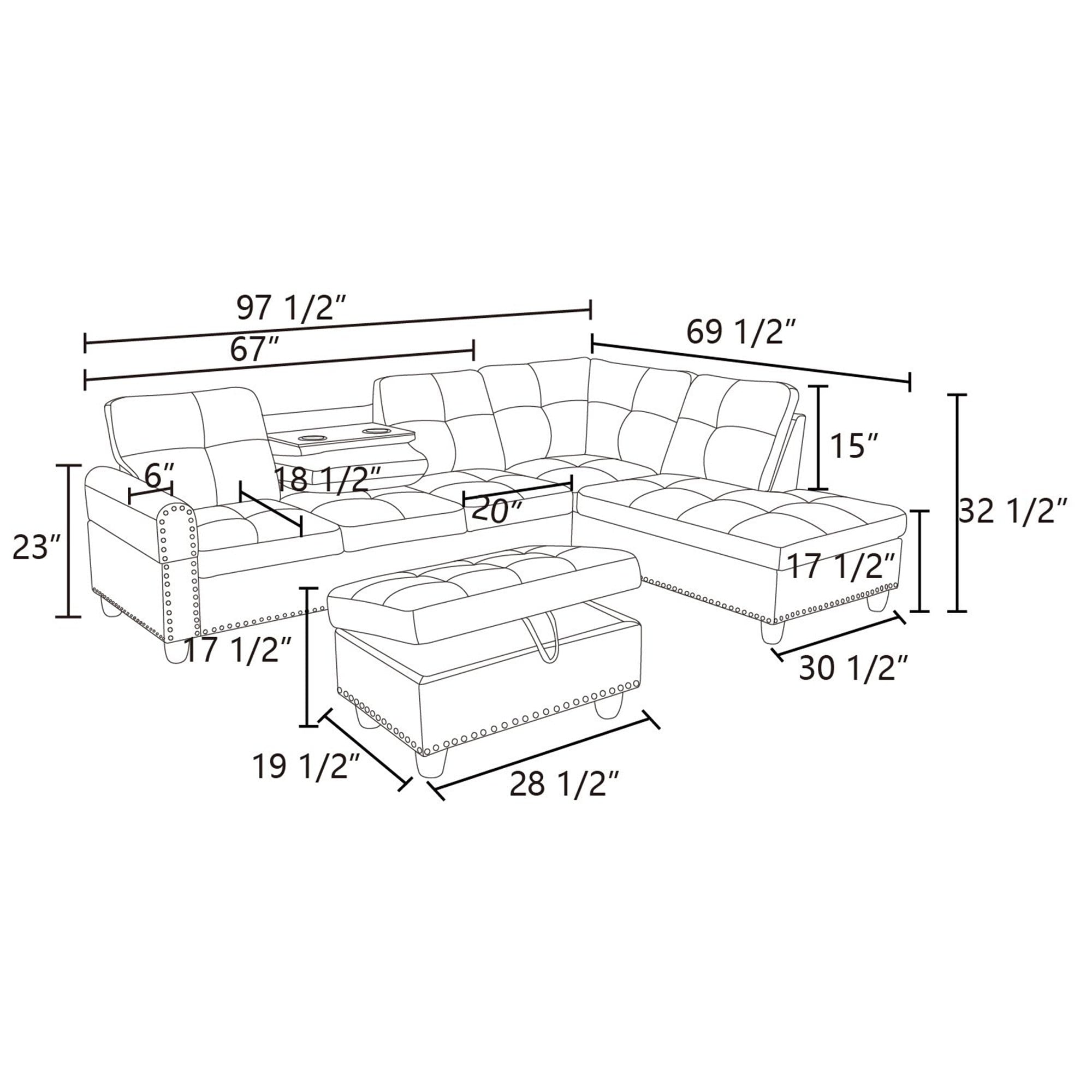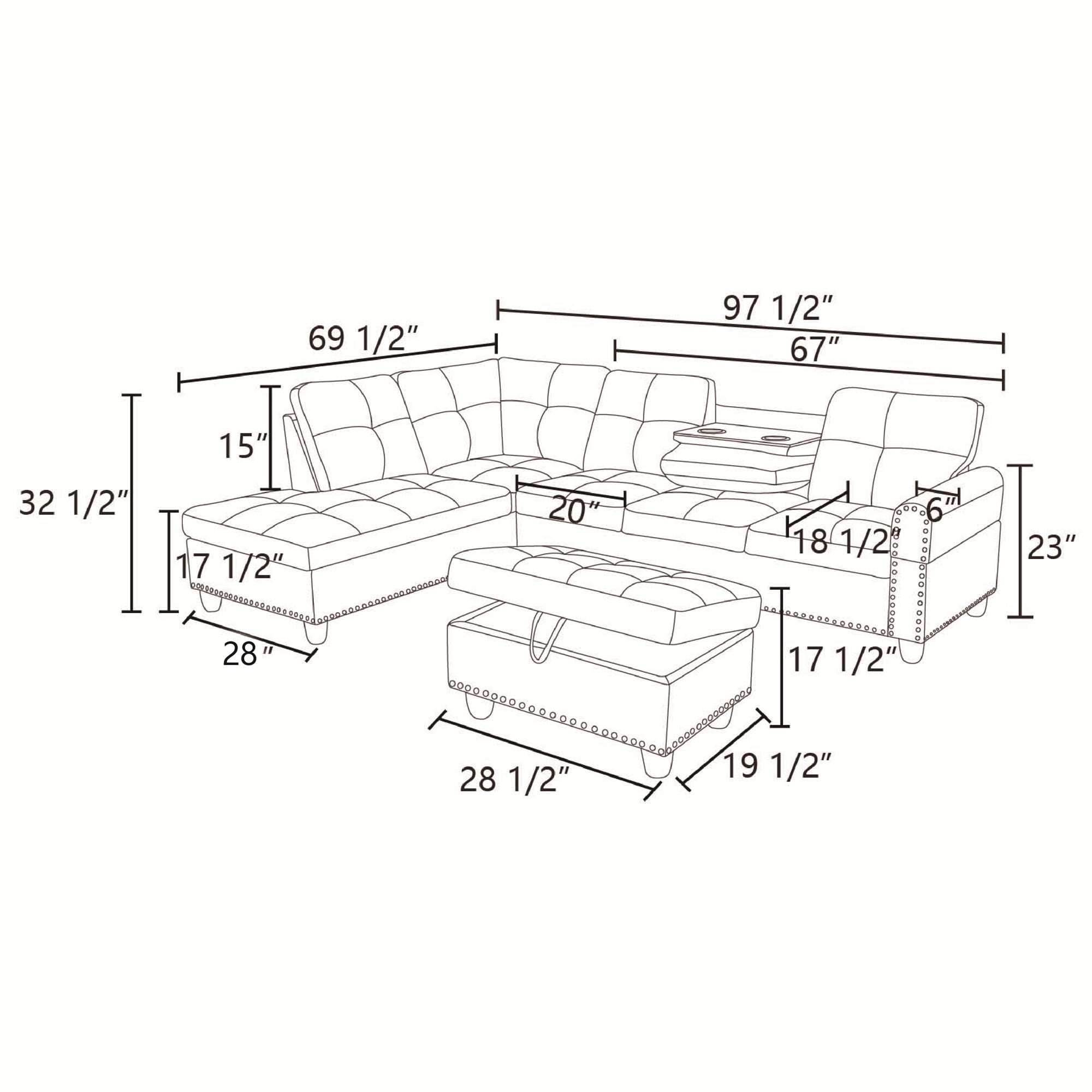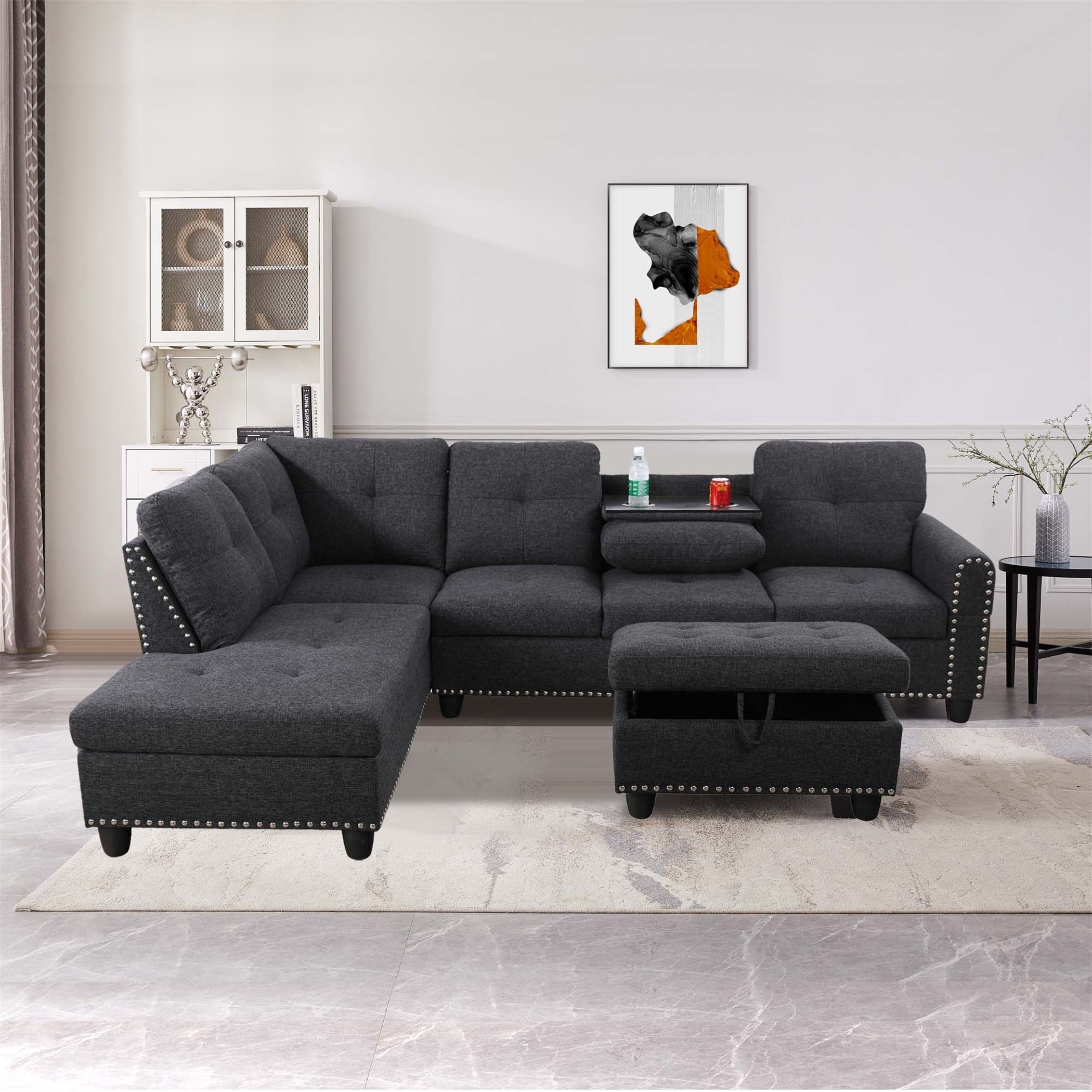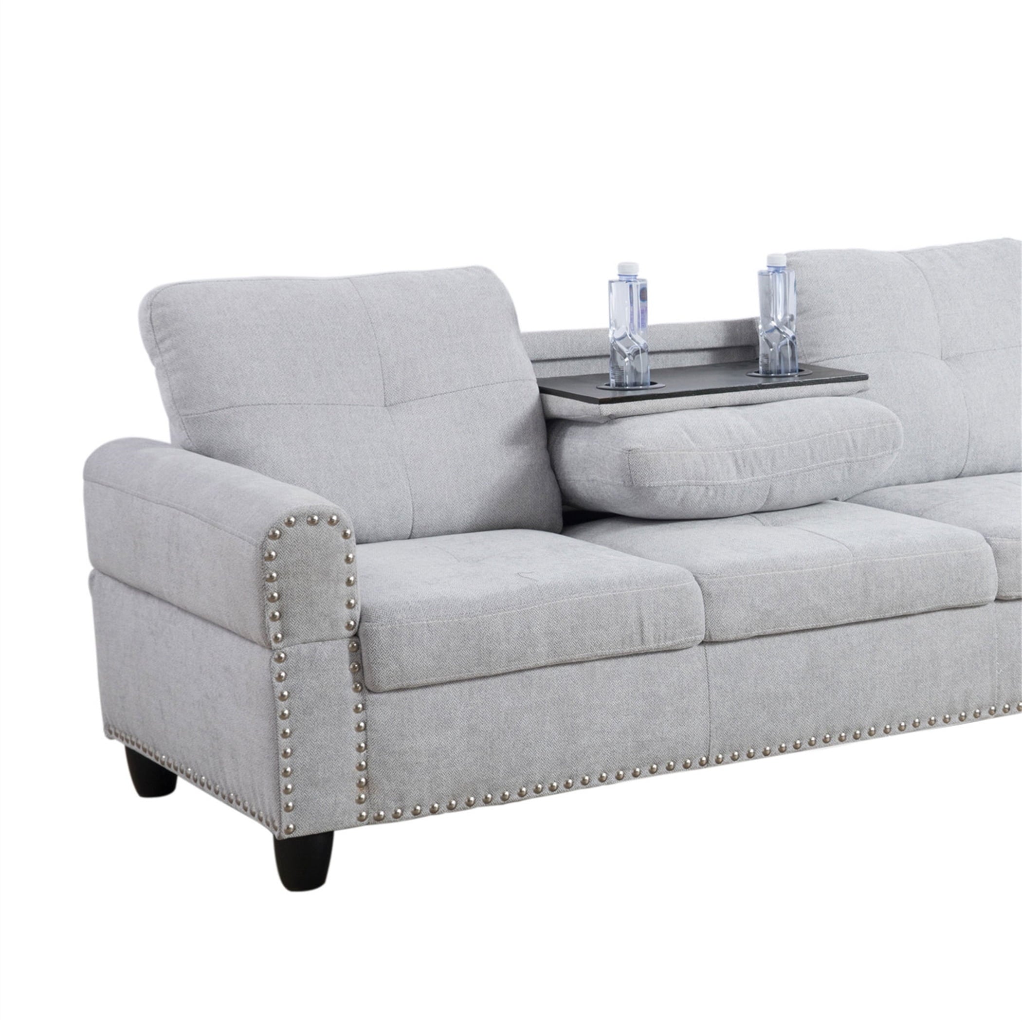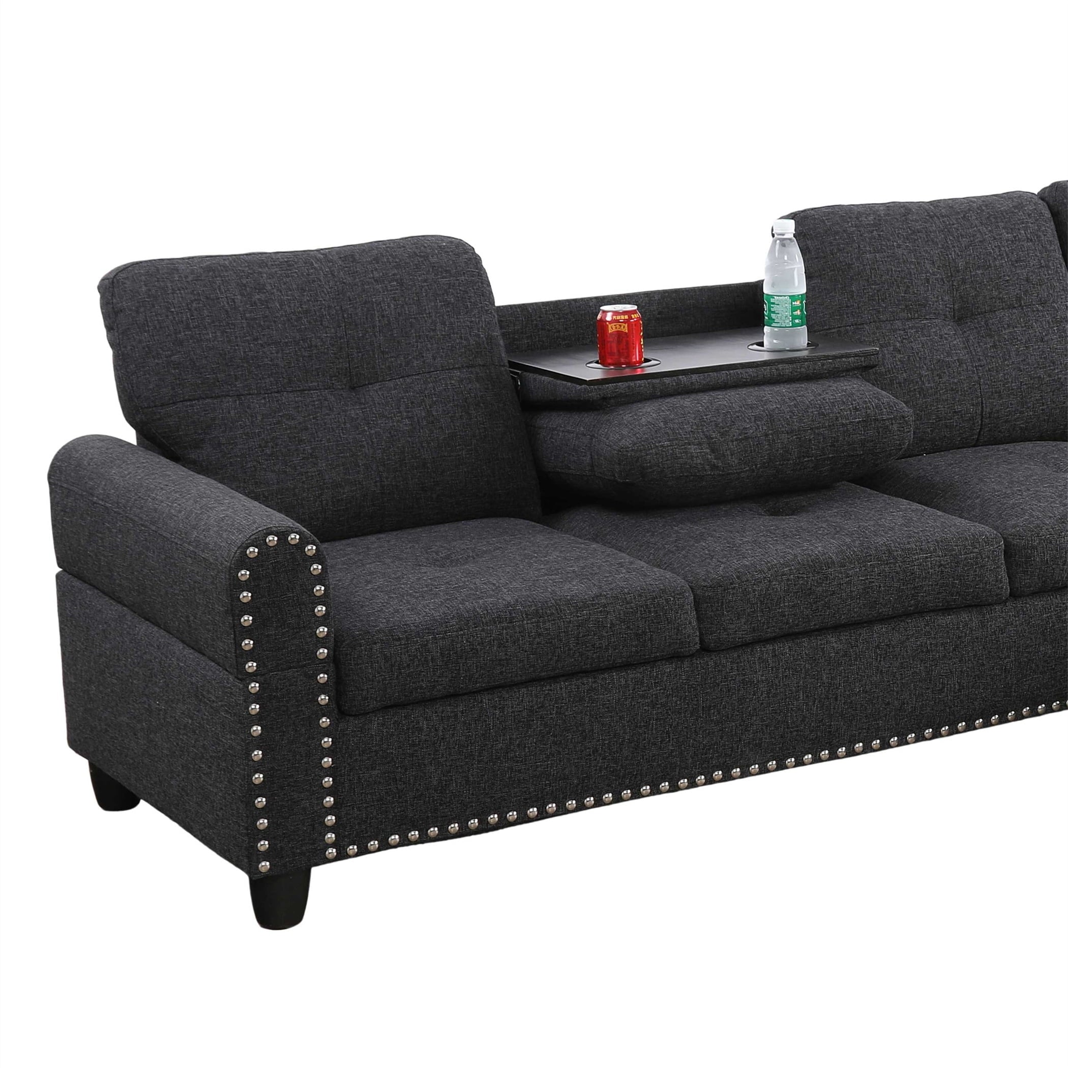want to keep within easy reach. this sectional sofa is equipped with two built-in cup holders, strategically placed within arm’s reach. Now you can enjoy your favorite beverages while lounging without the worry of spills or accidents. the nailhead