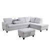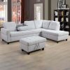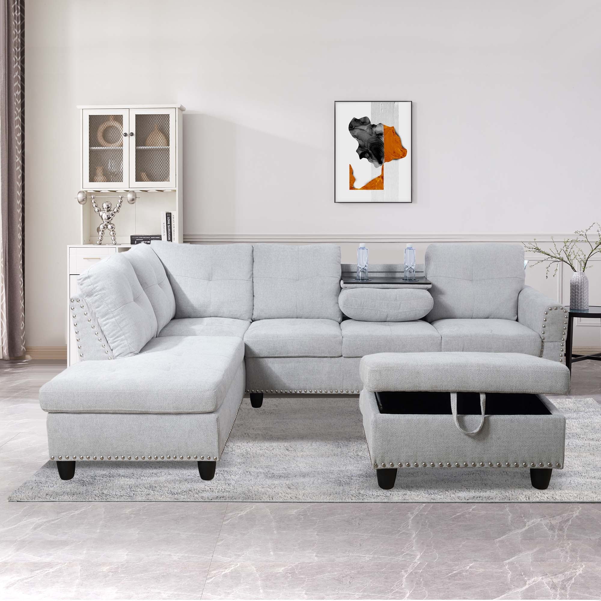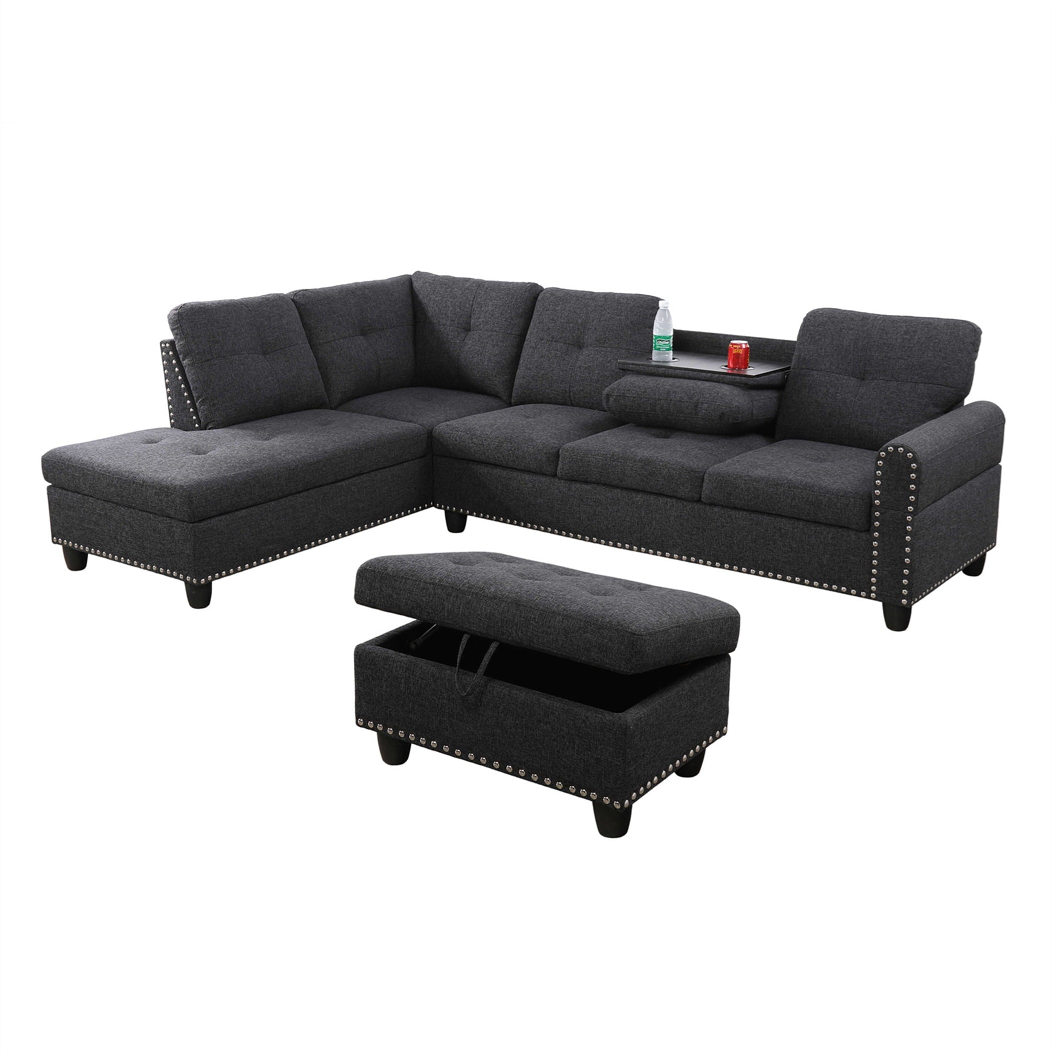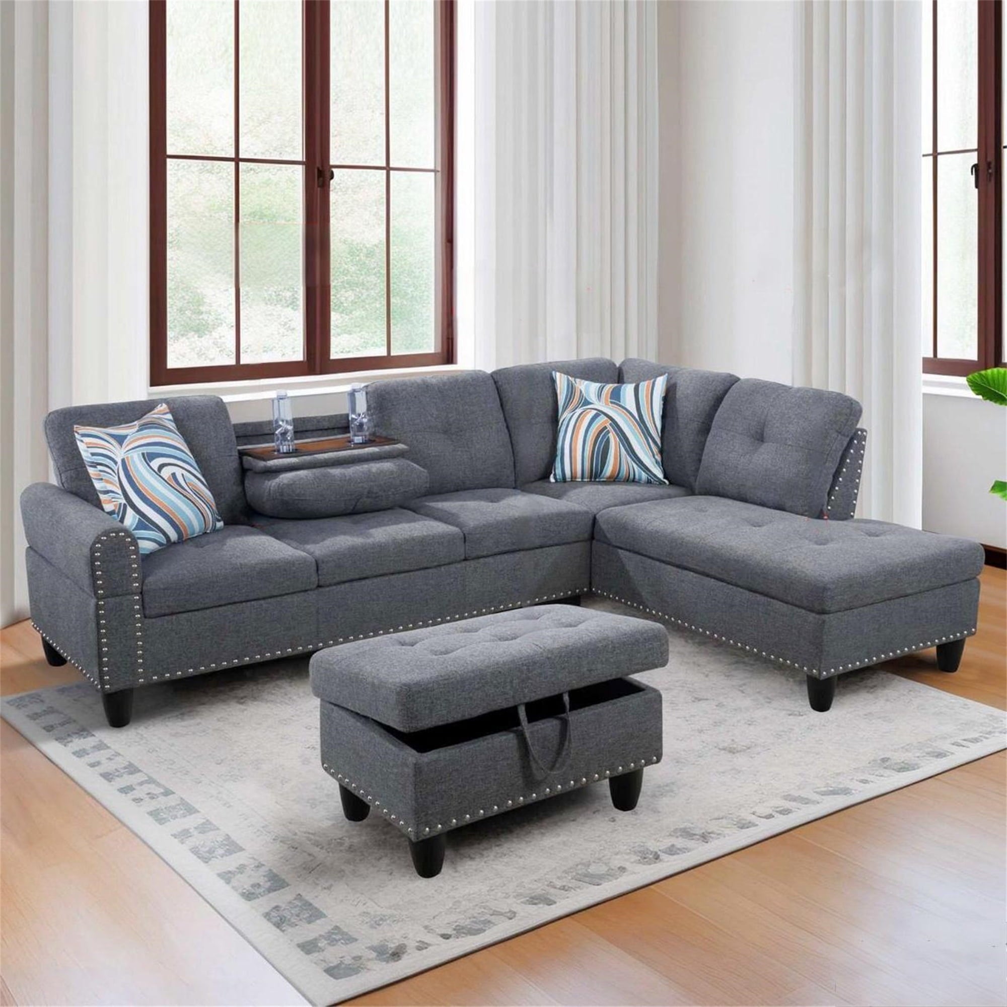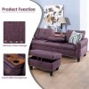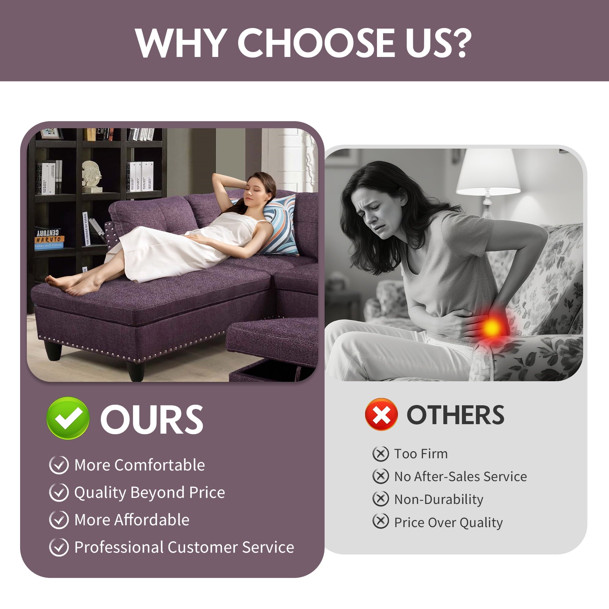 Aukfa 3 Piece Sectional Sofa, Living Room Couch with Storage Ottoman&Cup Holder, Linen, Right Hand, Purple