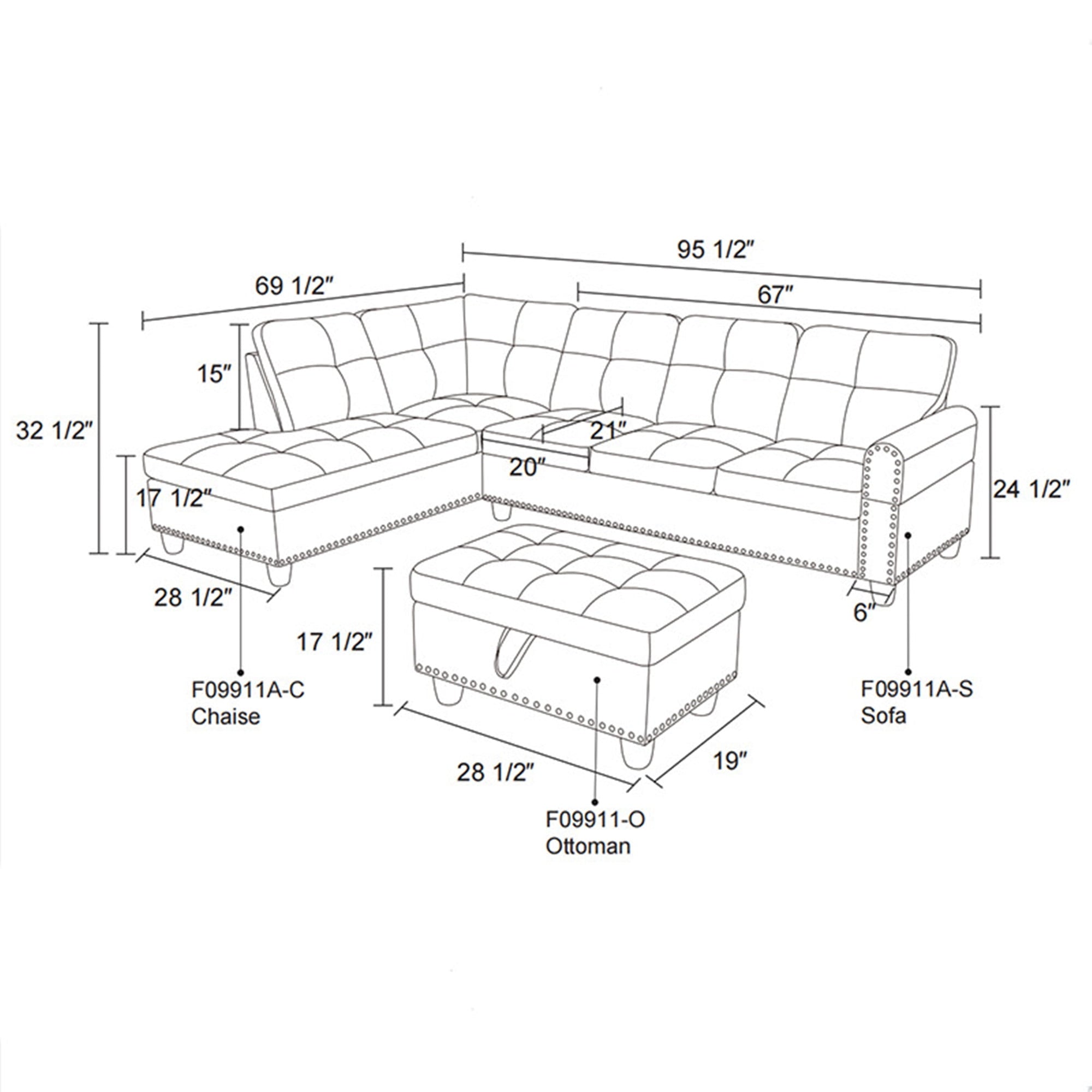The Aukfa AK-FS03-028 3-piece sectional sofa with storage ottoman is a perfect blend of style and comfort! crafted with the finest materials and meticulous attention to detail, this sectional sofa boasts a sleek and modern design that effortlessly complements any interior