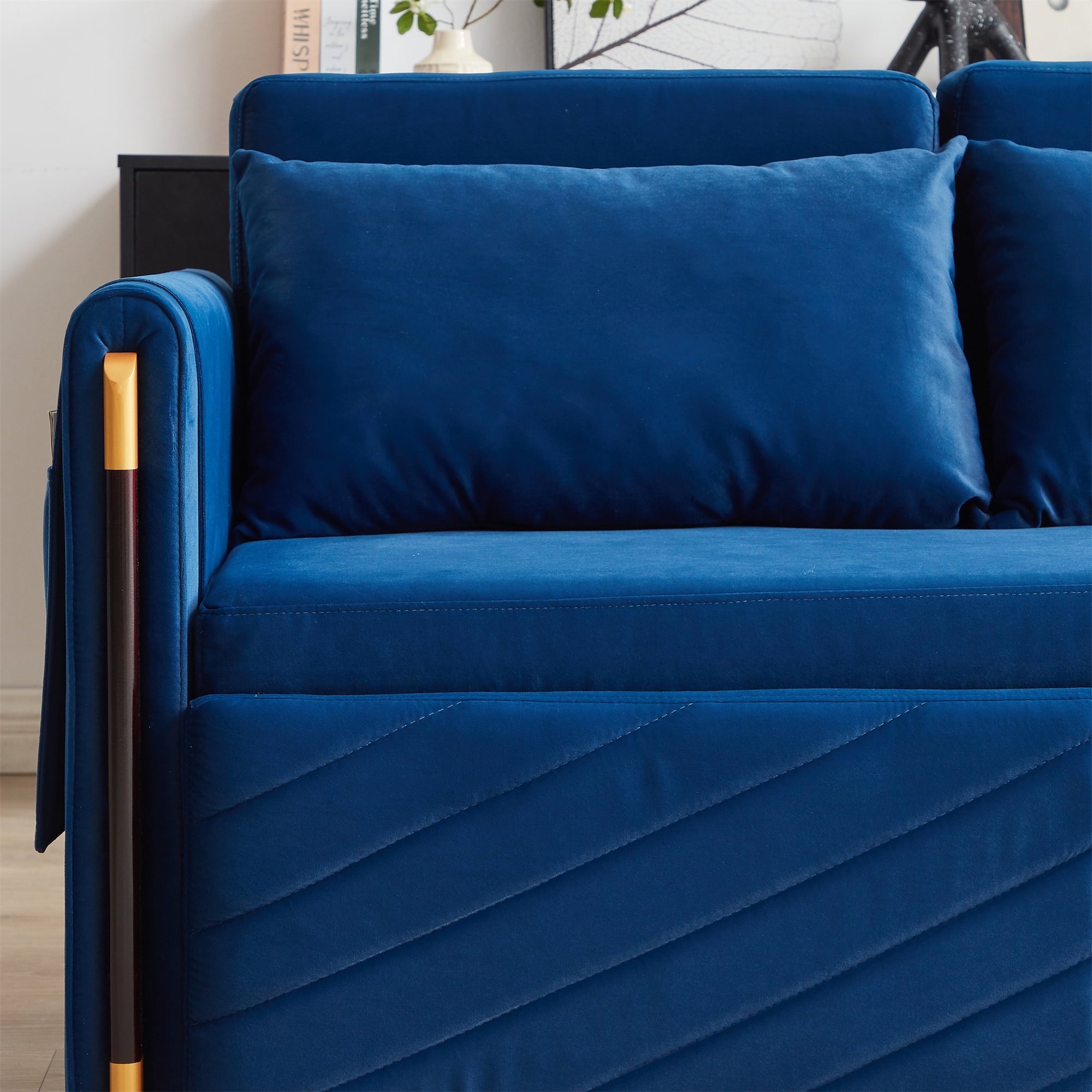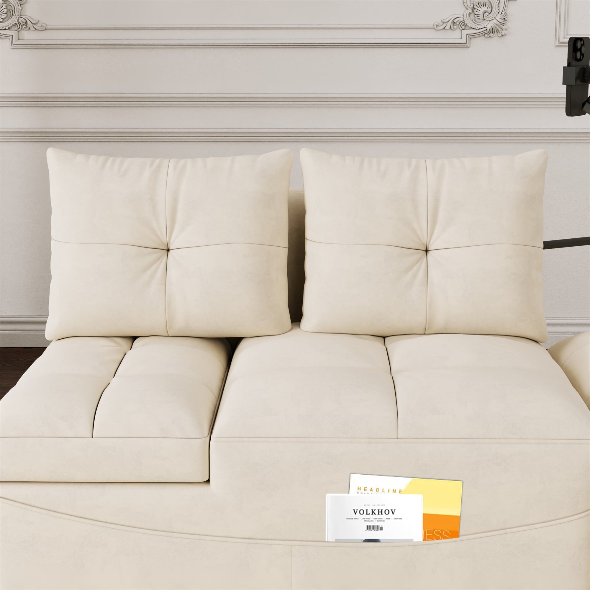 your space in any way you want. upholstered in breathable velvet fabric that’s both stylish and easy to care for. The two cozy back pillows provide optimal support and relaxation, making it an ideal spot for lounging, reading, or enjoying