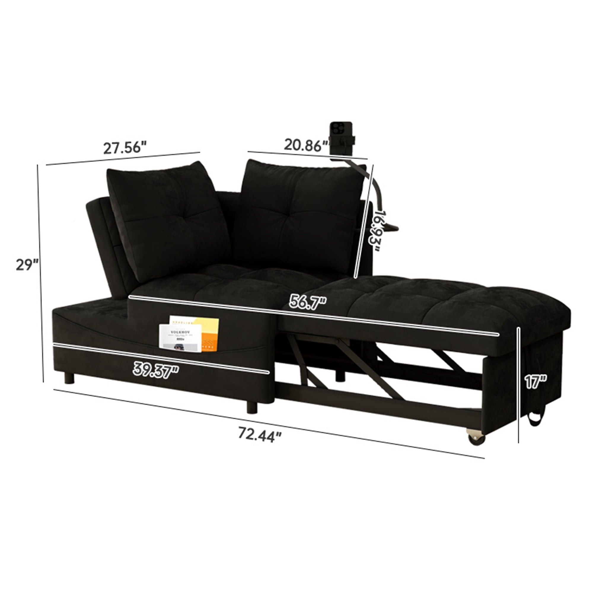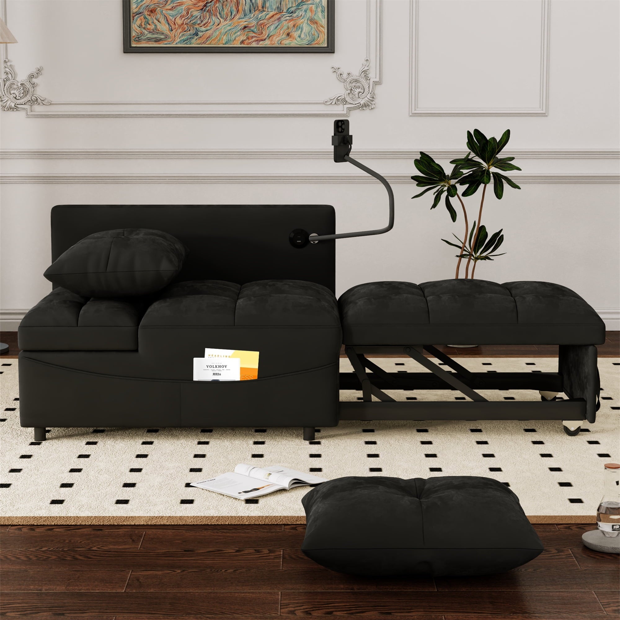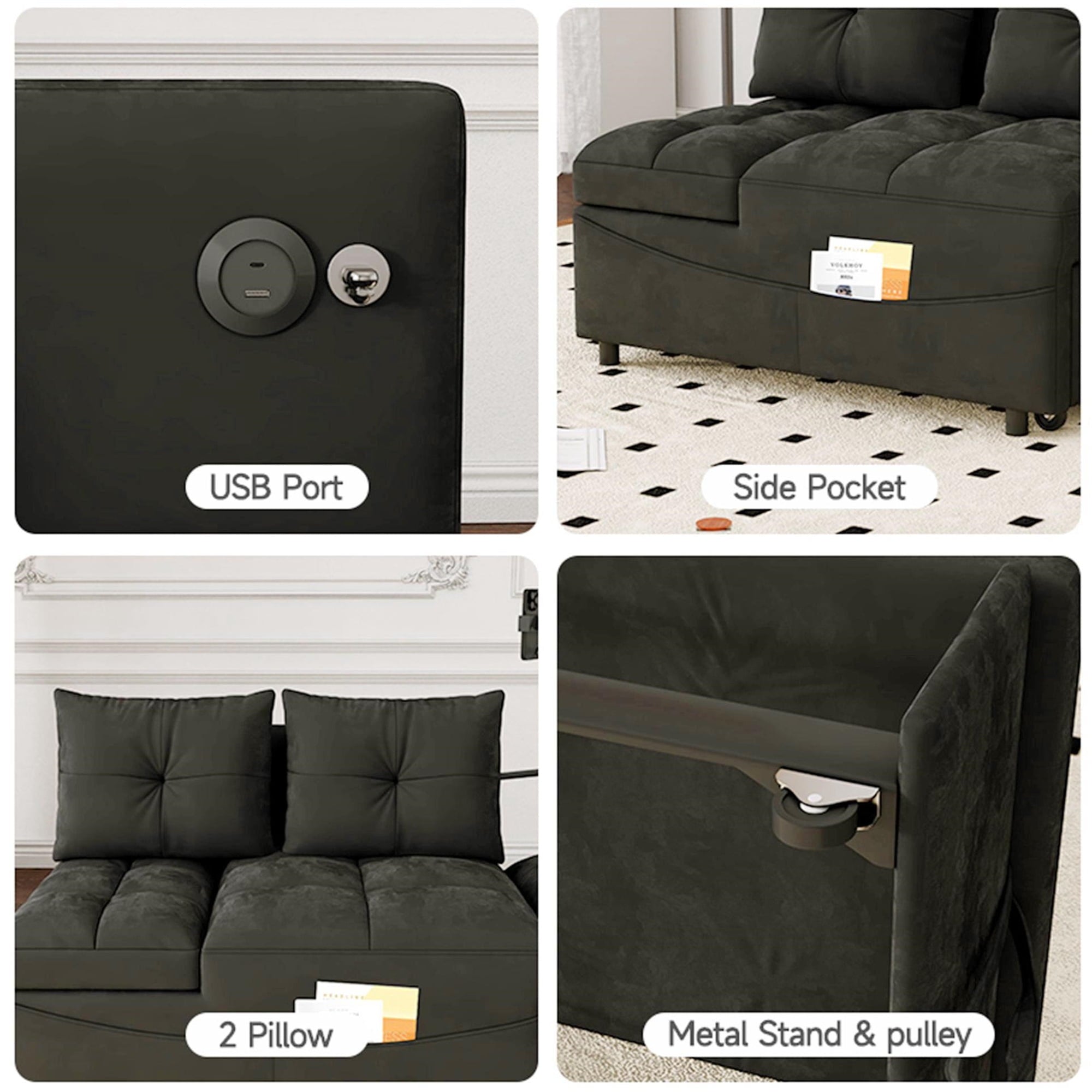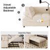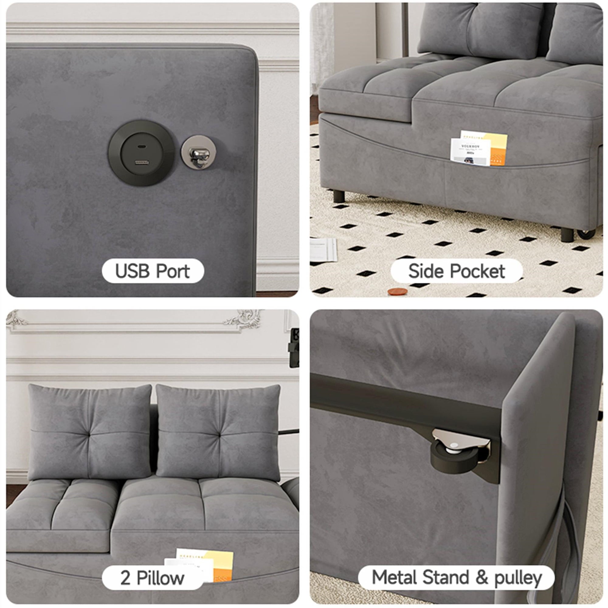 - 2 USB CHARGE & PILLOWS – This chaise sofa bed is equipped with 2 integrated USB ports for convenient device charging. Comes with two throw pillows, paired with high-elasticity foam and high-gauge pocket springs. Delivers exceptional lumbar support, keeping you relaxed whether sitting for hours or lying down.