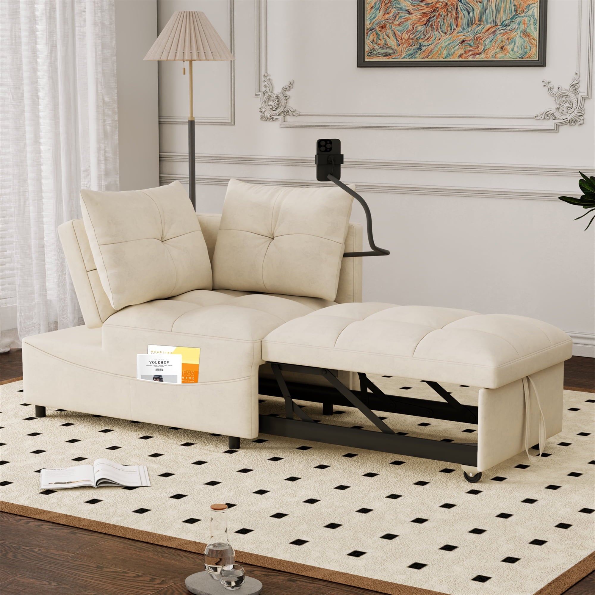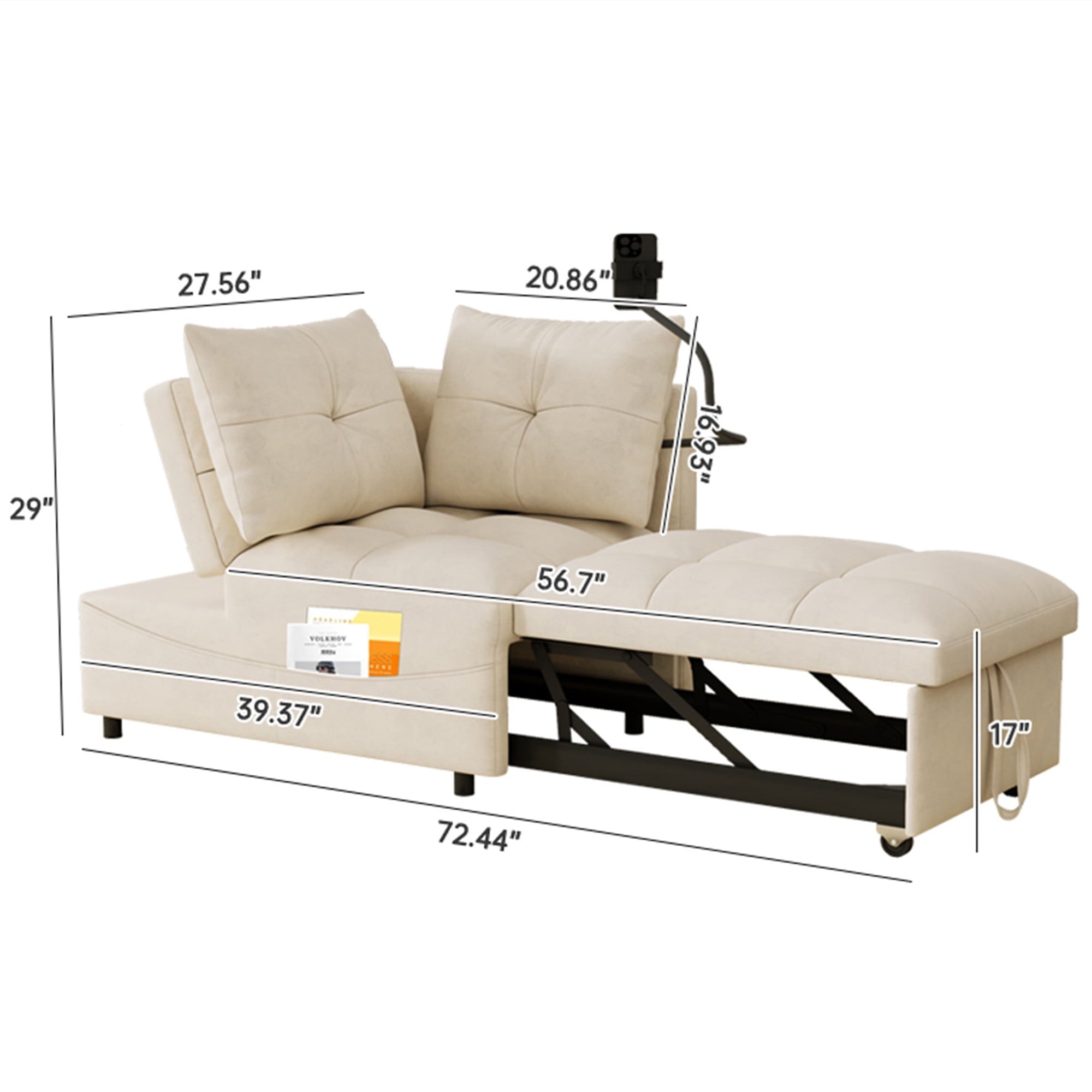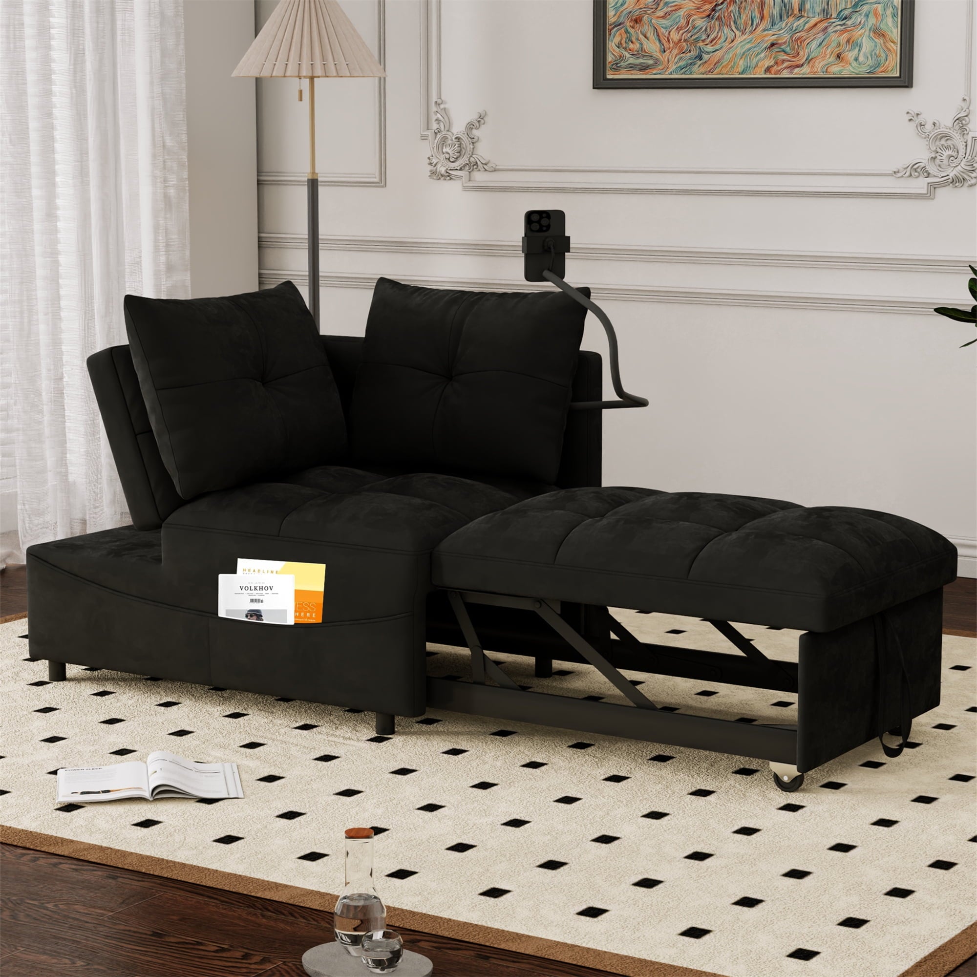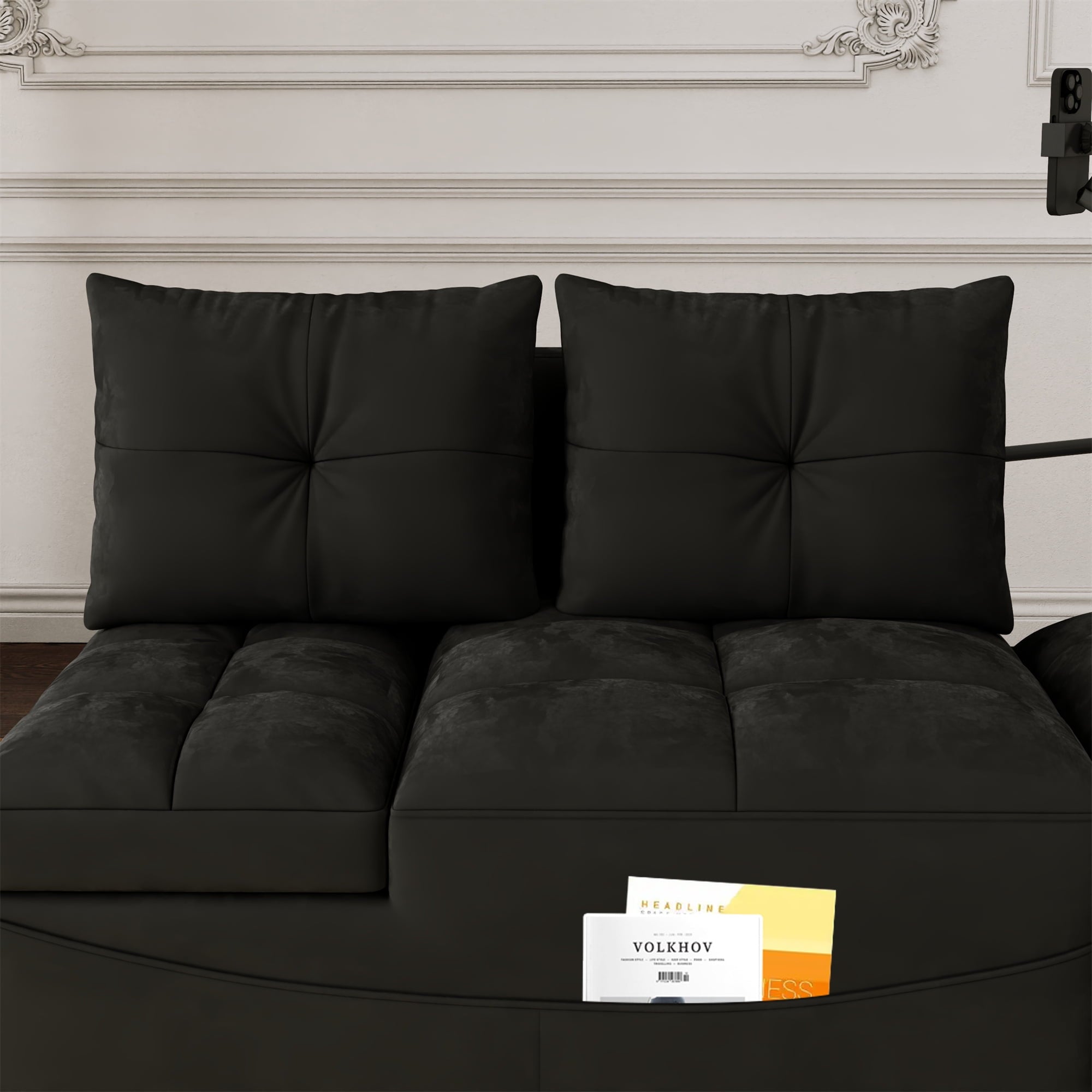 - 2 USB CHARGE & PILLOWS – This chaise sofa bed is equipped with 2 integrated USB ports for convenient device charging. Comes with two throw pillows, paired with high-elasticity foam and high-gauge pocket springs. Delivers exceptional lumbar support, keeping you relaxed whether sitting for hours or lying down.