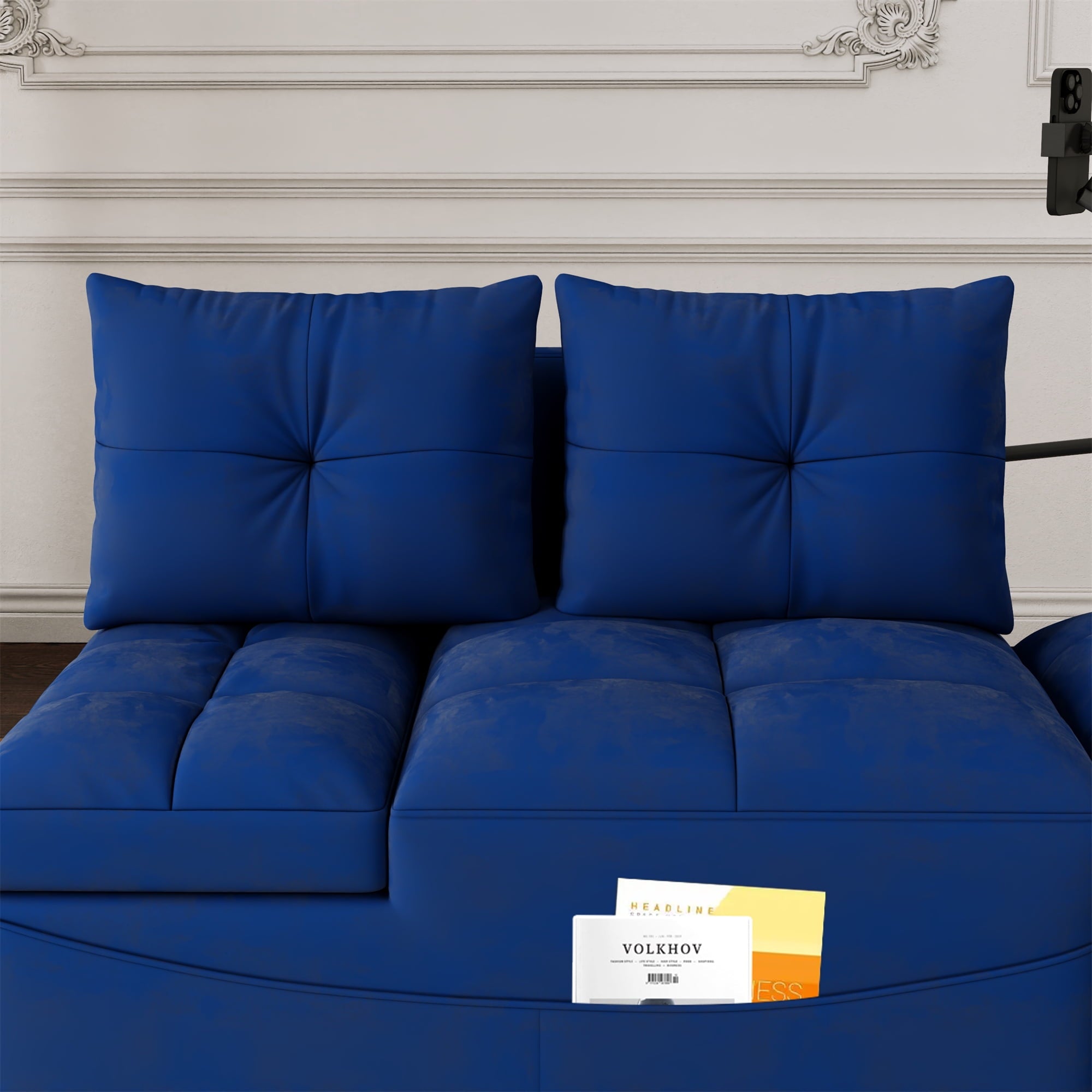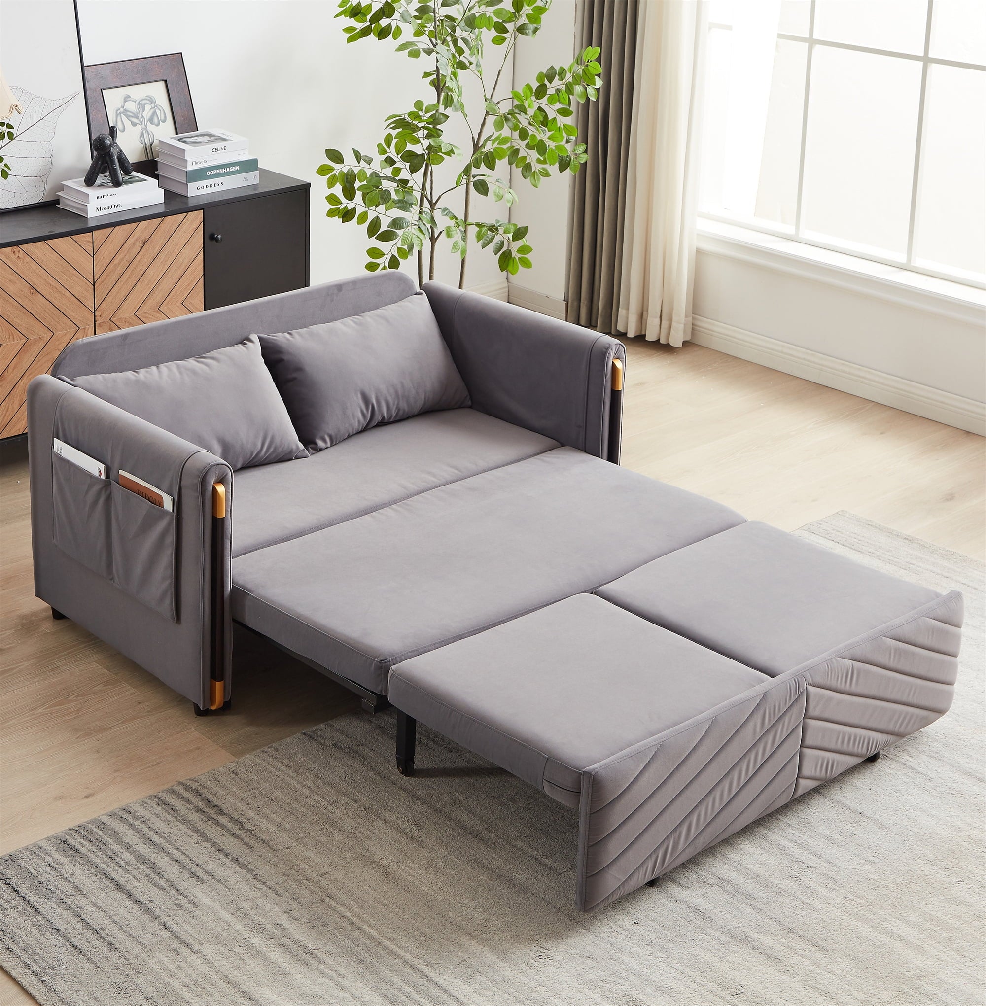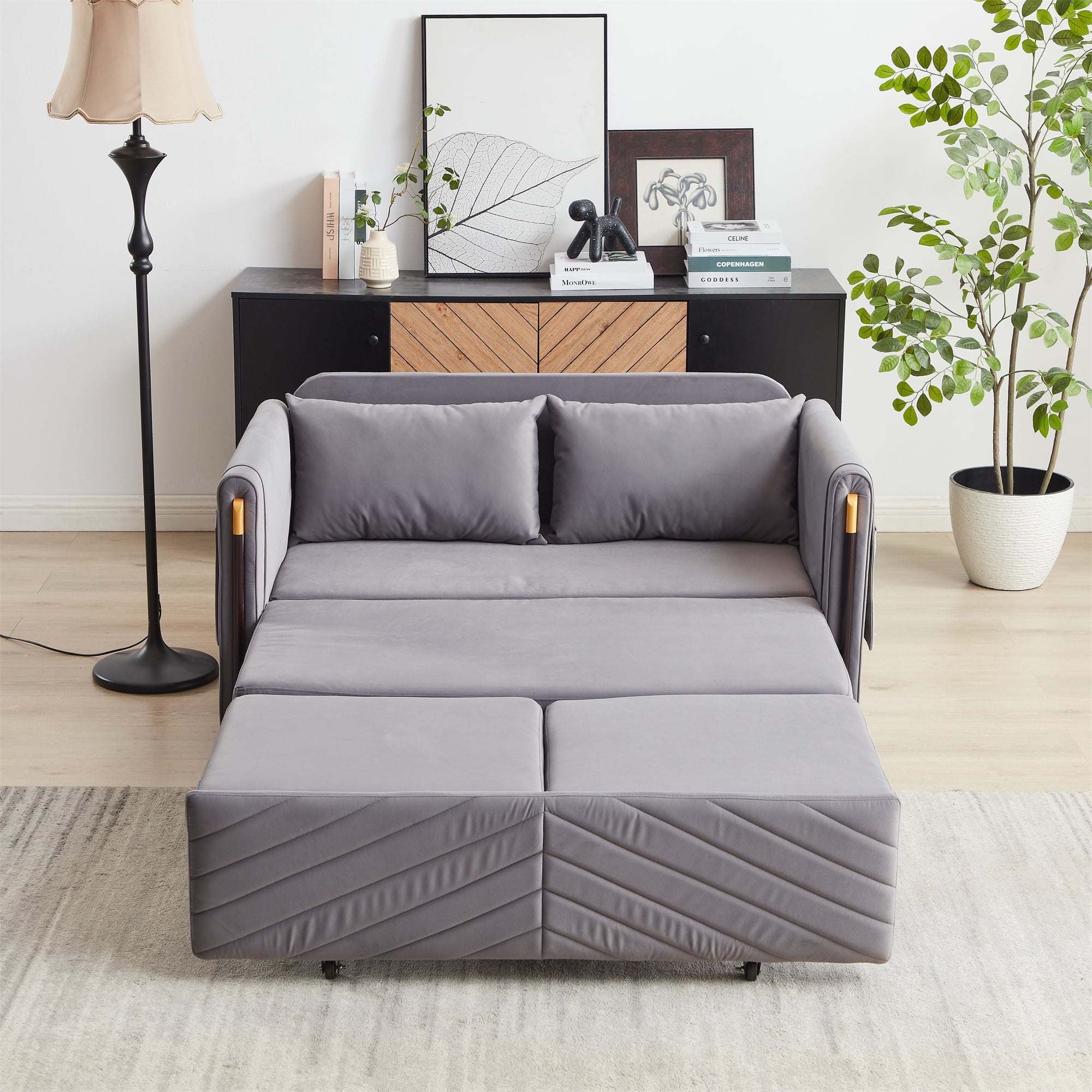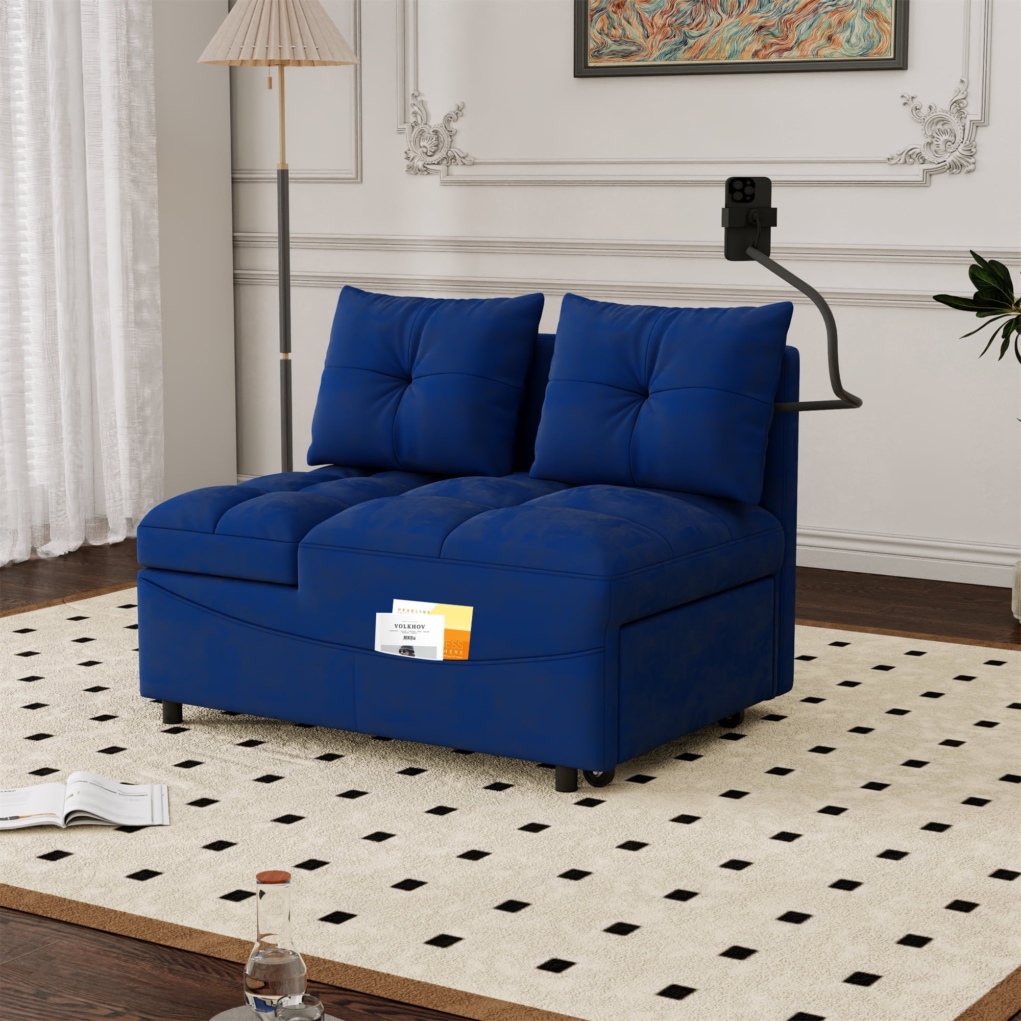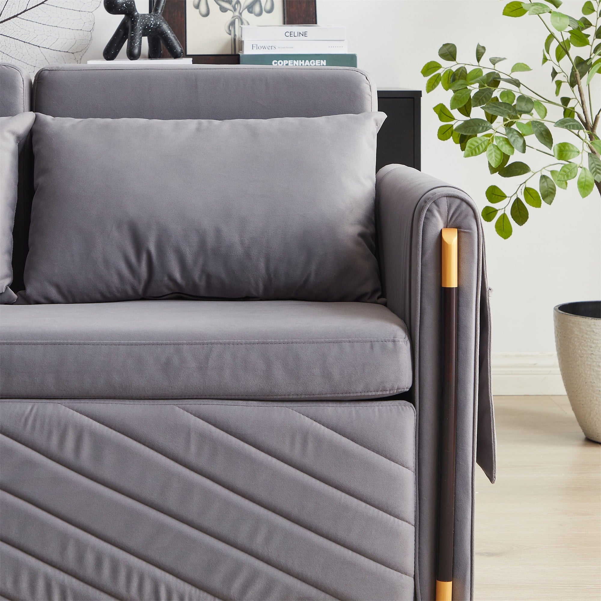 - 2 USB CHARGE & PILLOWS – This chaise sofa bed is equipped with 2 integrated USB ports for convenient device charging. Comes with two throw pillows, paired with high-elasticity foam and high-gauge pocket springs. Delivers exceptional lumbar support, keeping you relaxed whether sitting for hours or lying down.