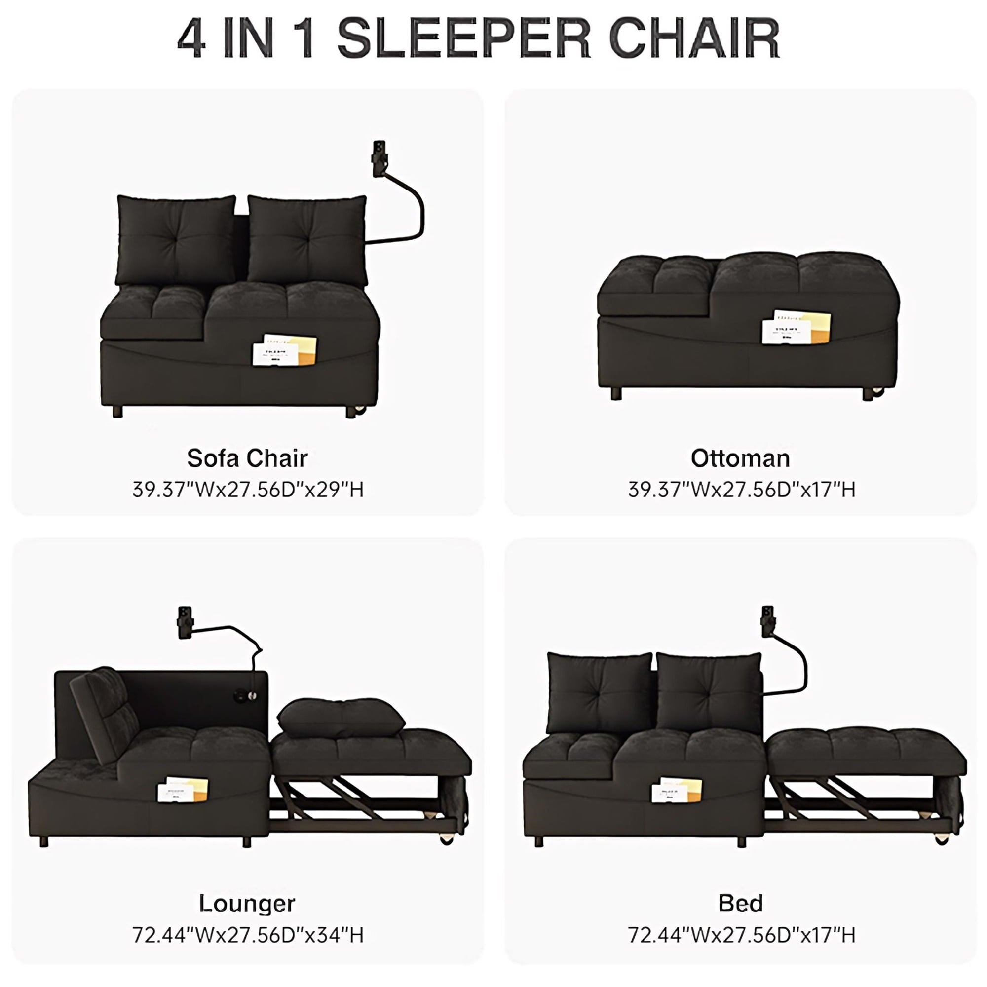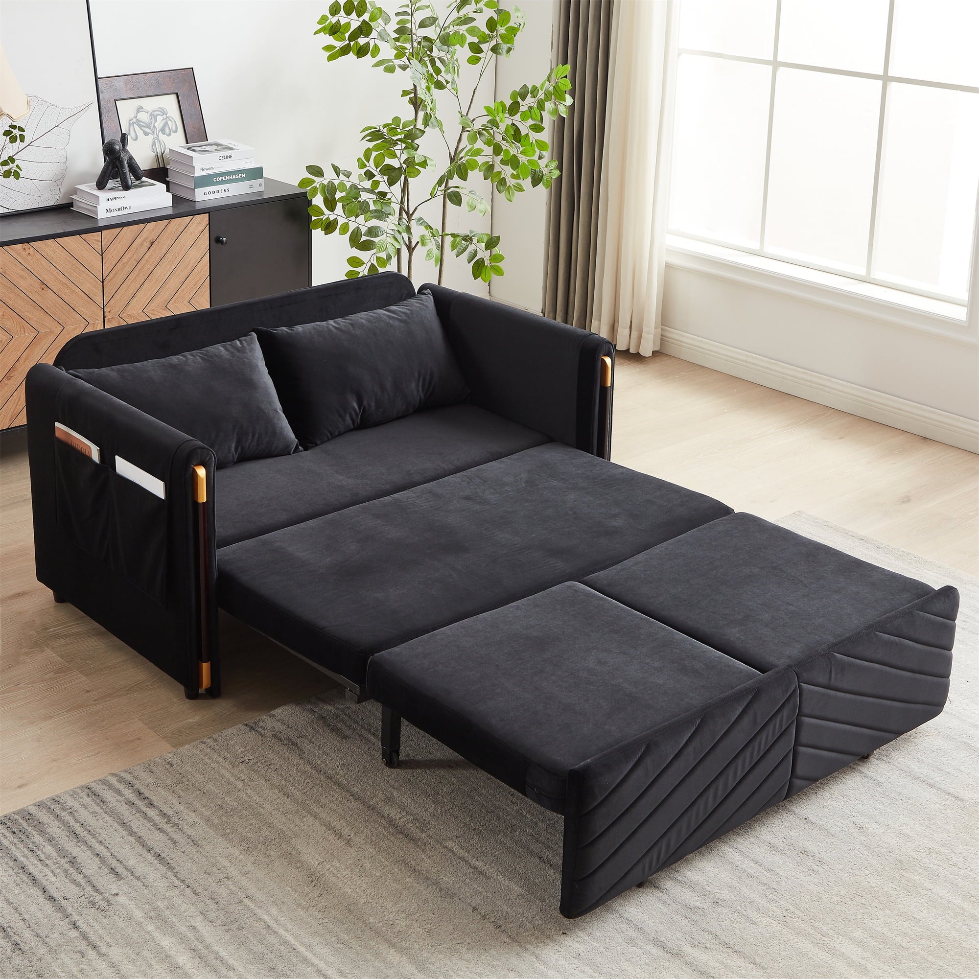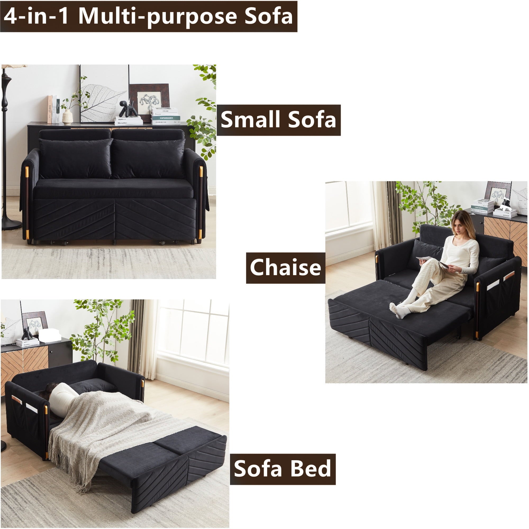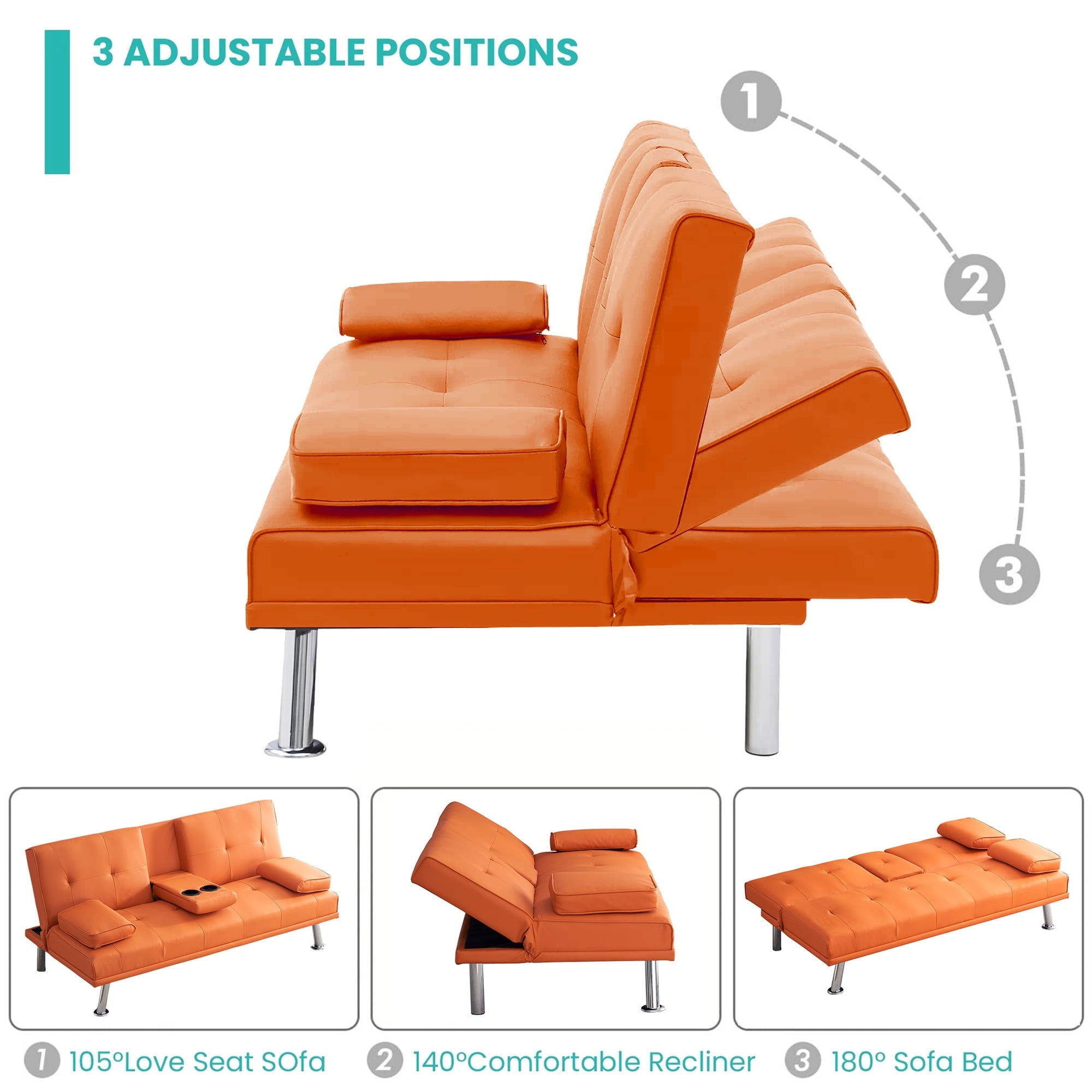- 4-IN-1 MULTIFUNCTIONAL FUTON SLEEPER – Easily converts from a small loveseat sofa to a chaise lounge, an ottoman, and a twin-size sleeper, flexibly adapting to any space, whether for daily lounging or hosting overnight guests.
