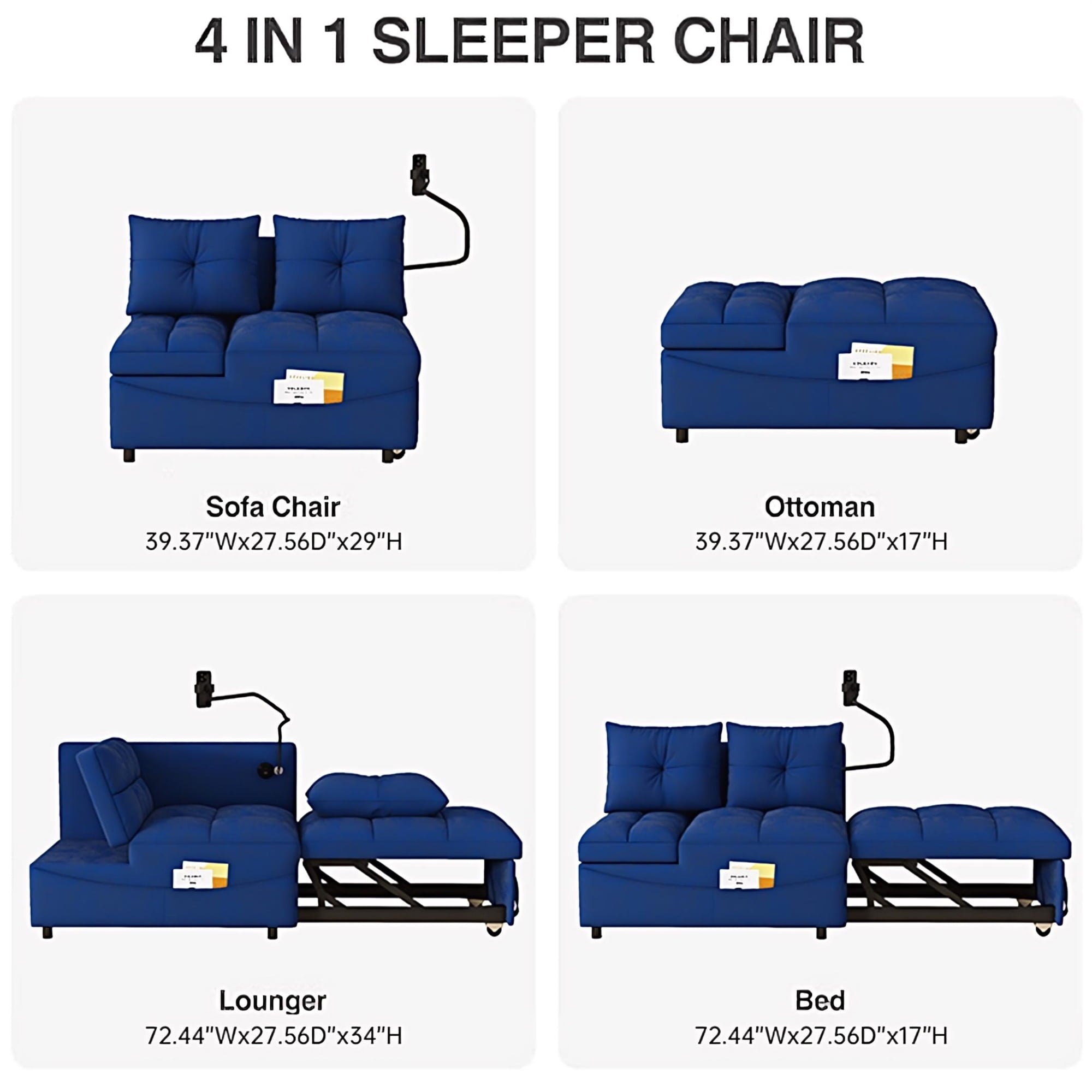 The Aukfa AK-FS02-082 4 in 1 futon sleeper chair bed is a modern, stylish choice with multi-purpose. The thick deep tufted cushions and soft padding enable you and your family to rest well on the futon sofa daily. This convertible sofa contains