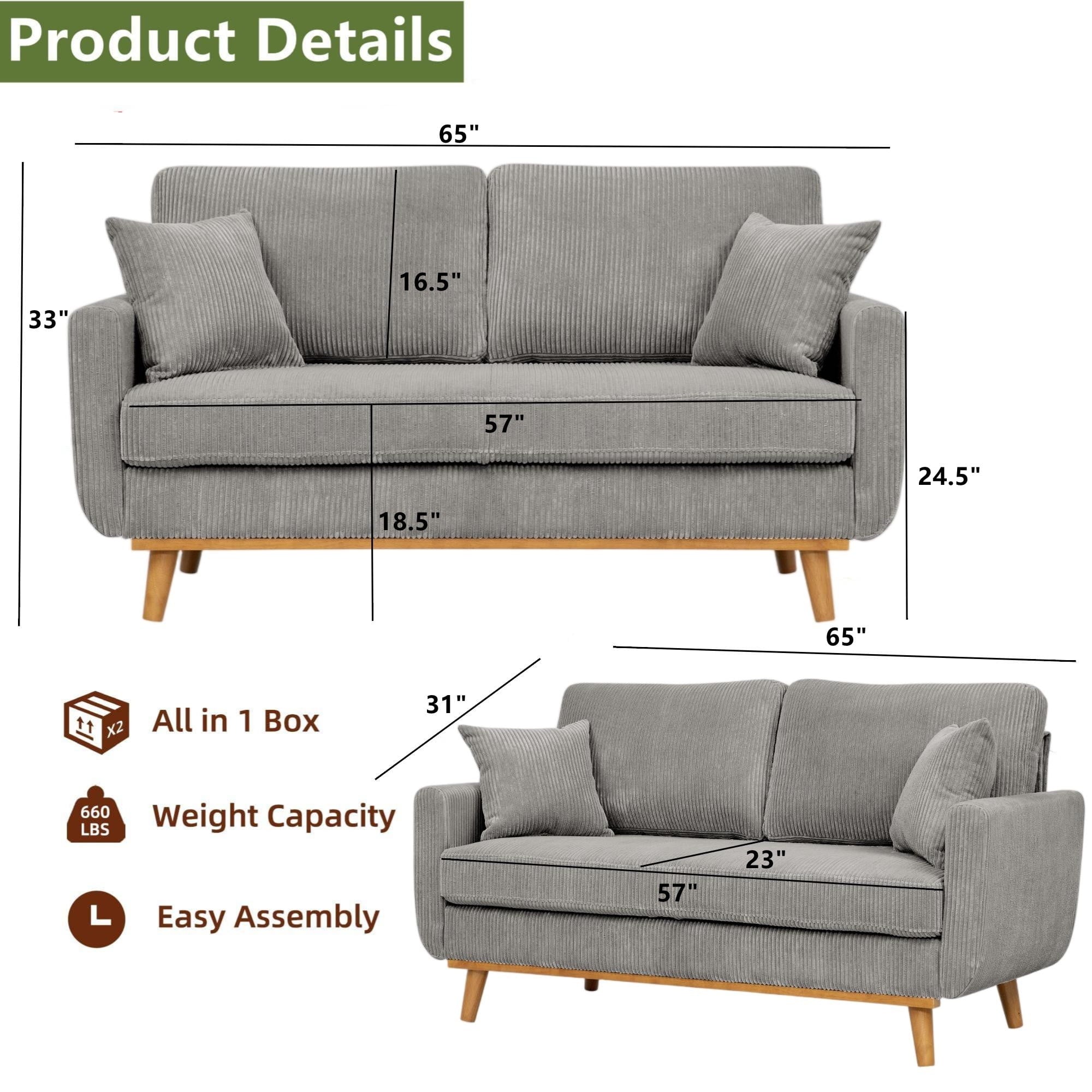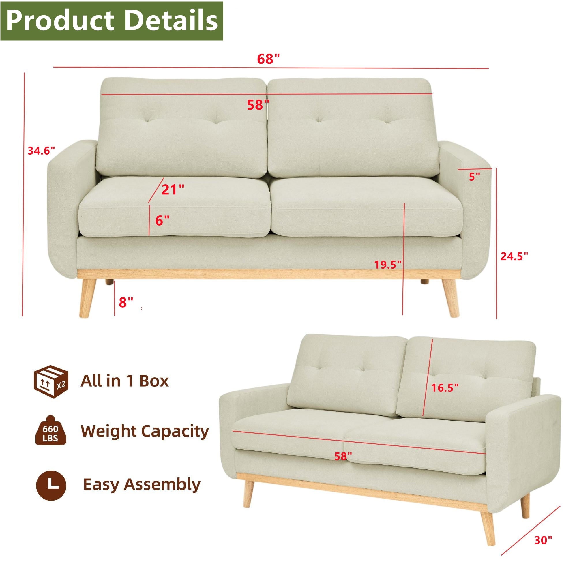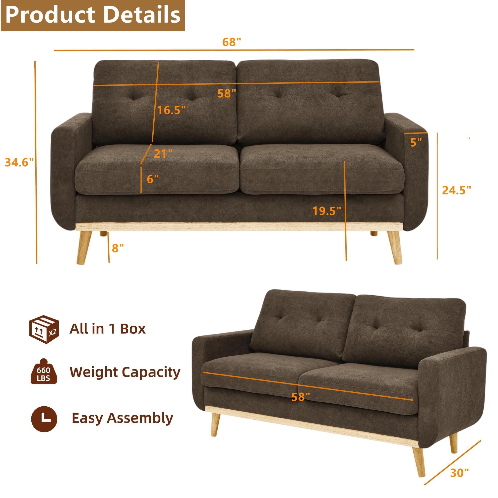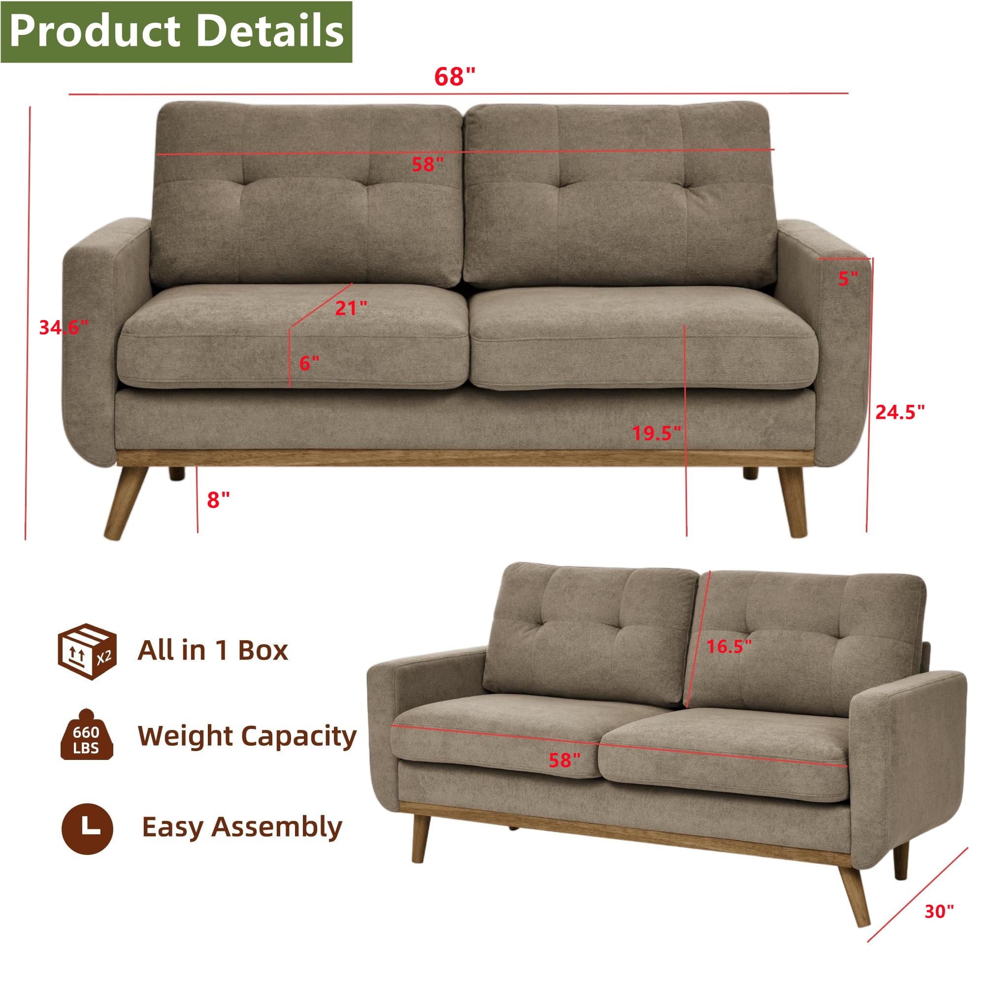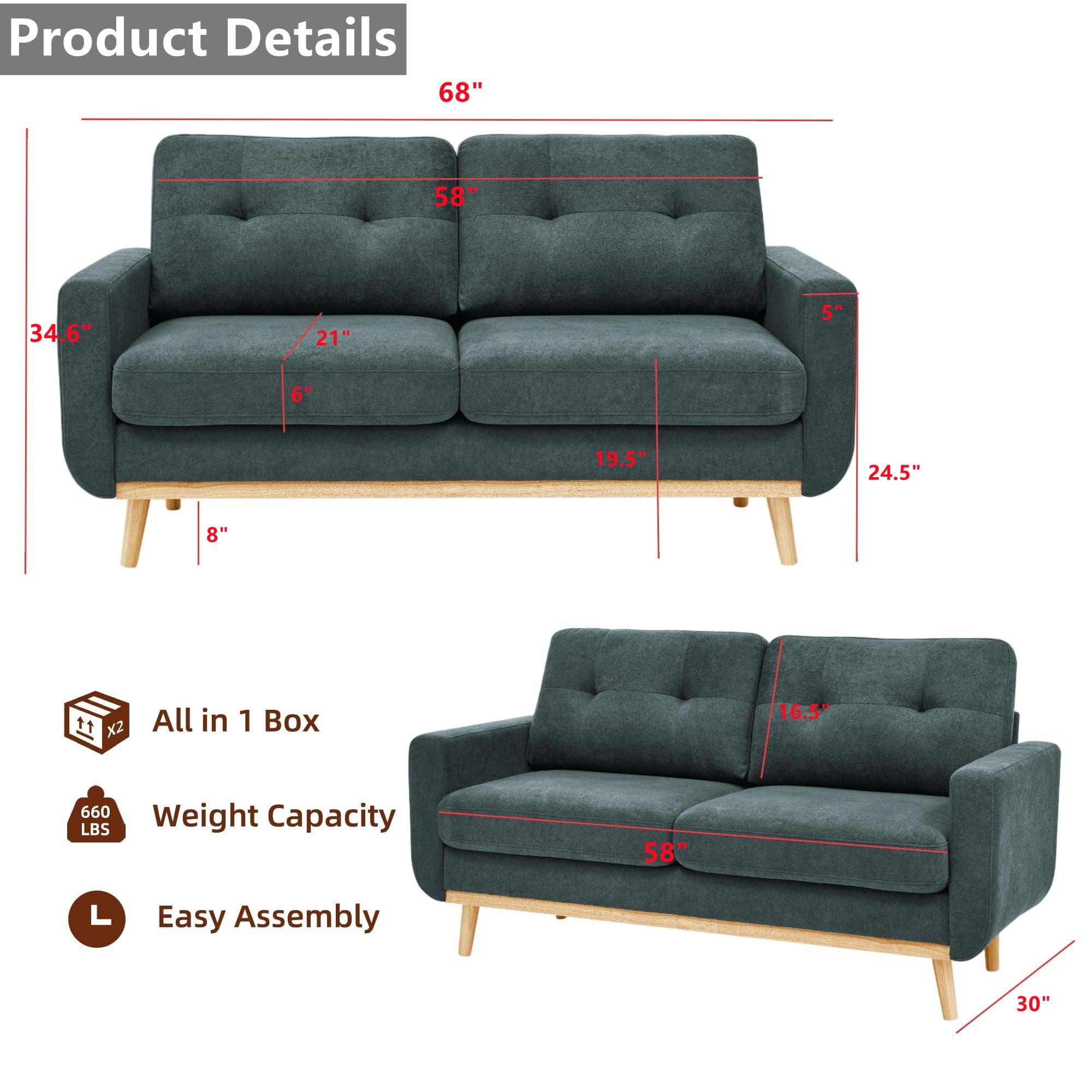 - SPACIOUS AND COMFORTABLE – Our AK-FS07-042 loveseat sofa will be a favorite spot for leisure in your home. It is 68 inches wide and spacious enough for 2 or 3 people. The thick spring foam cushion and breathable fabric create a soft and supportive base and backrest, allowing you to rest and entertain throughout the day without discomfort.