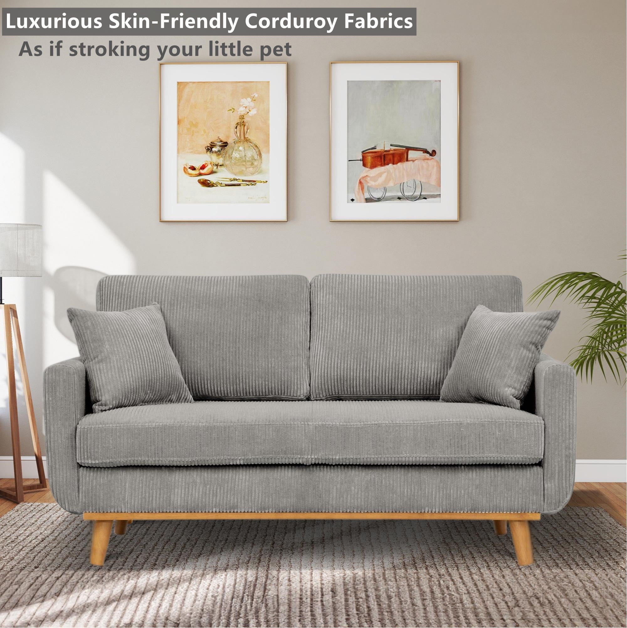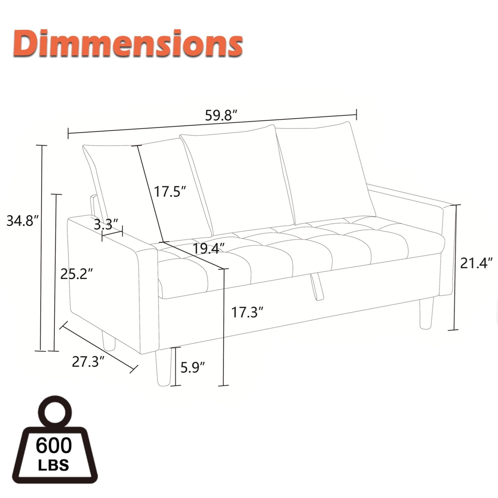 - STURDY AND DURABLE – You don’t need to worry about its durability! Our whole small sofa with a sturdy wooden frame and high bounce springs can easily support the weight of 660 lbs. The solid wood legs with padding under the feet protect your floors from scuffs and scratches. So it will last a long time in your living space.