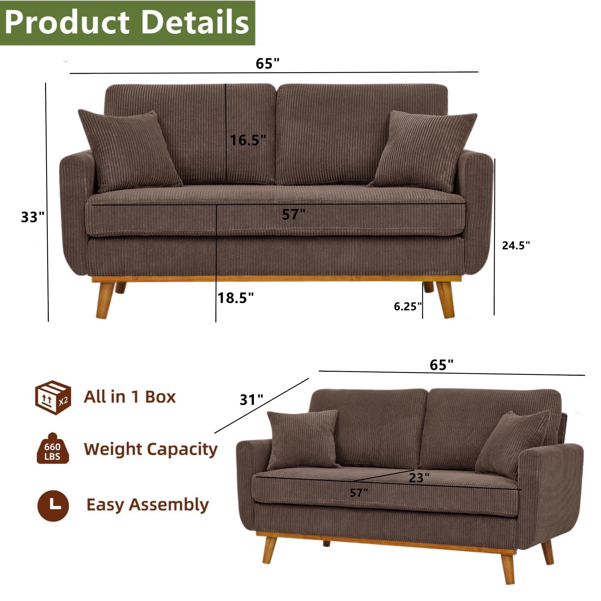 The Aukfa AK-FS07-042 68″ mid century modern loveseat sofa is perfect for family gatherings or lounging after a long day. Its spacious design comfortably accommodates 2 or 3 people. The thick spring foam cushion and breathable fabric create a soft and