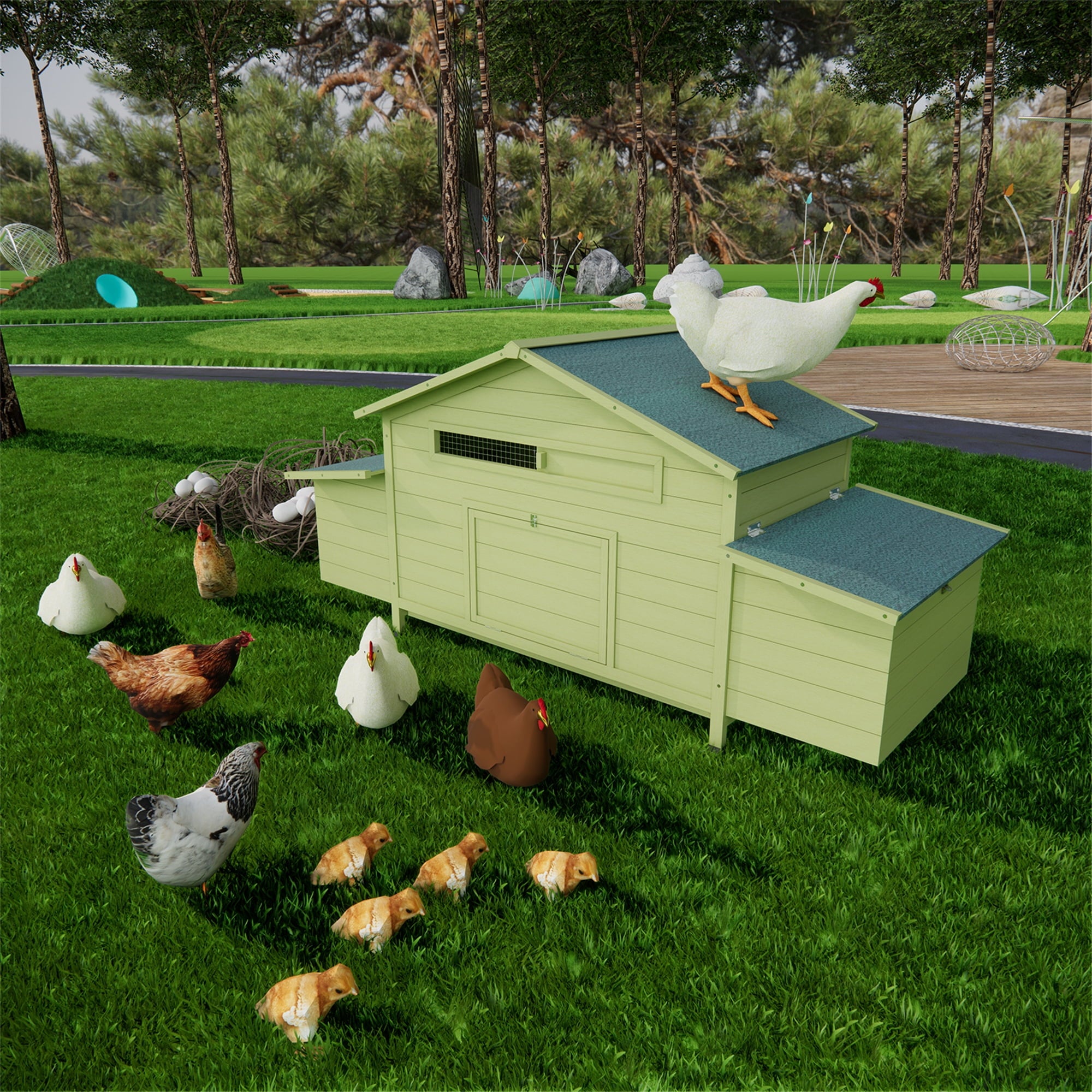 coop has a classic pastoral appearance, which makes it an ideal decoration in your garden or backyard.