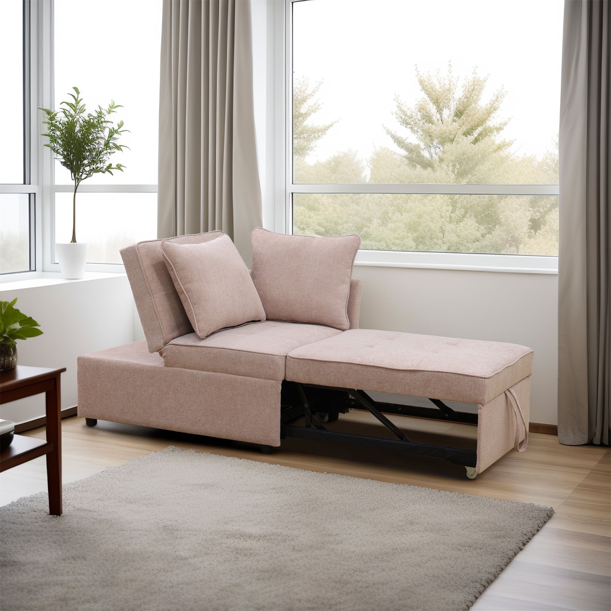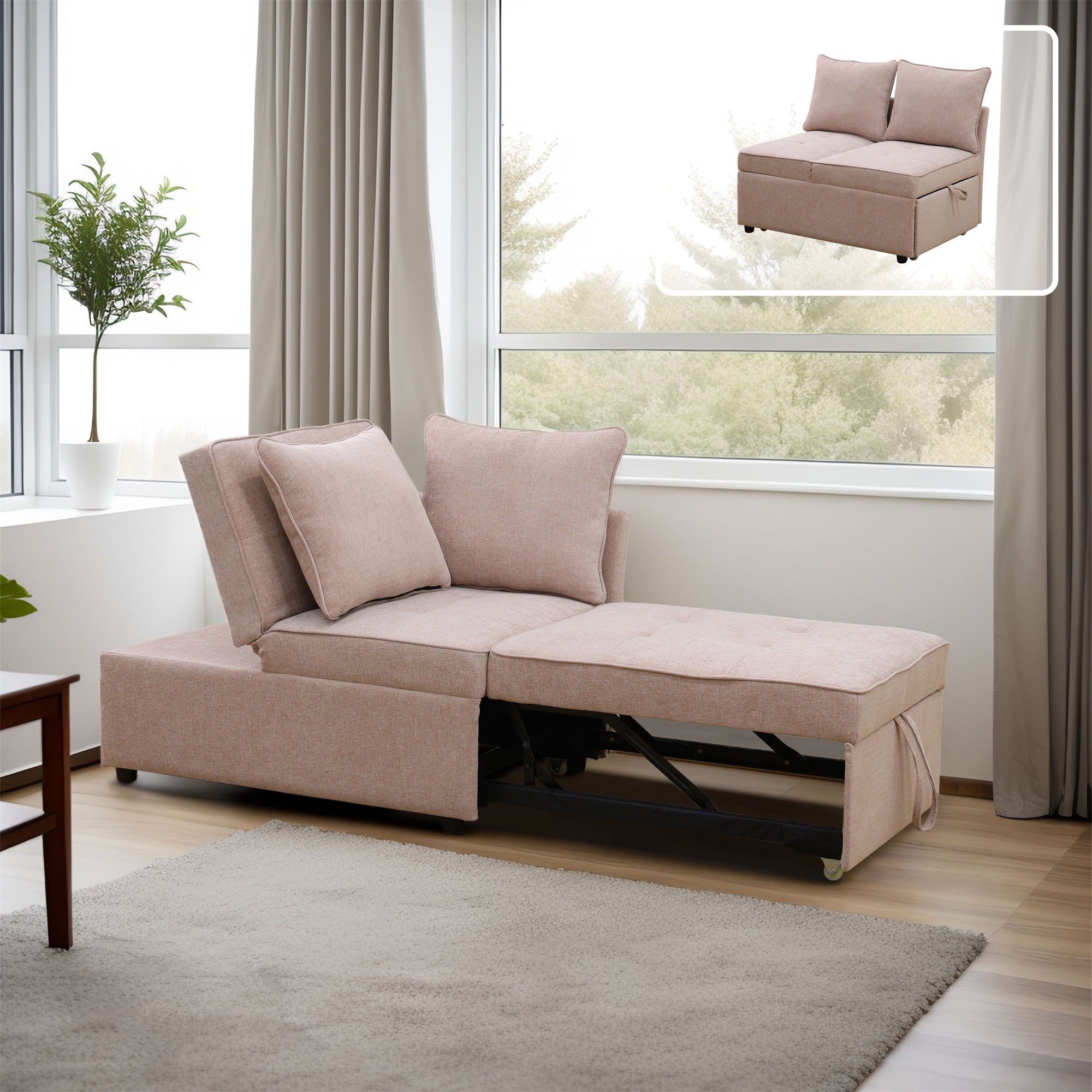 high-resilience foam seat cushions and plush back cushions, it provides excellent support for your lower back, helping to relieve spinal pressure. Simple to maneuver, the bottom sofa has wheels that can be easily pulled out to form a bed. meet all