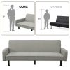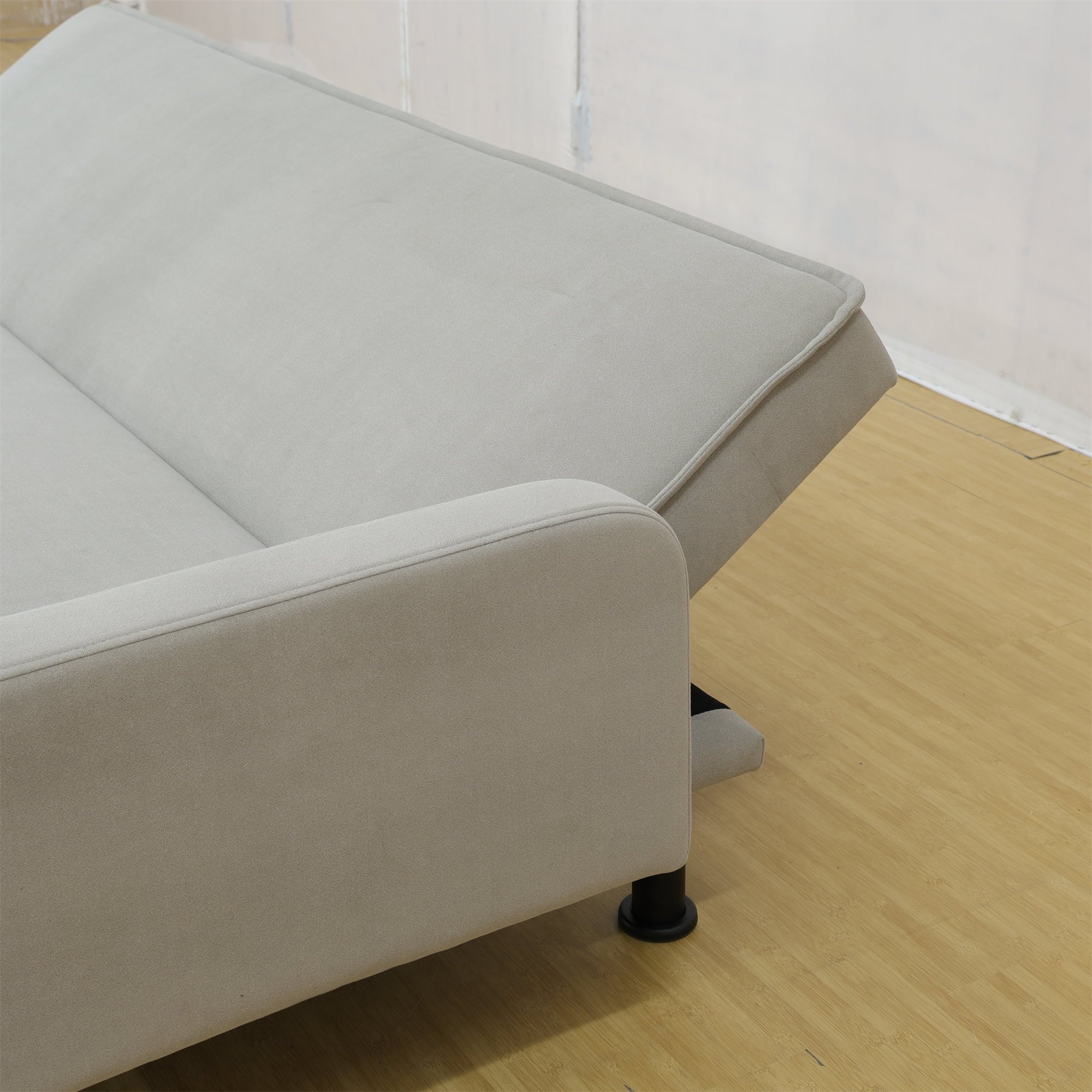 Aukfa 78" Square Arm Futon Sofa Bed Upholstered 3 Seat Couch for Home Office, Flannel, Light Gray